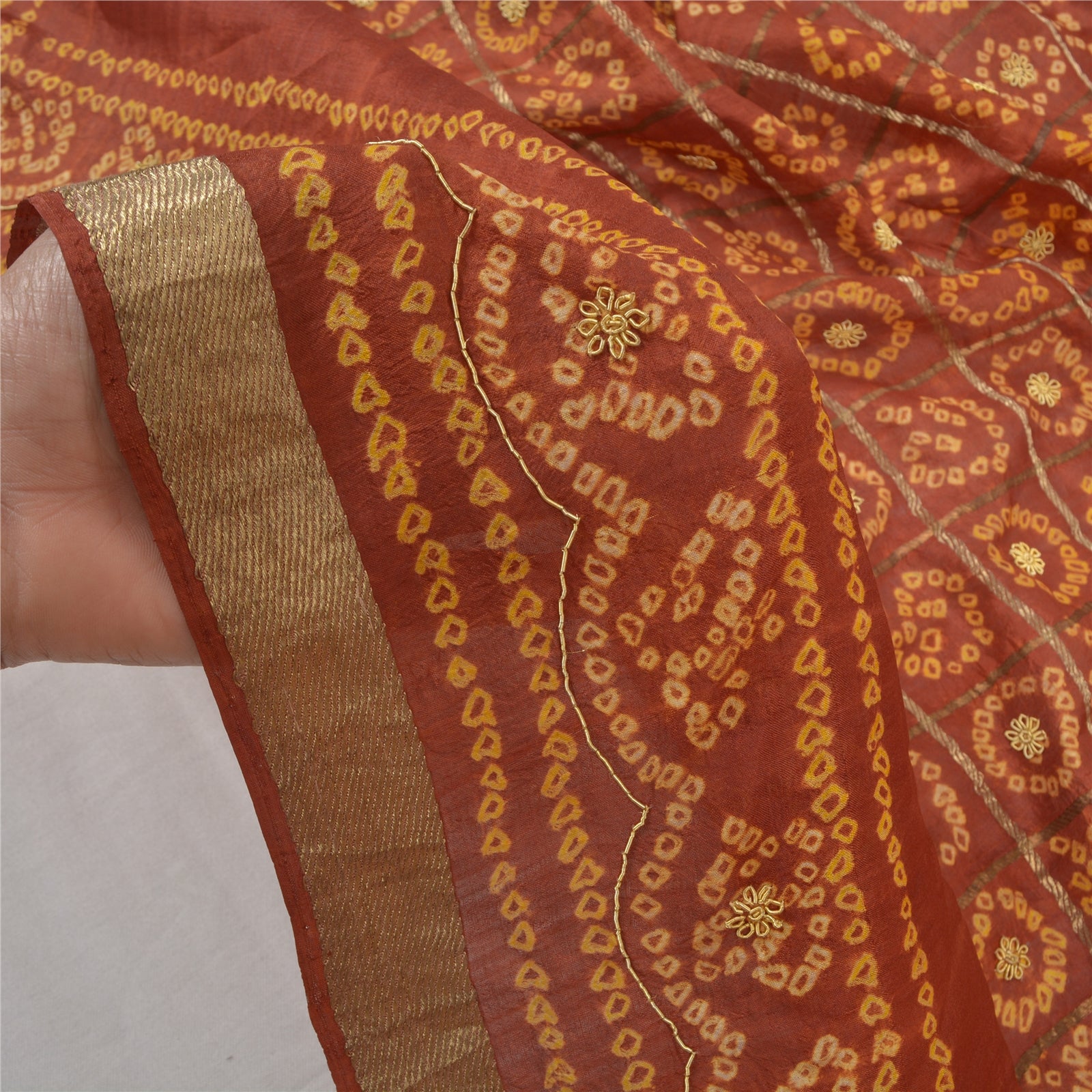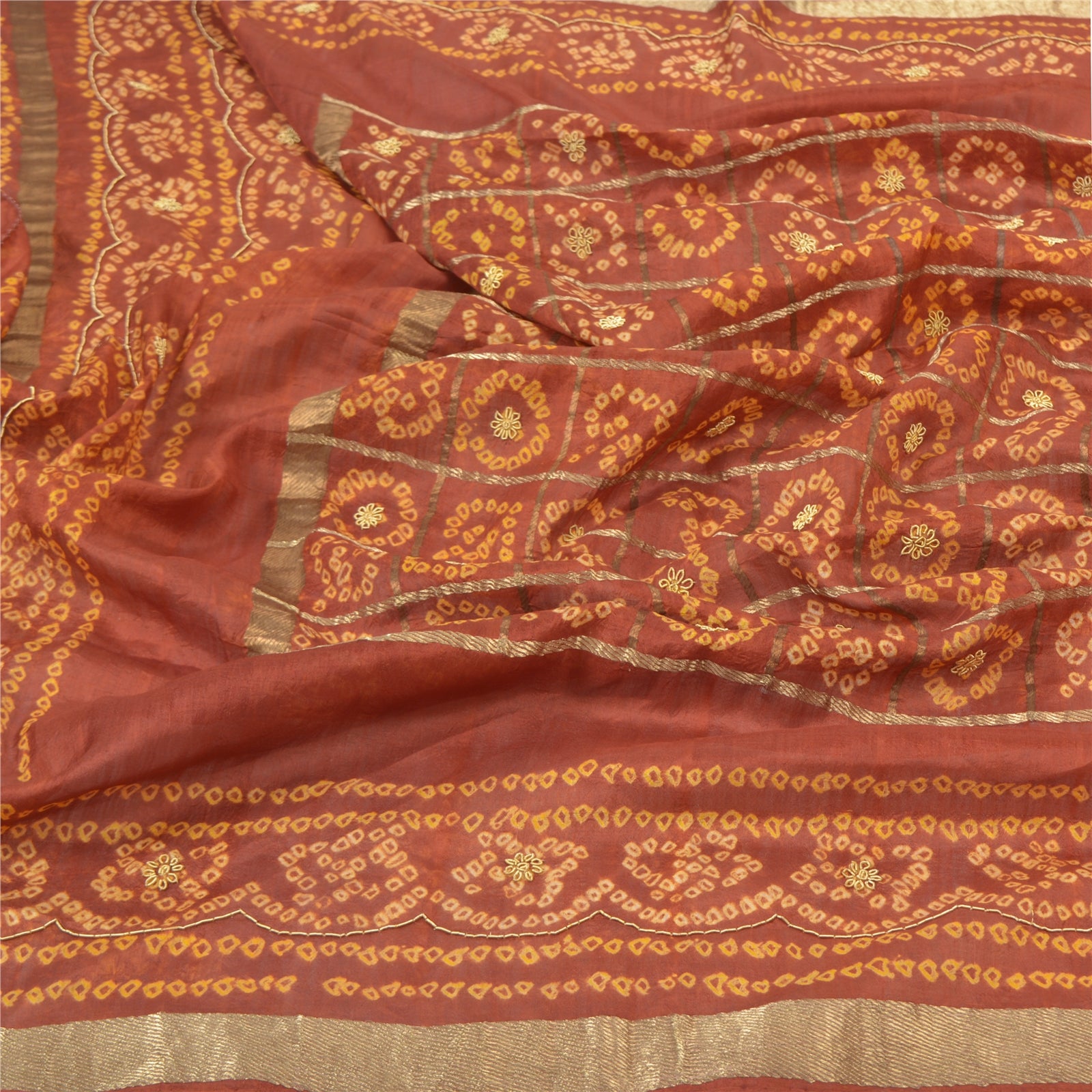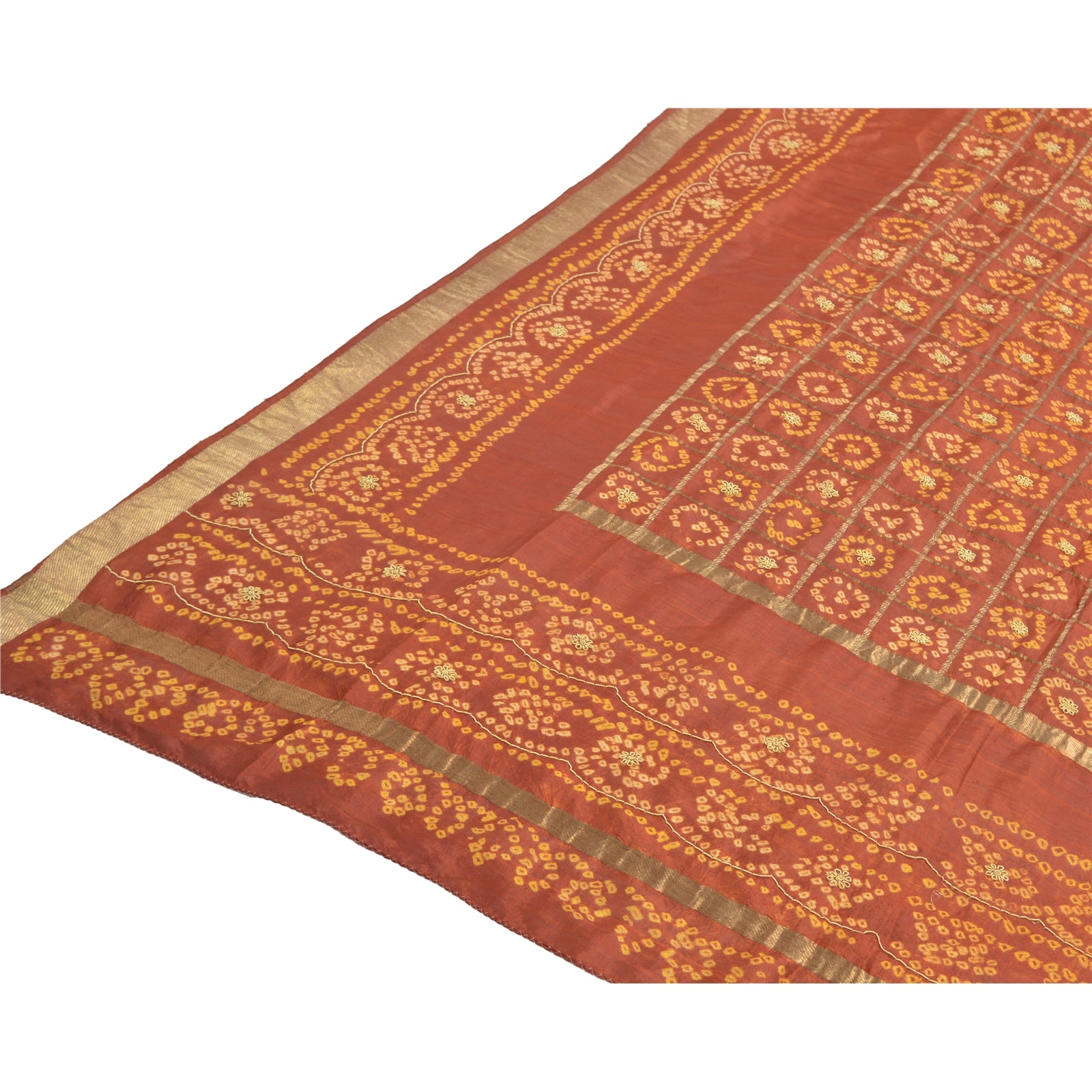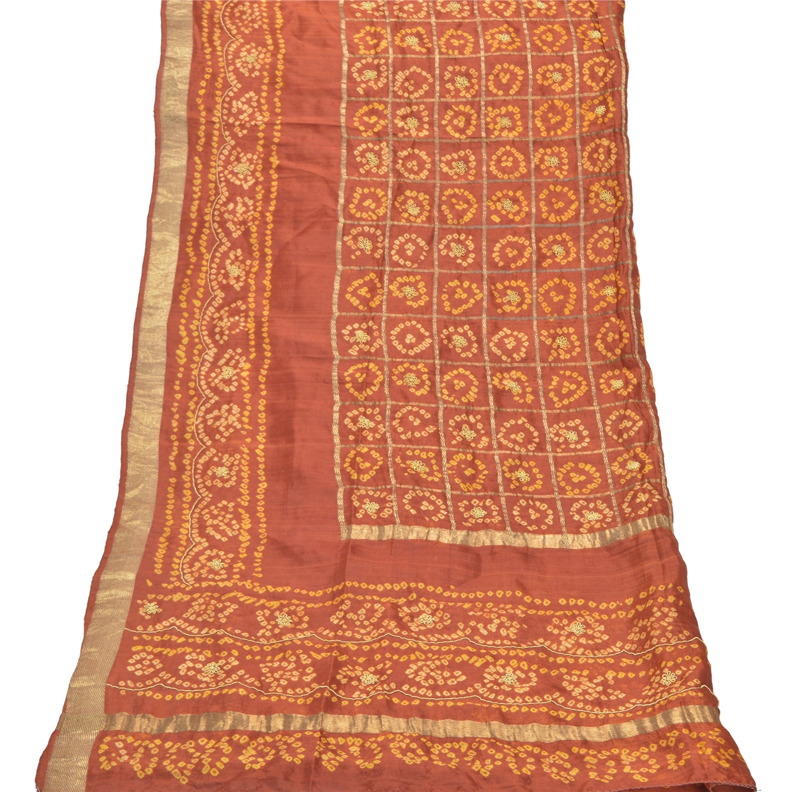 Sanskriti Vintage Heavy Dupatta Pure Silk Brown Handmade Bandhani Woven Stole