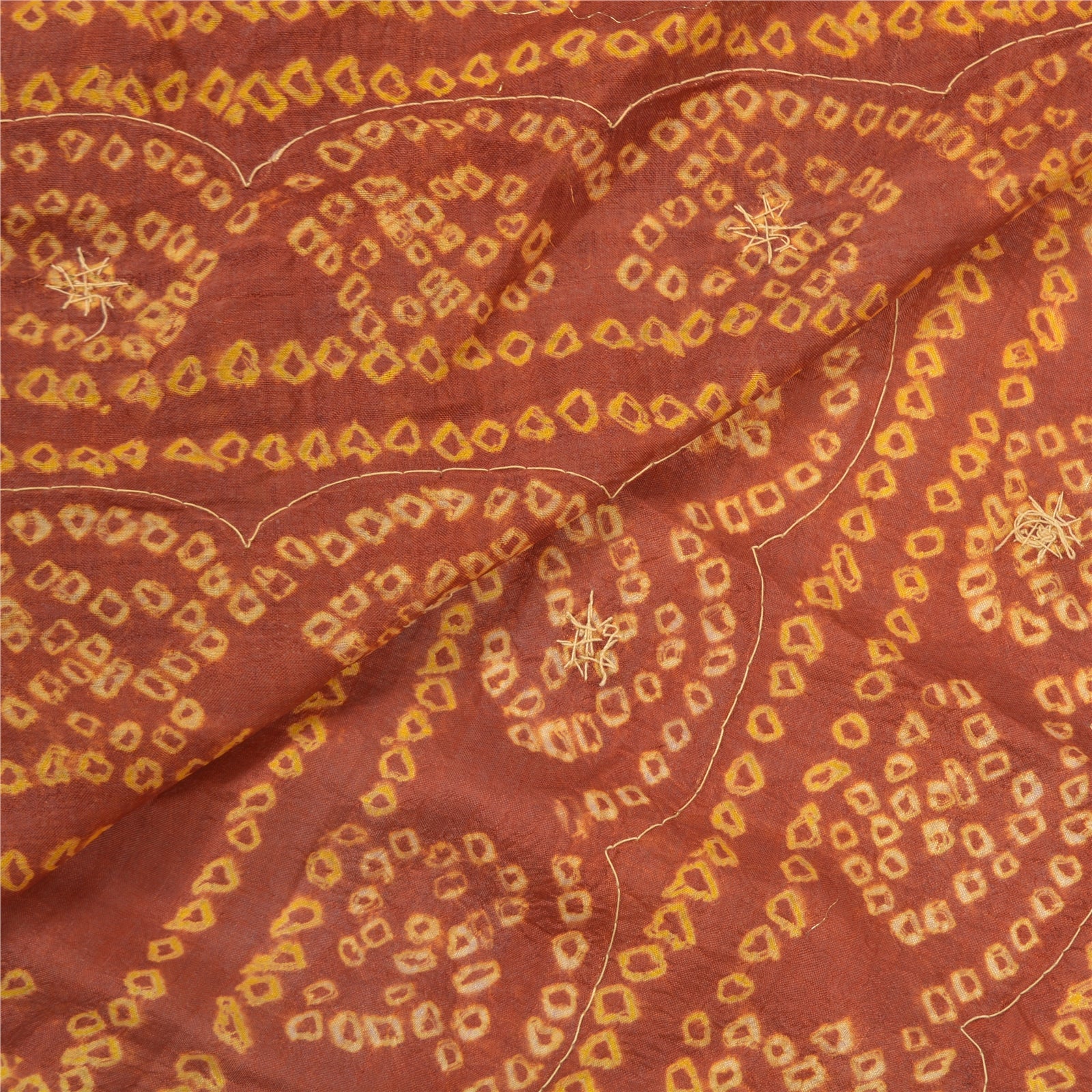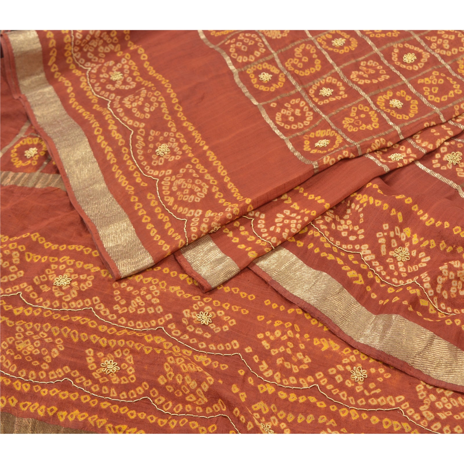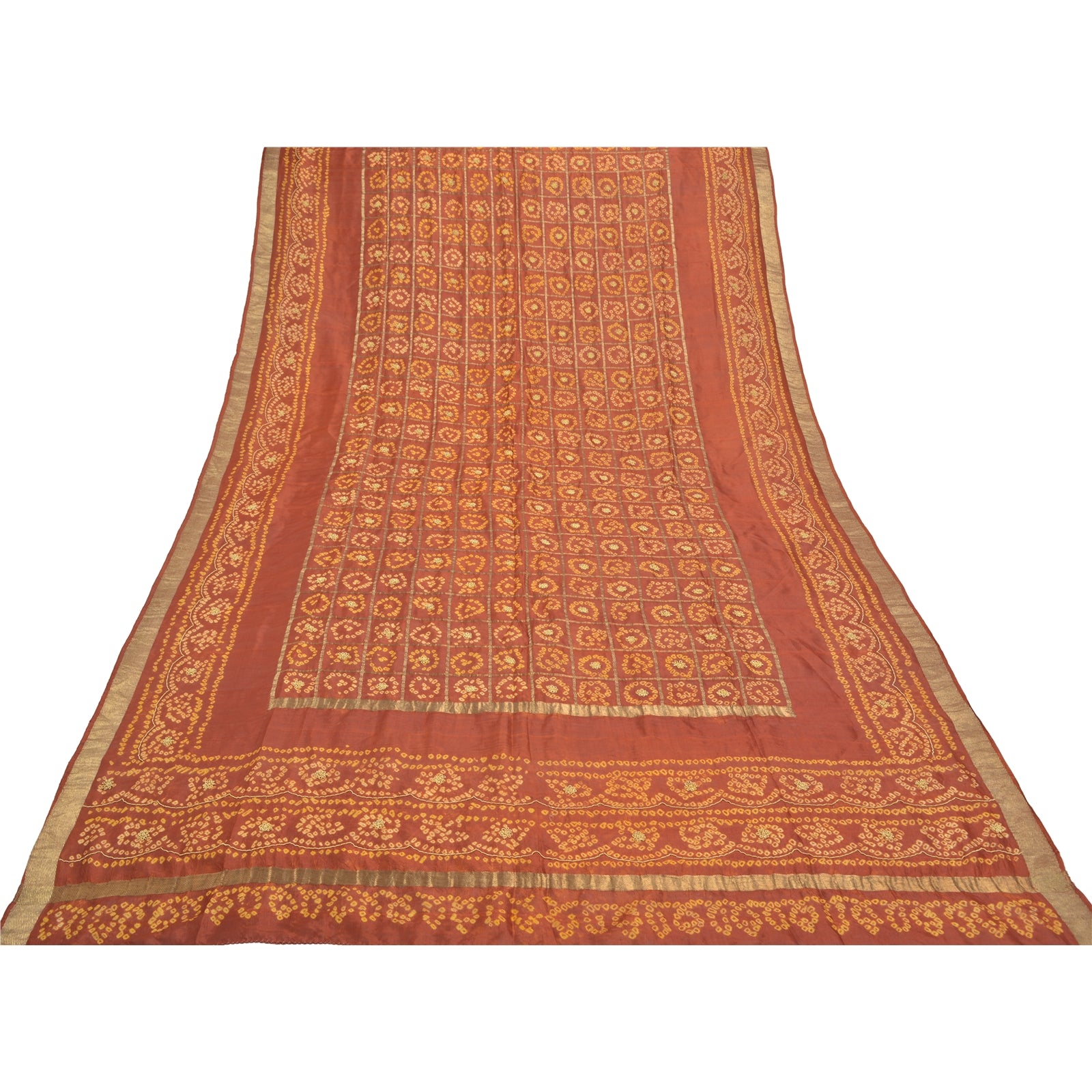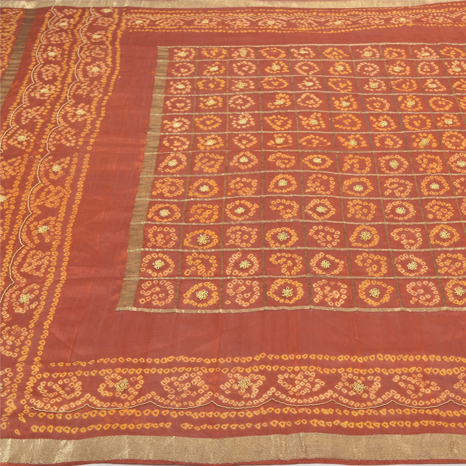 Sanskriti Vintage Heavy Dupatta Pure Silk Brown Handmade Bandhani Woven Stole
