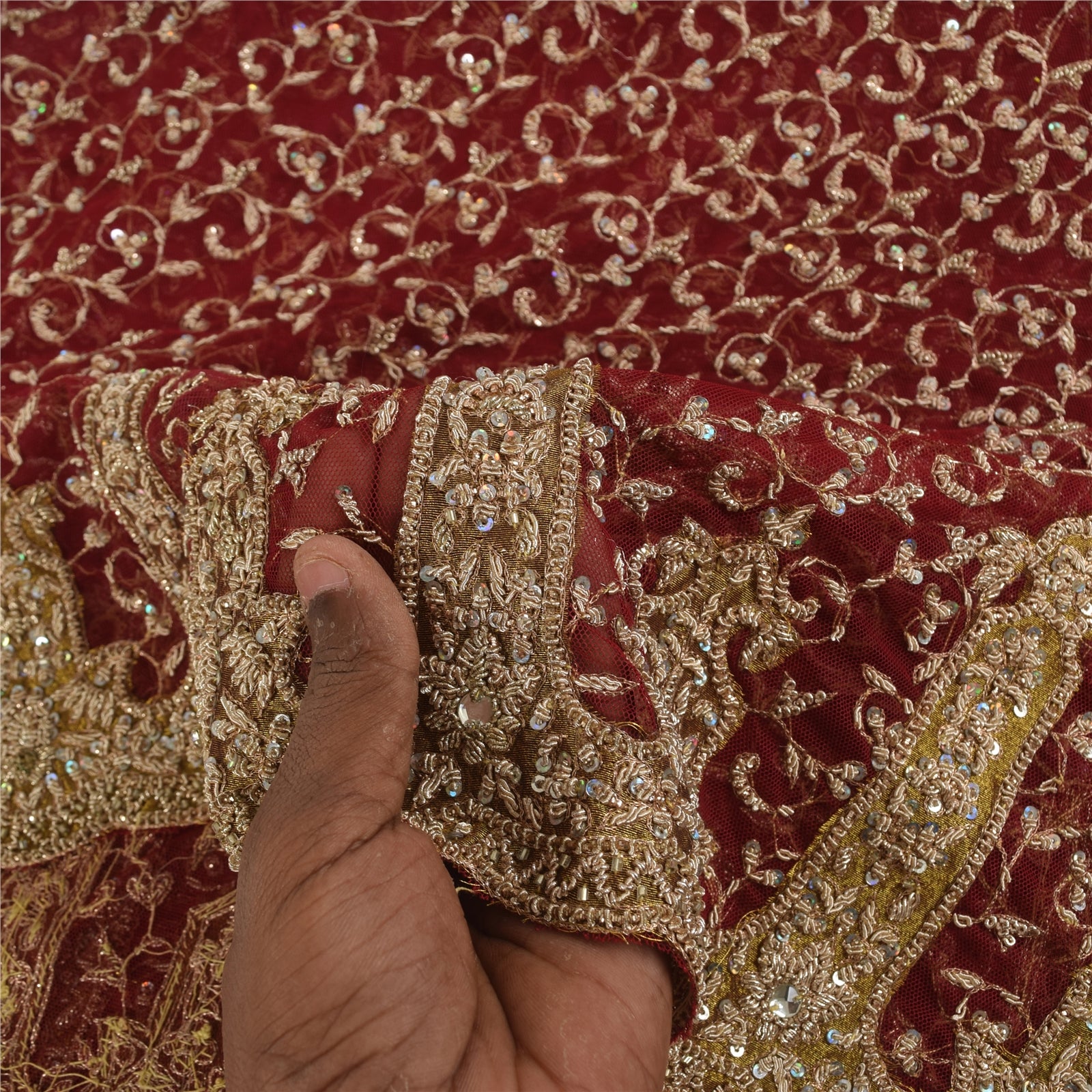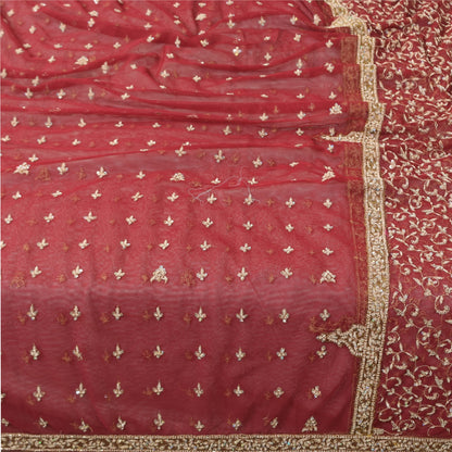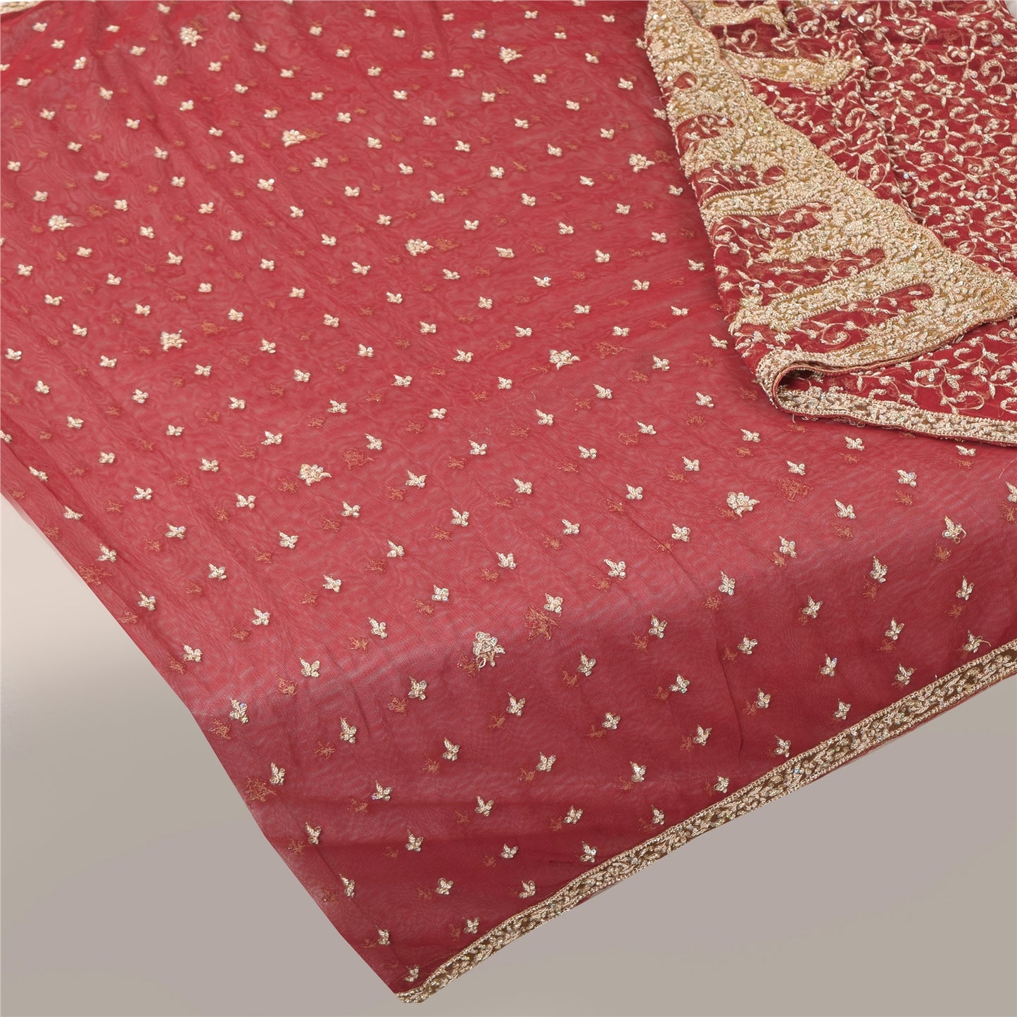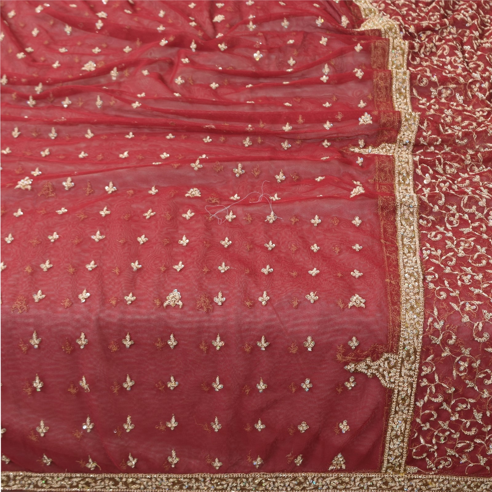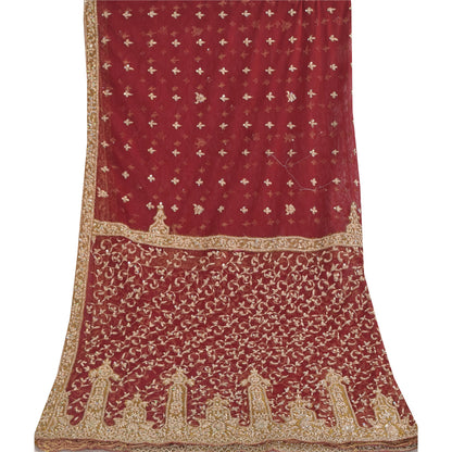 Sanskriti Vintage Indian Red Dupatta Long Stole Net Mesh Hand Beaded Ethnic Veil