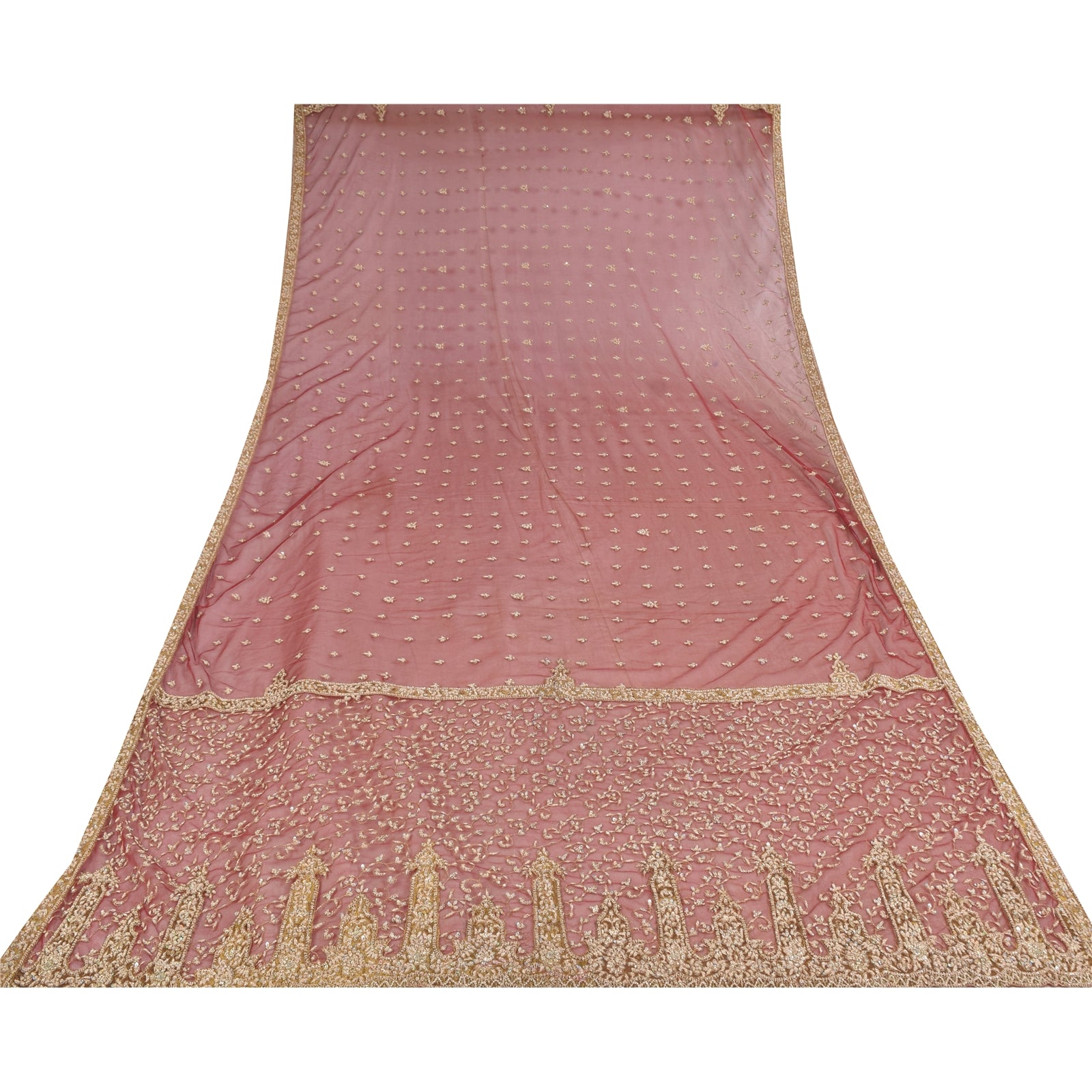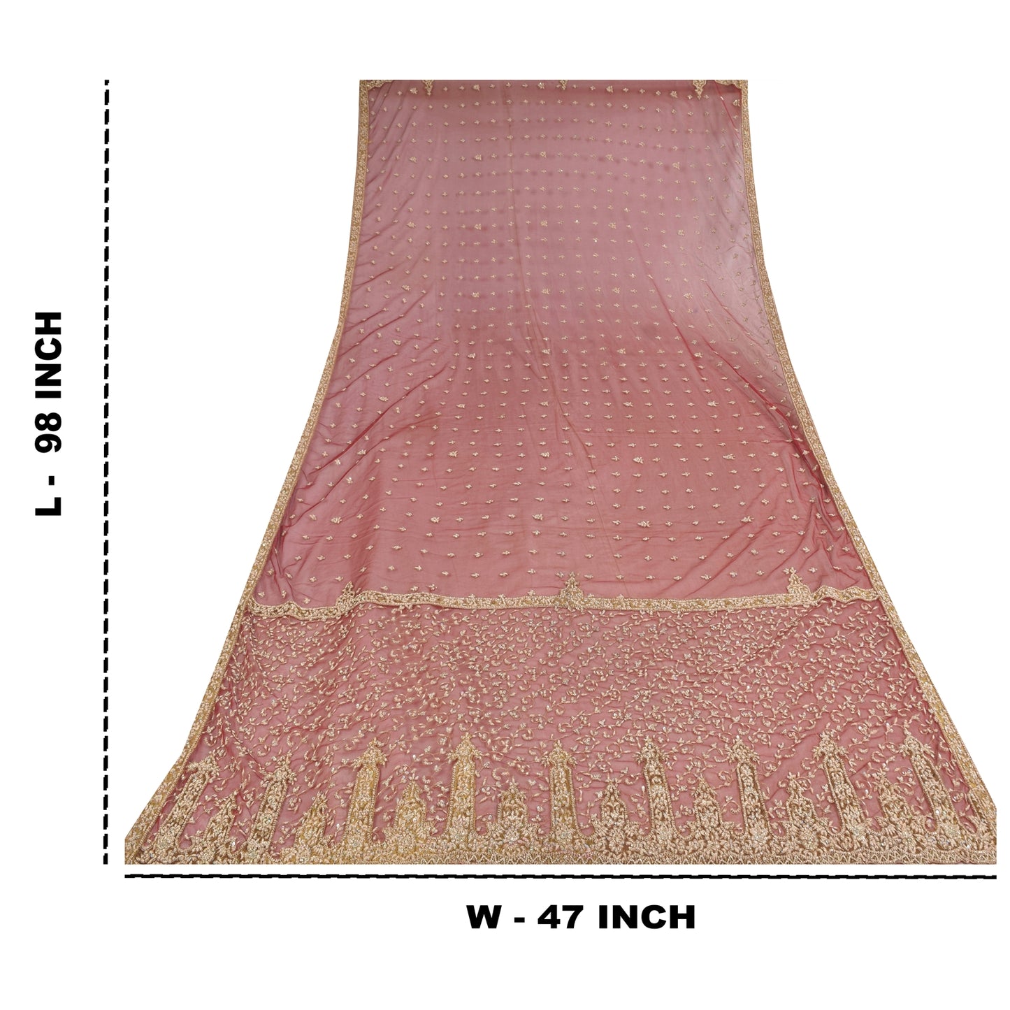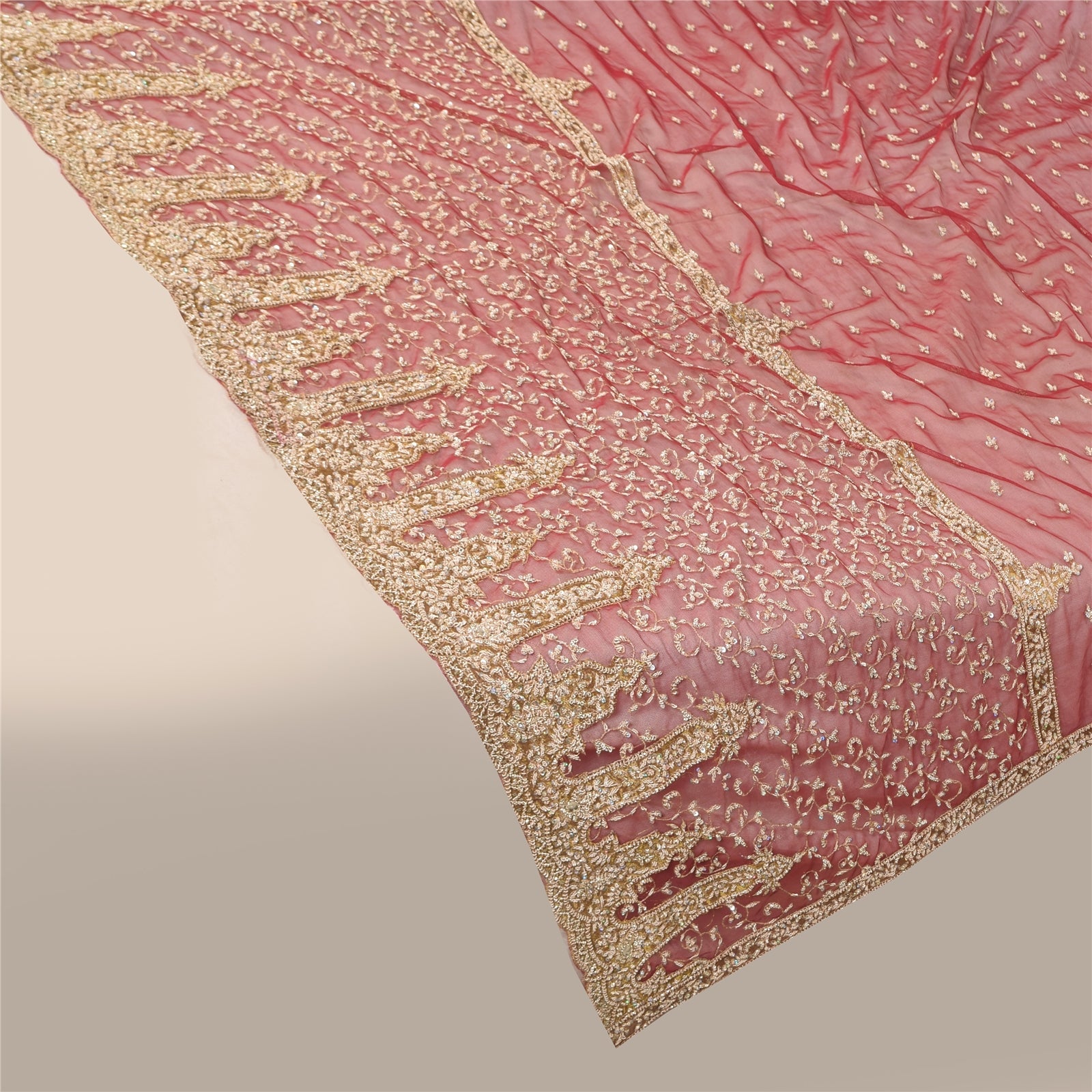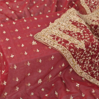 Sanskriti Vintage Indian Red Dupatta Long Stole Net Mesh Hand Beaded Ethnic Veil