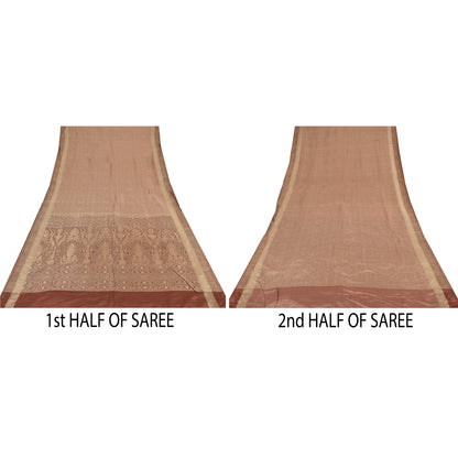 Sanskriti Vintage Indian Red Sarees Pure Silk Woven Sari Ethnic 5yd Craft Sustainable Fabric
