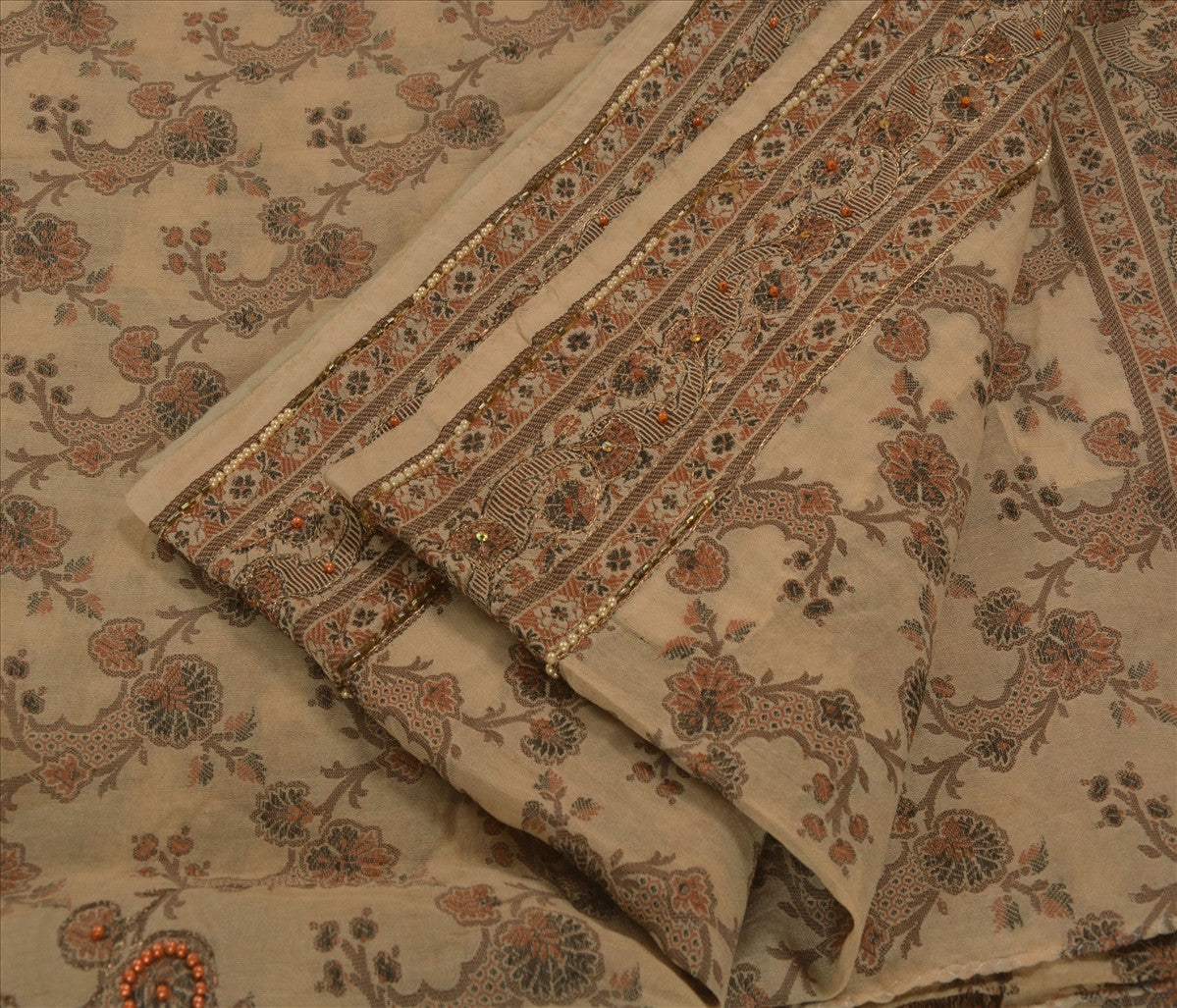 Alluring pearl like beads work with floral design on cream color base Sustainable Fabric is really enhancing the beauty of the saree.