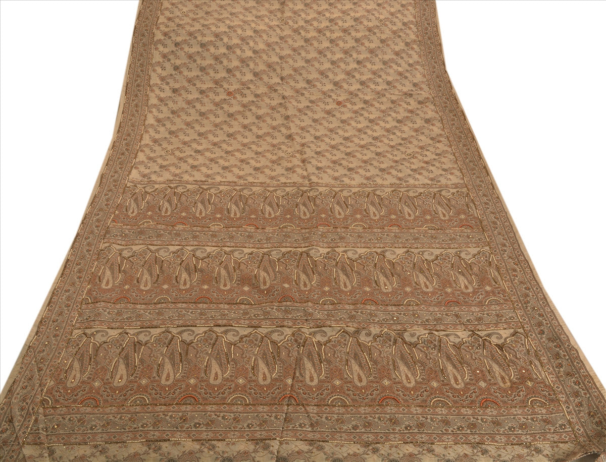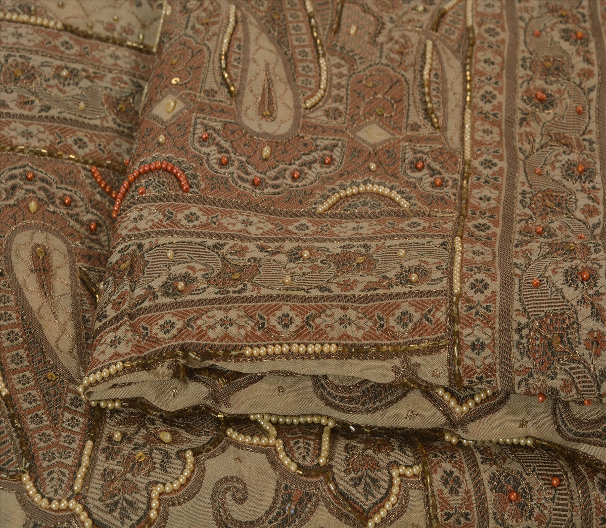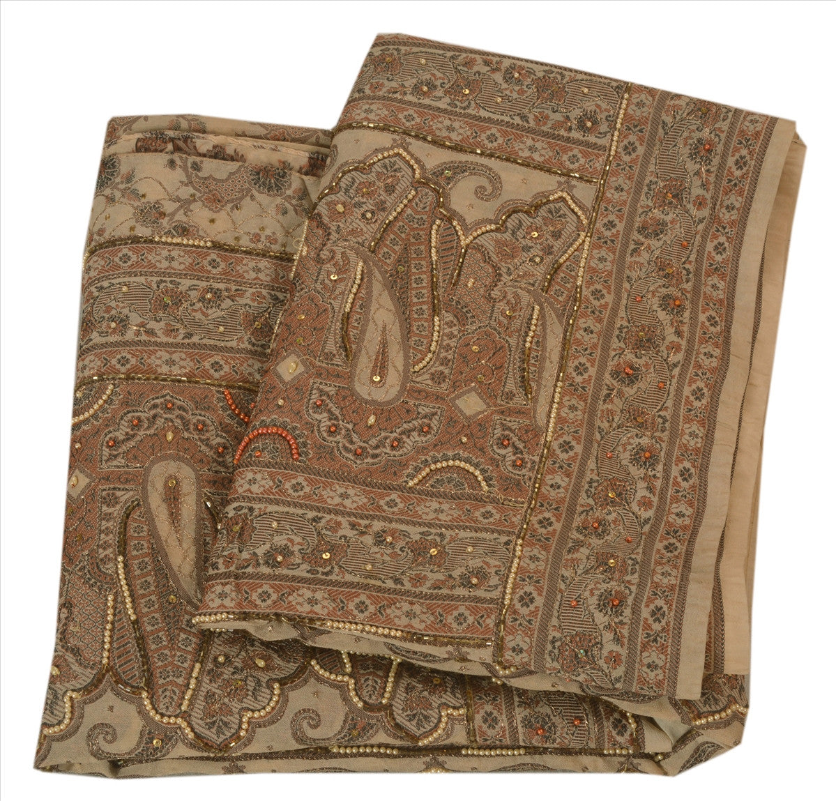 Sanskriti Vintage Indian Saree Art Silk Hand Beaded Woven Craft Sustainable Fabric Sari