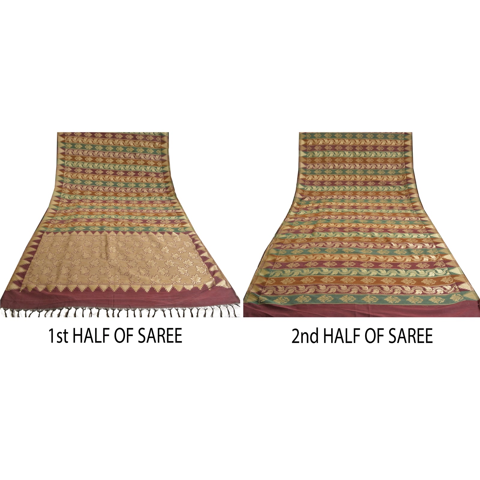 Sanskriti Vintage Indian Sarees Art Silk Woven Premium Sari Craft 5 Yard Sustainable Fabric