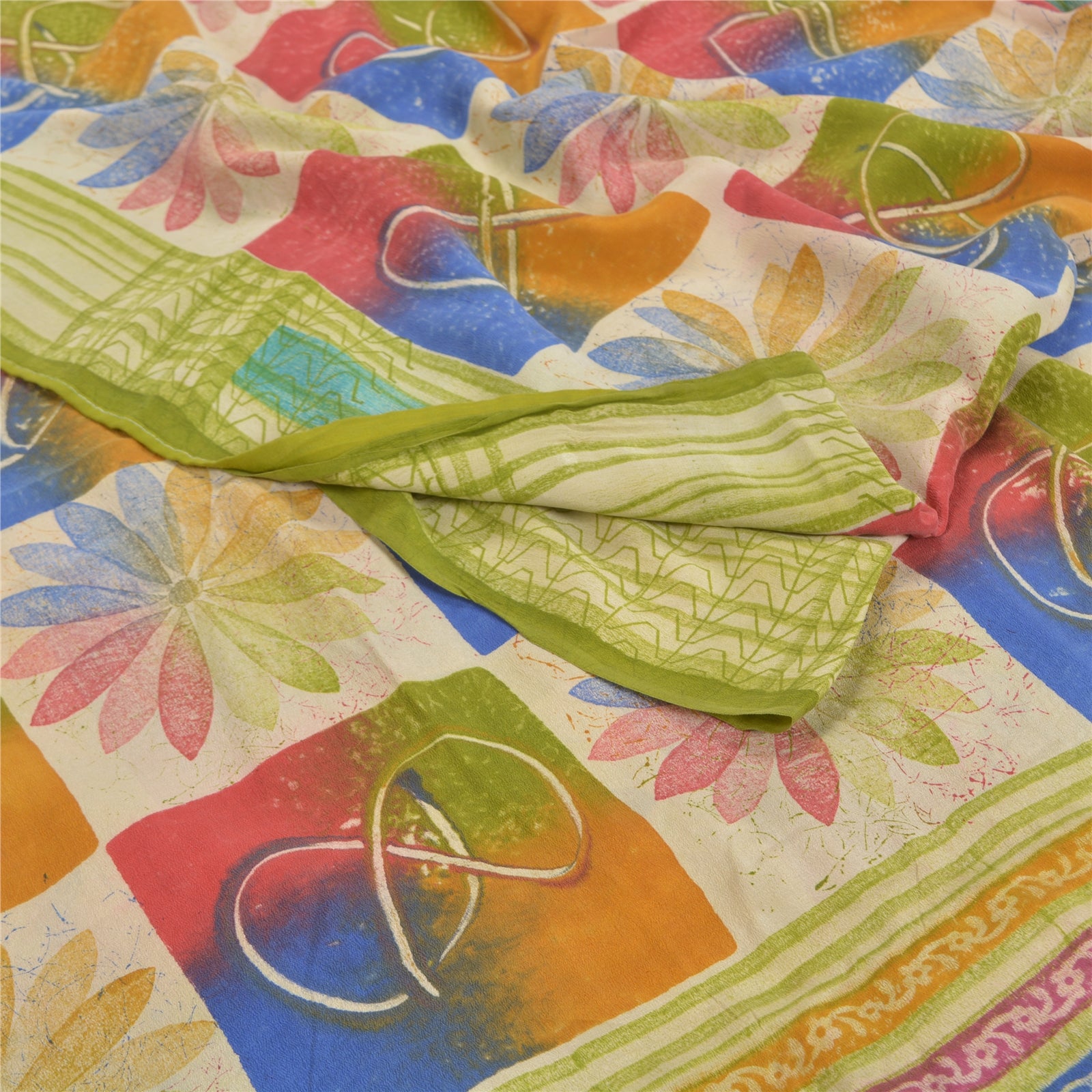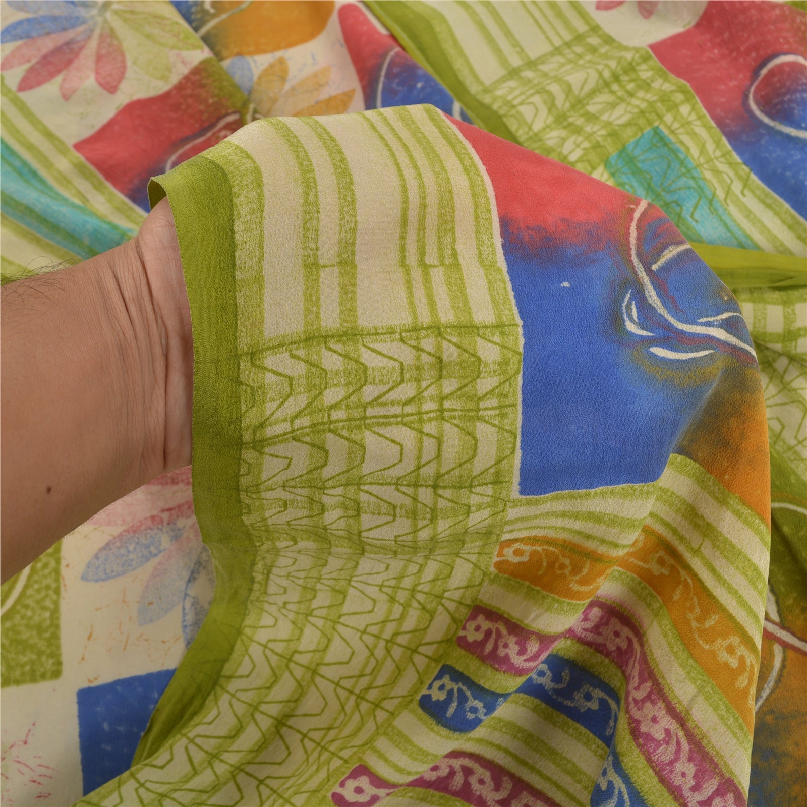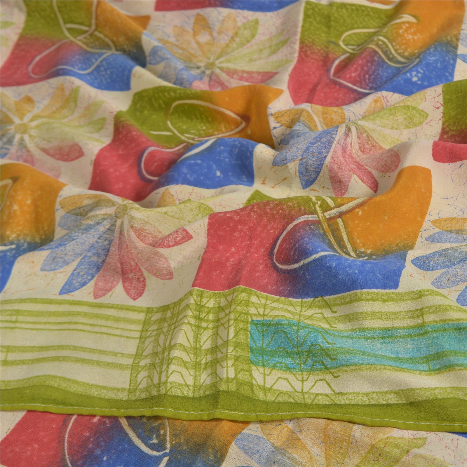 Sanskriti Vintage Indian Sarees Pure Crepe Silk Printed Sustainable Fabric Craft Sewing Sari