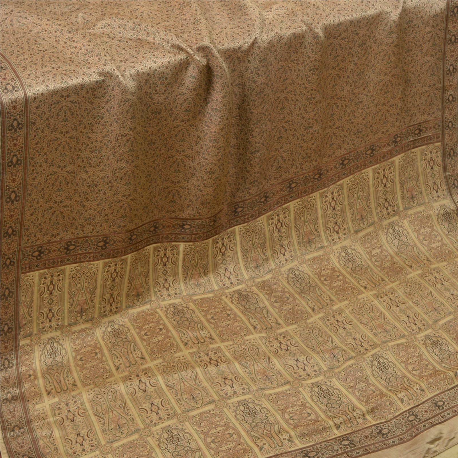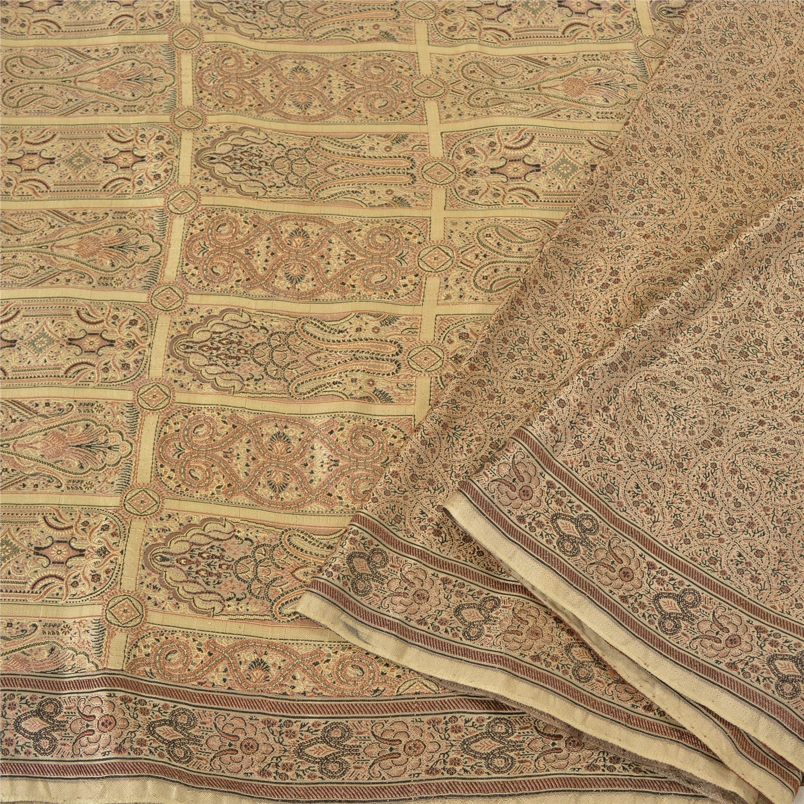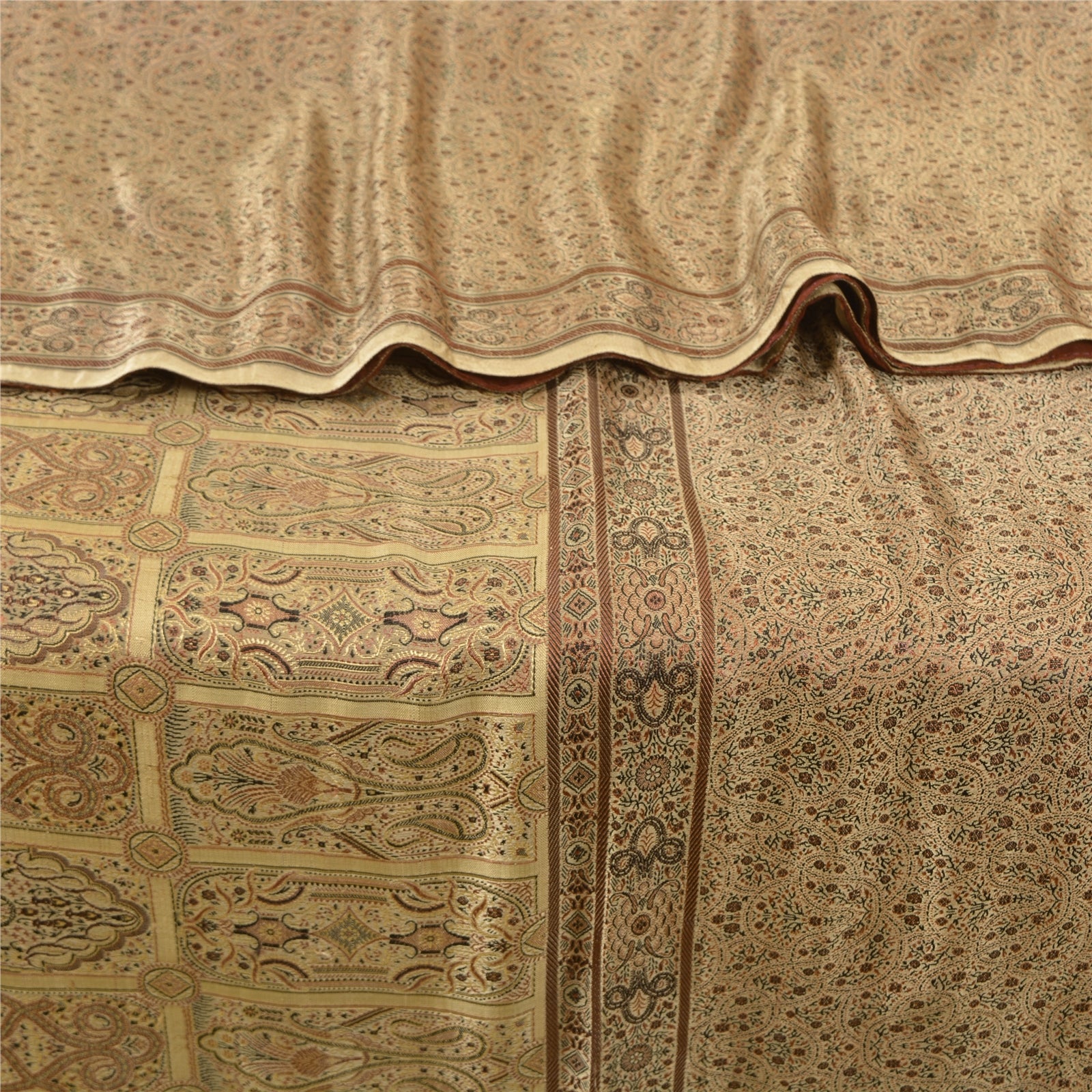 Sanskriti Vintage Ivory Heavy Indian Sarees Pure Satin Silk Woven Sari Sustainable Fabric