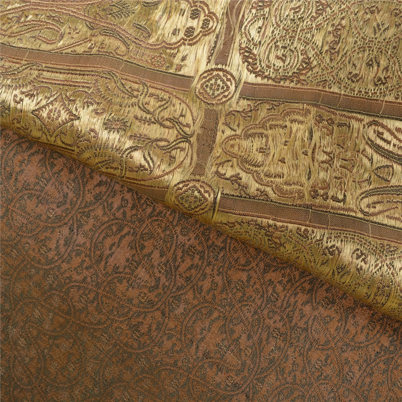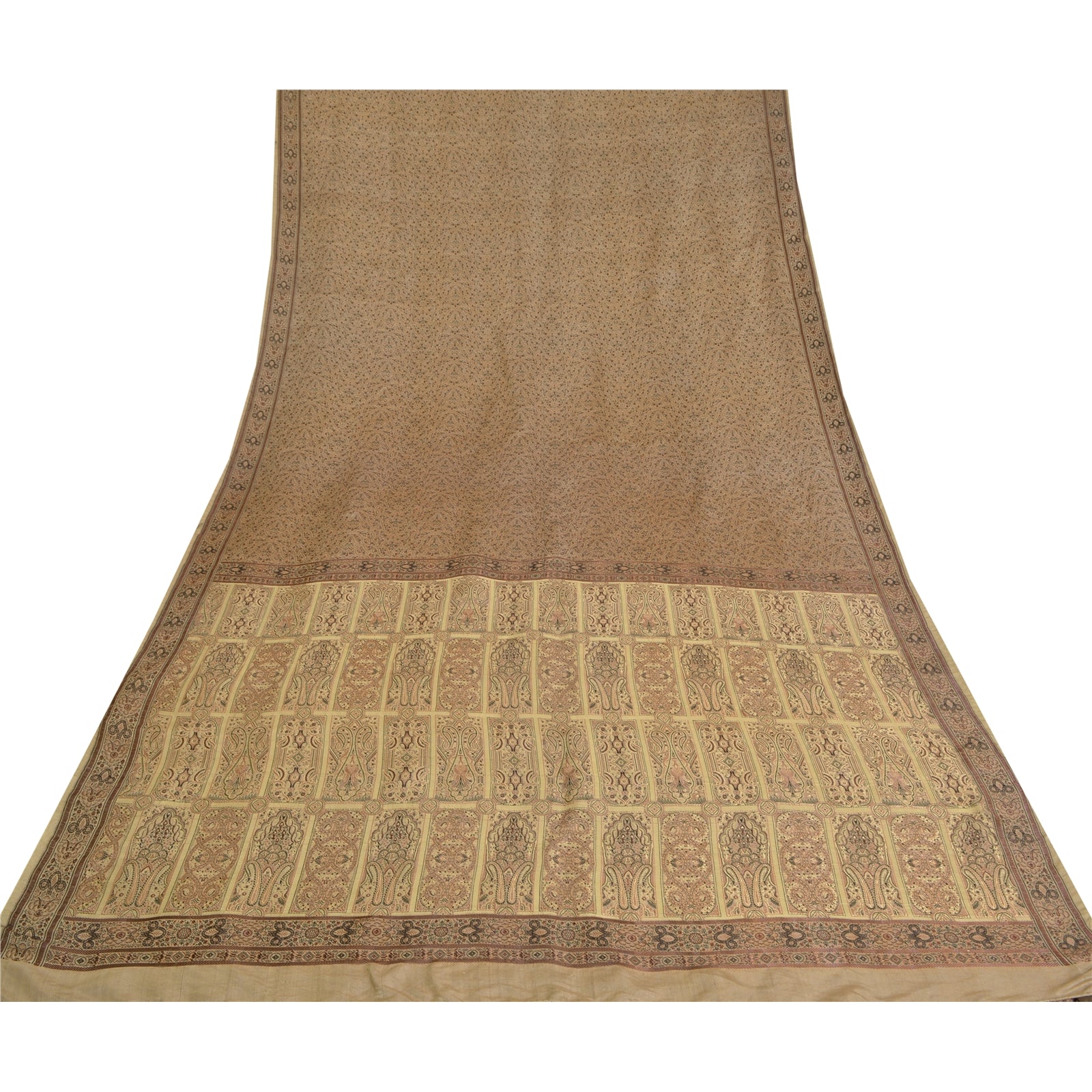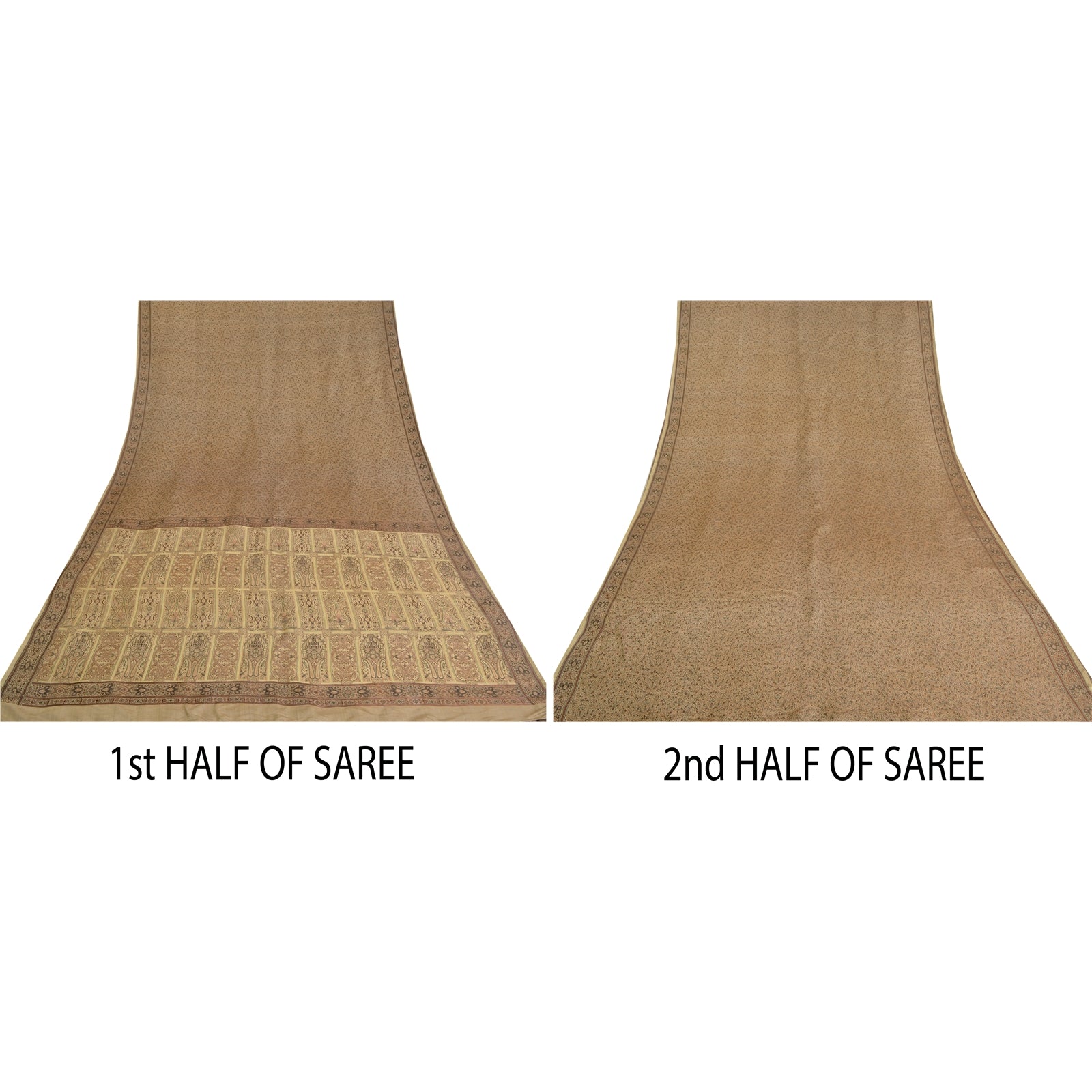Sanskriti Vintage Ivory Heavy Indian Sarees Pure Satin Silk Woven Sari Sustainable Fabric