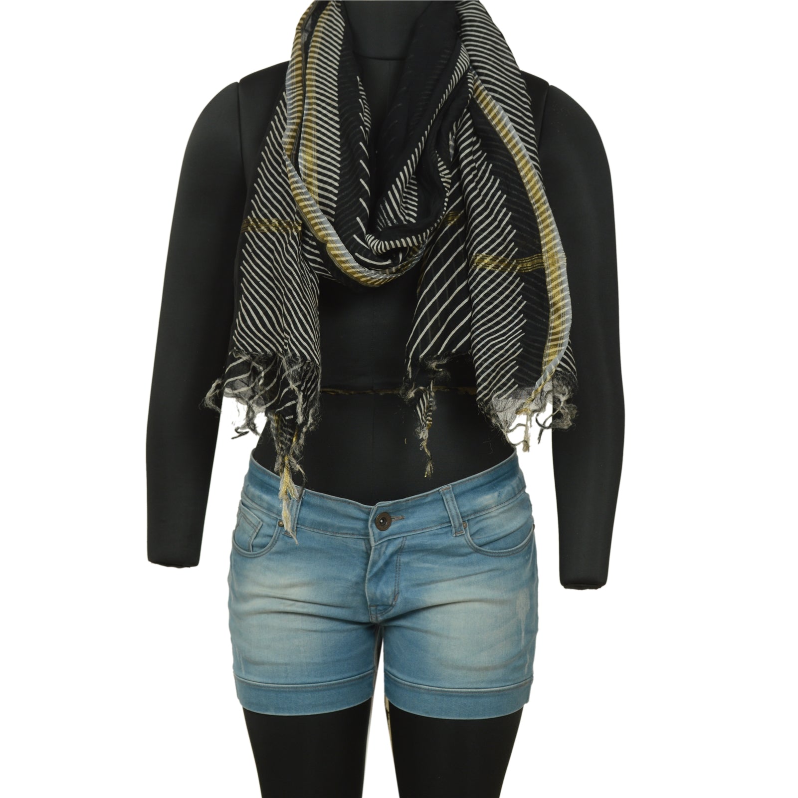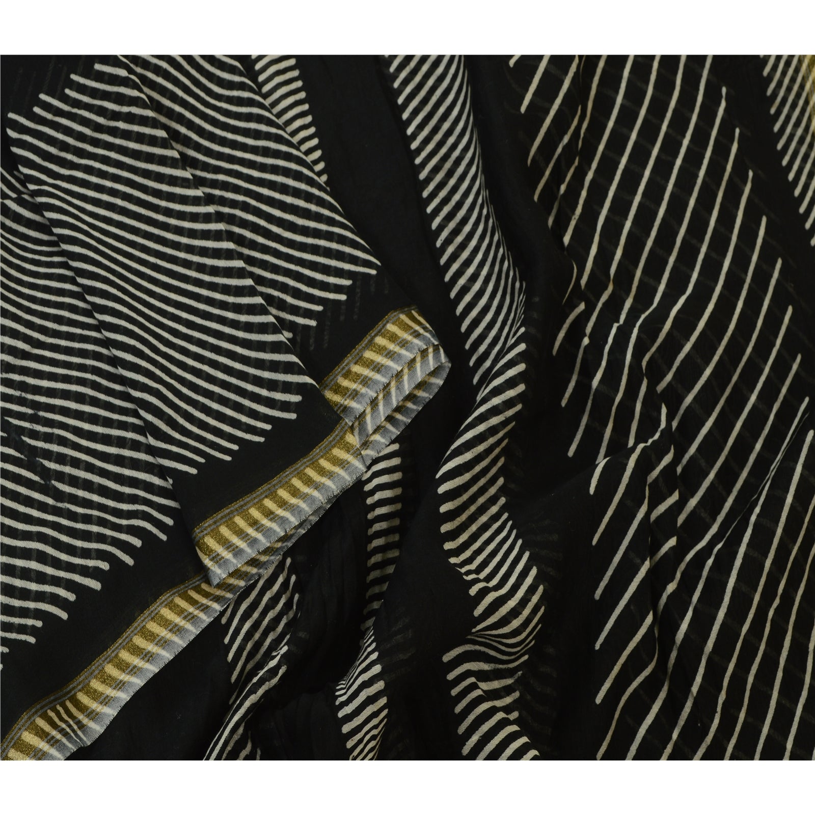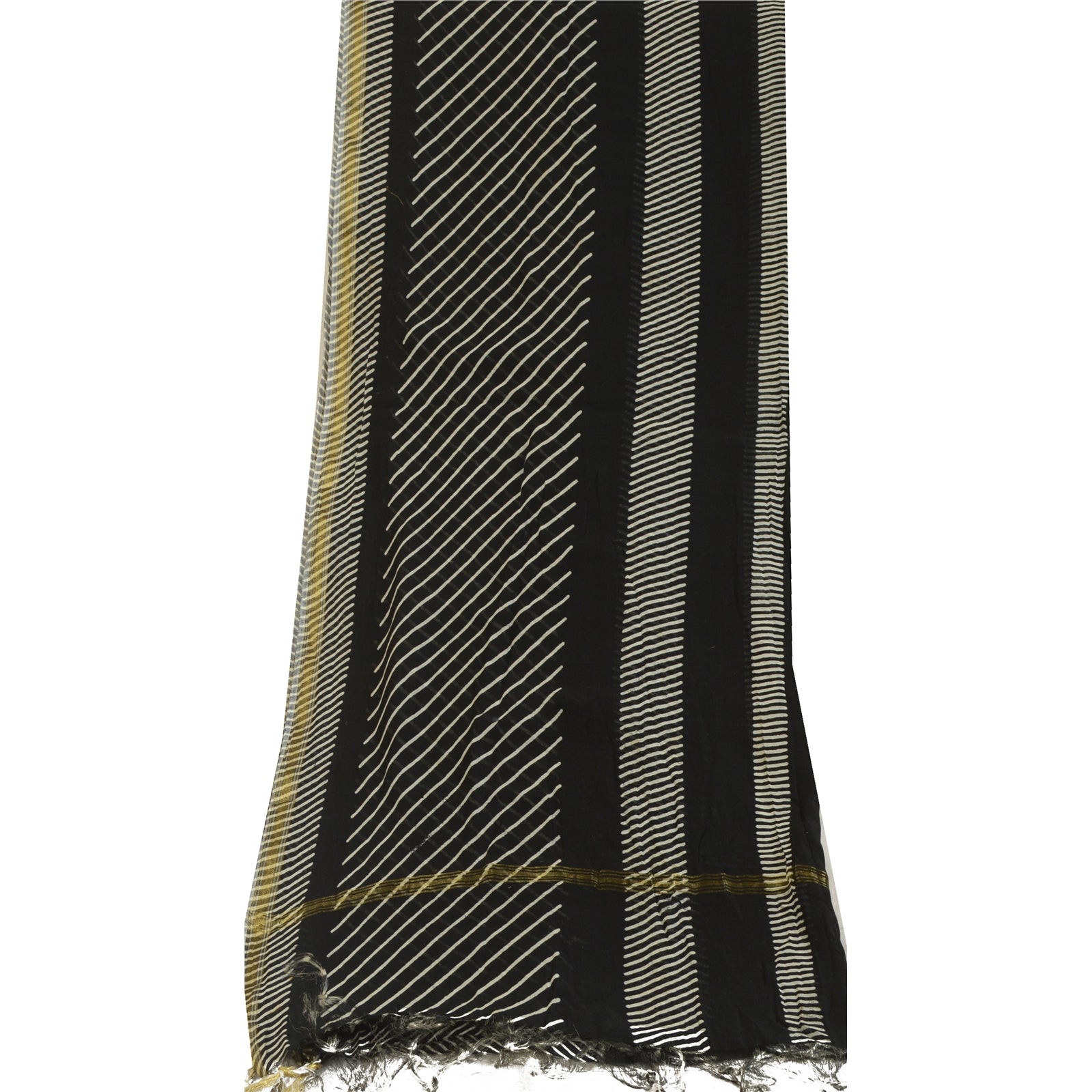 'THE ITEM COLOR OR SHADE MAY BE DARKER OR LIGHTER THAN THE PICTURE.' Beautiful black colored 100% pure chanderi silk printed long scarf/dupatta. Center portion of the dupatta printed lines design. Border has similar lines design with golden woven work is really enhancing beauty of the dupatta/stole. Dupatta has matching fringes on both ends of borders. This dupatta/stole can be used for various crafting ideas too. Use it for dress designing, as a throw, as window dressing, upholstery, table linen and much more. Let your creative juices flow. International buyers please note: Import duties, taxes, and charges are not included in the item price or postage cost. These charges are the buyer's responsibility. Please check with your country's customs office to determine what these additional costs will be prior to bidding or buying. Buyer will pay custom duty/tax. It is calculated and charged differently by every country. As a seller I do not have any control over it. VAT or sales tax is calculated by the platform at the time of checkout. Customs charge is payable at the time of delivery.'
