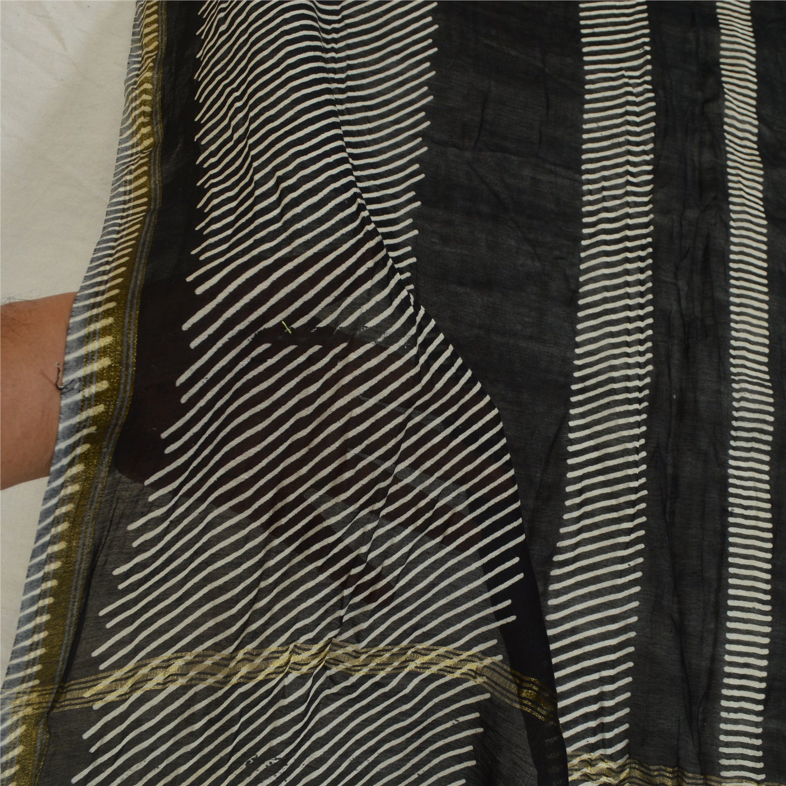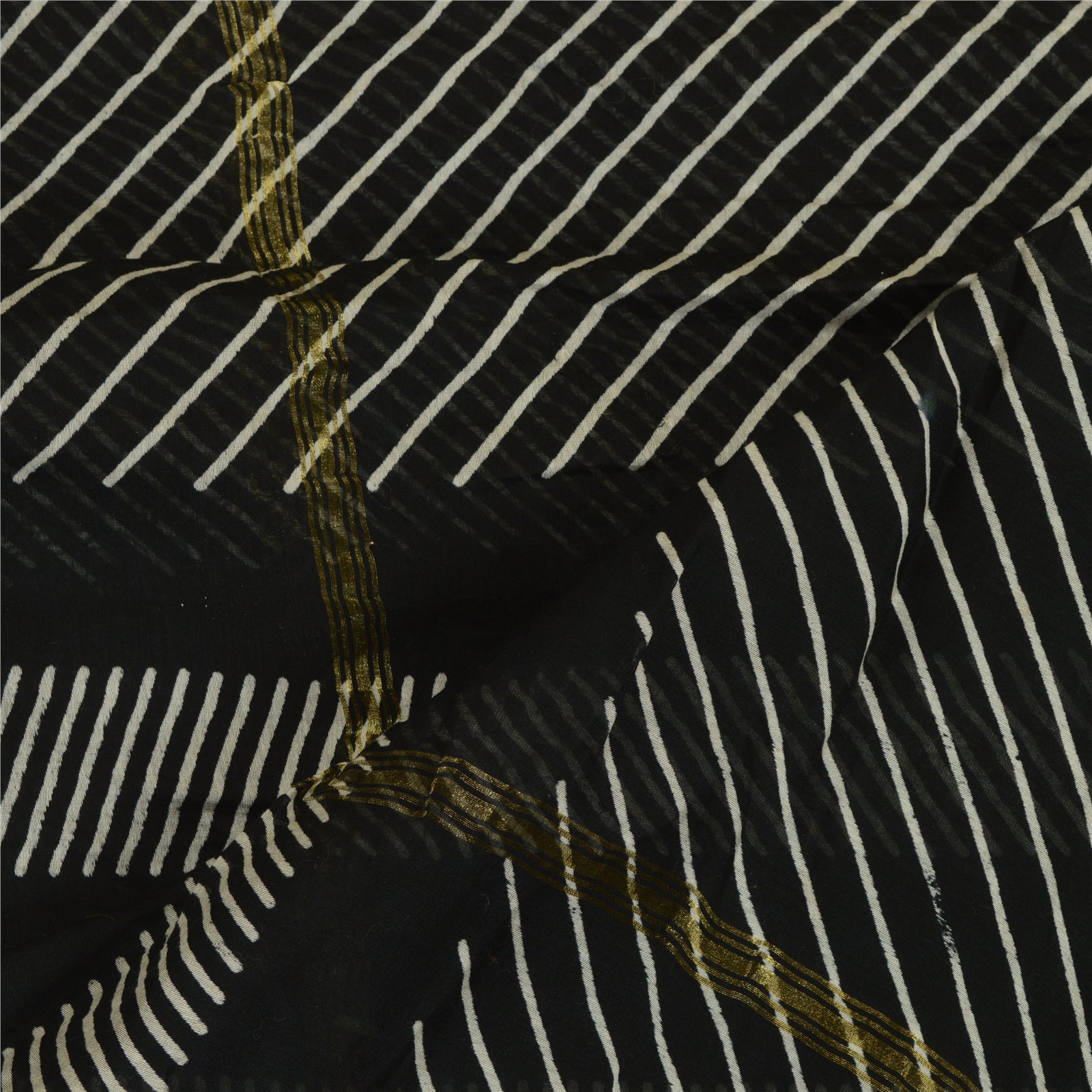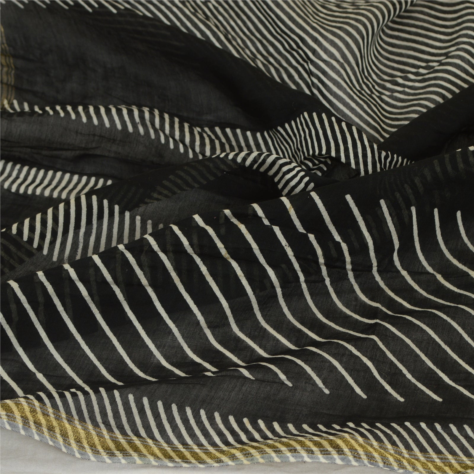 Sanskriti Vintage Long Black Dupatta/Stole Pure Chanderi Silk Printed Scarves