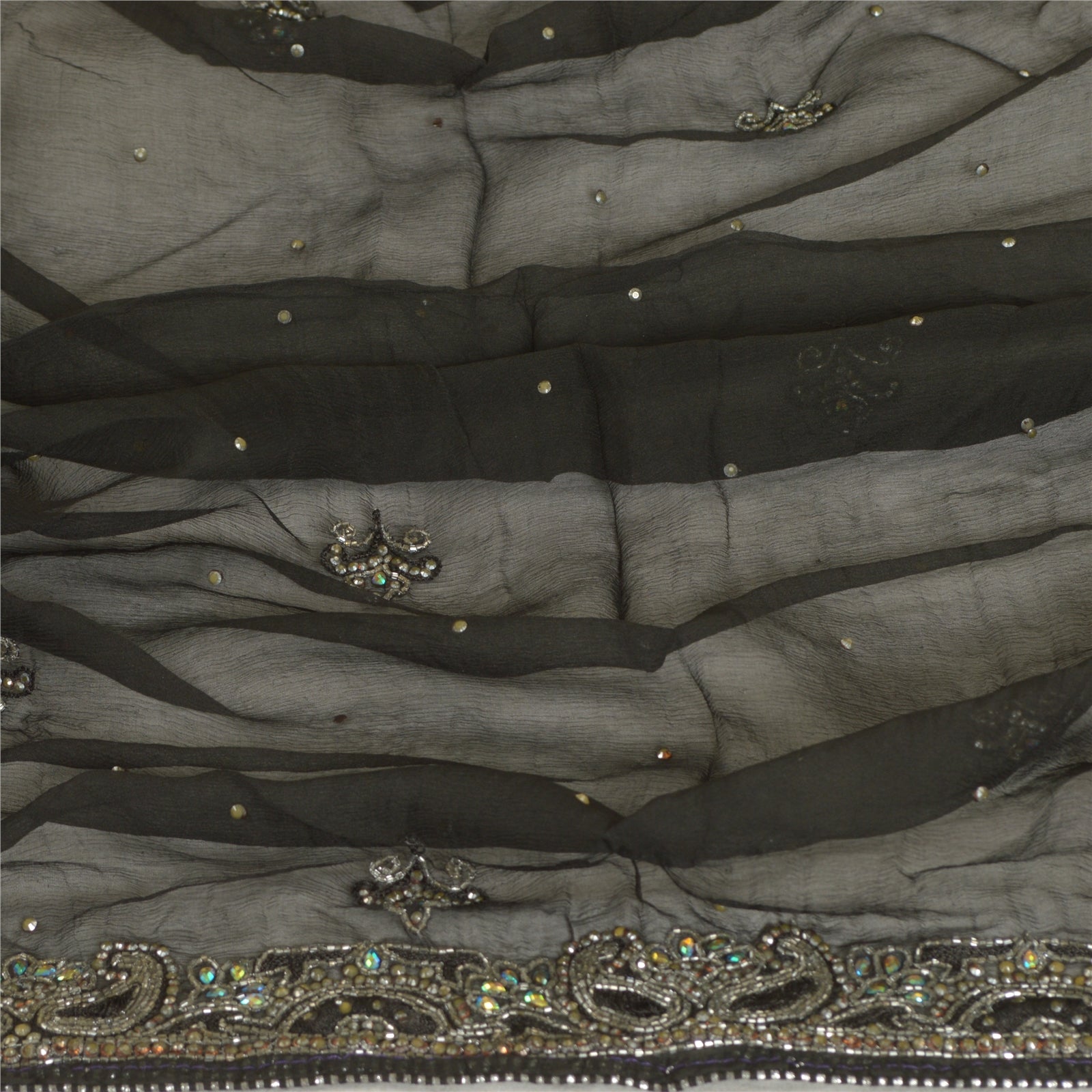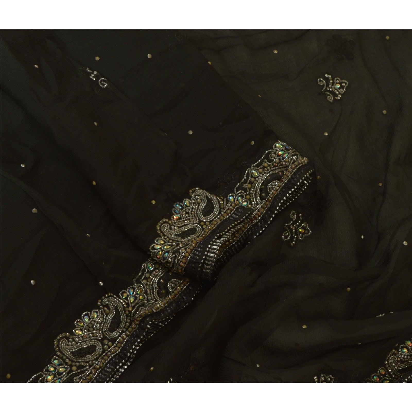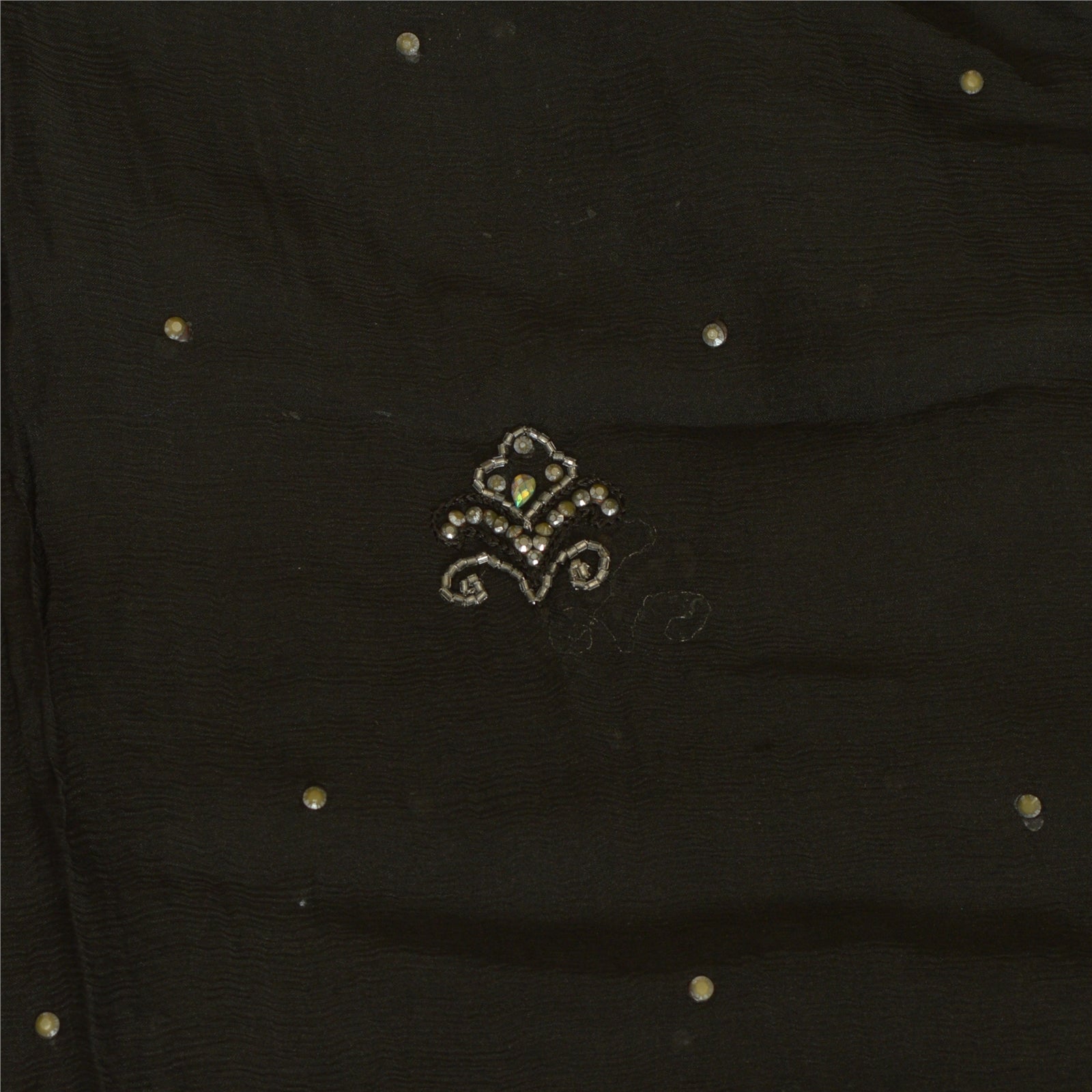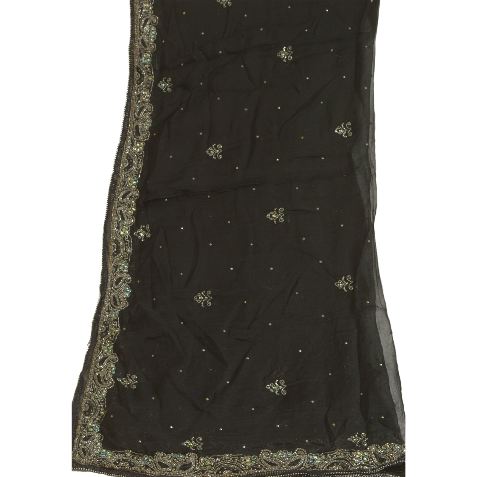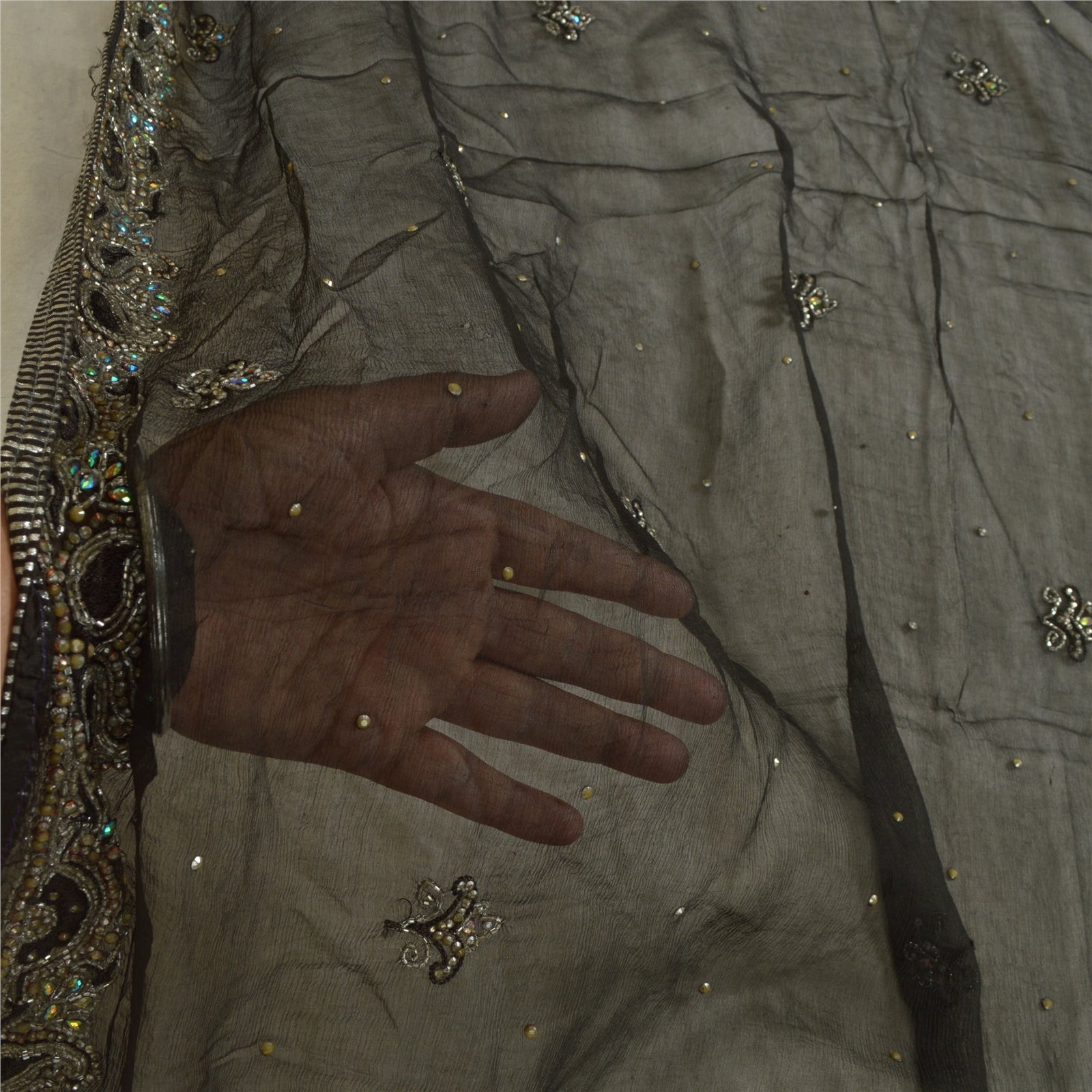 Sanskriti Vintage Long Black Dupatta/Stole Pure Chiffon Silk Hand Beaded Scarves
