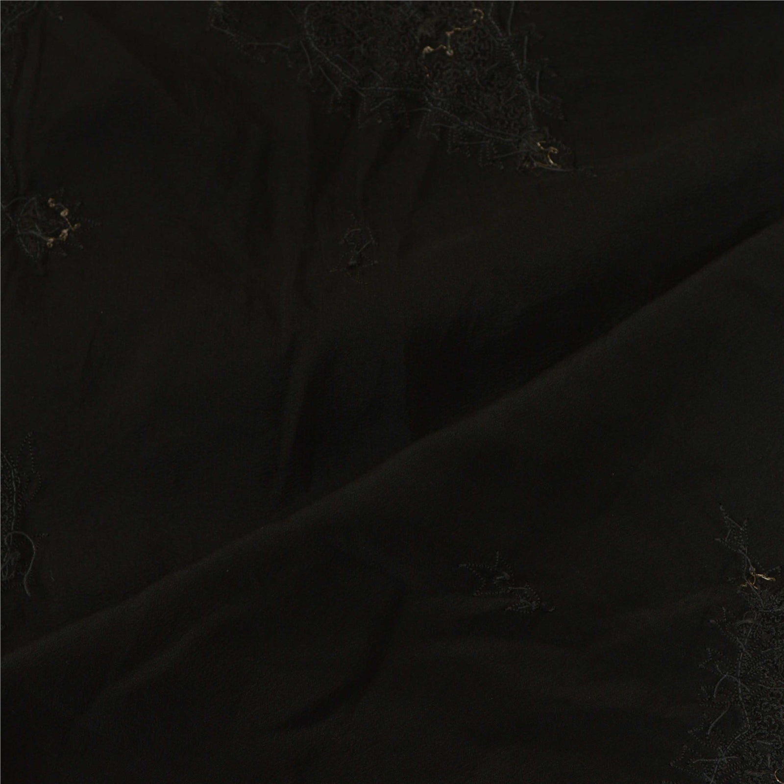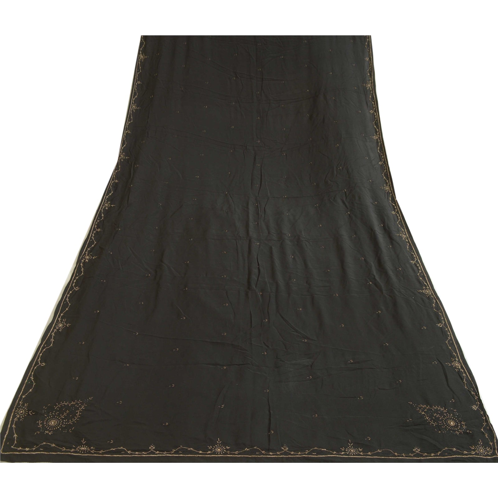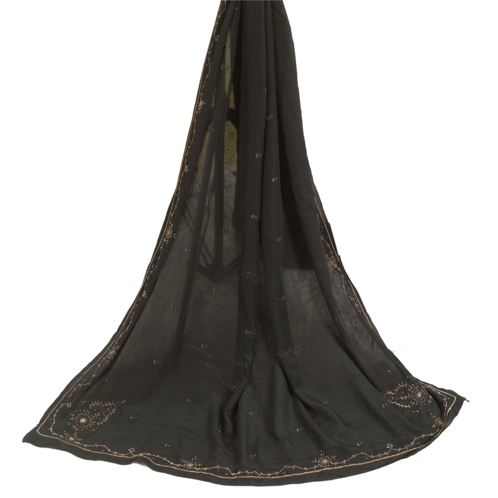 'THE ITEM COLOR OR SHADE MAY BE DARKER OR LIGHTER THAN THE PICTURE.' Beautiful black colored pure crepe silk hand embroidered dupatta/stole. Center portion of the dupatta floral design with zardozi work. Border has floral design embroidered black thread work embellished with metallic golden zardozi work, white rhinestones work is really enhancing beauty of the dupatta/stole. This dupatta/stole can be used for various crafting ideas too. Use it for dress designing, as a throw, as window dressing, upholstery, table linen and much more. Let your creative juices flow. International buyers please note: Import duties, taxes, and charges are not included in the item price or postage cost. These charges are the buyer's responsibility. Please check with your country's customs office to determine what these additional costs will be prior to bidding or buying. Buyer will pay custom duty/tax. It is calculated and charged differently by every country. As a seller I do not have any control over it. VAT or sales tax is calculated by the platform at the time of checkout. Customs charge is payable at the time of delivery.'