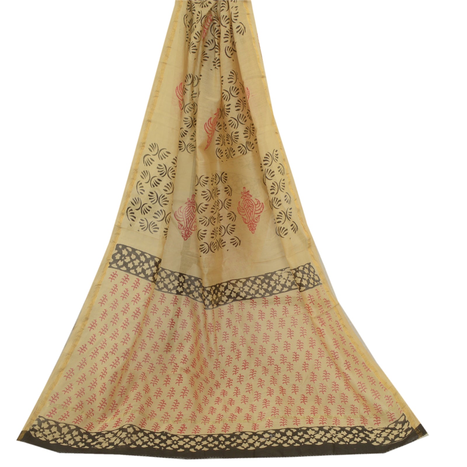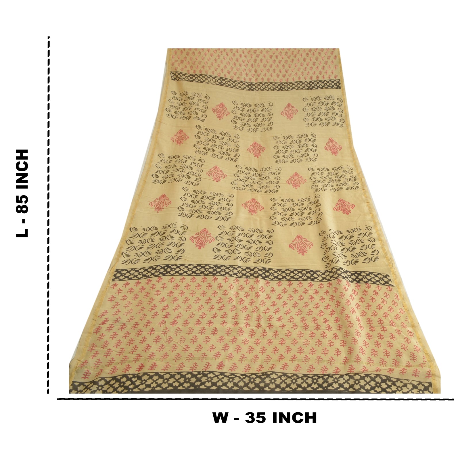 Sanskriti Vintage Long Dupatta Stole Cotton Silk Cream Hand-Block Printed Shawl