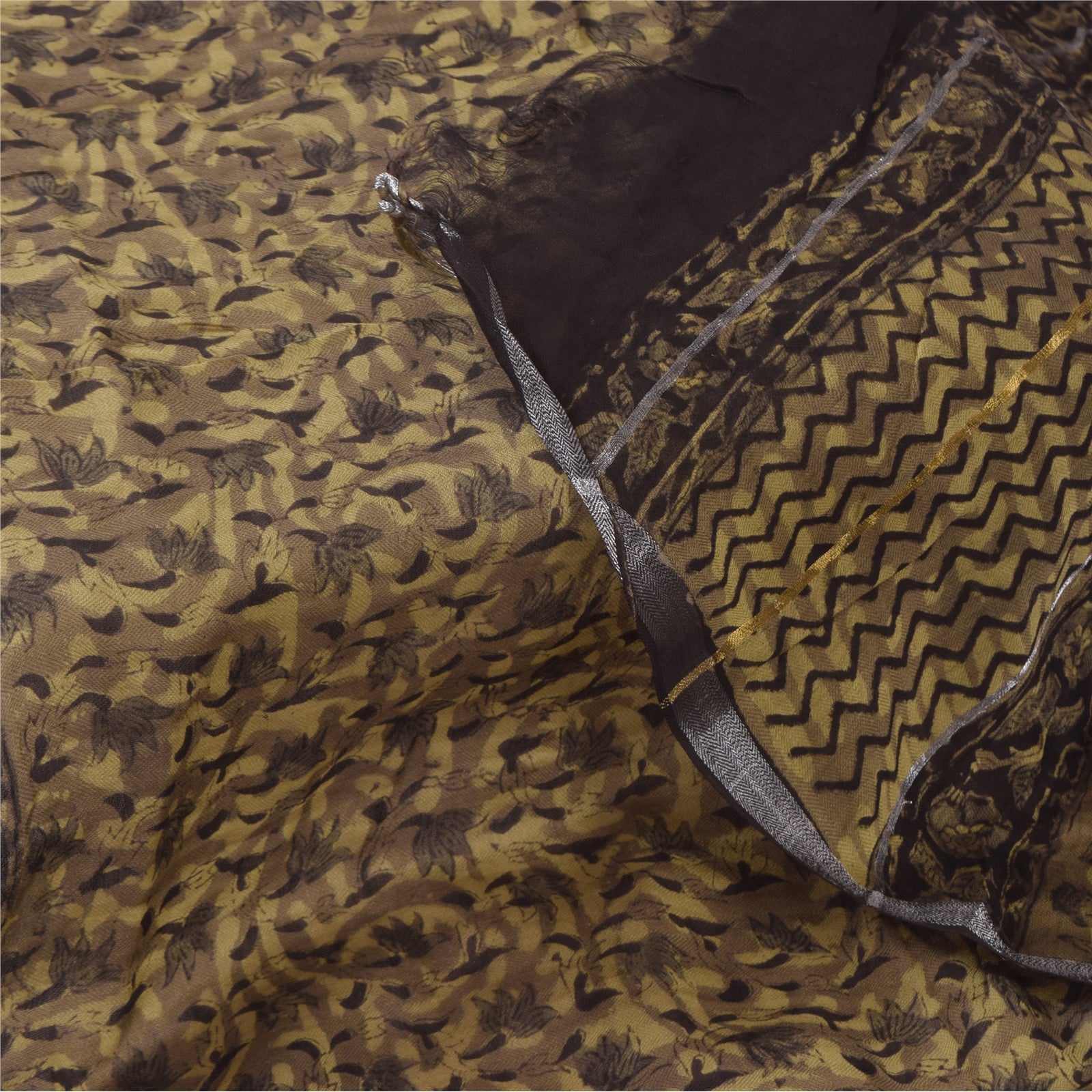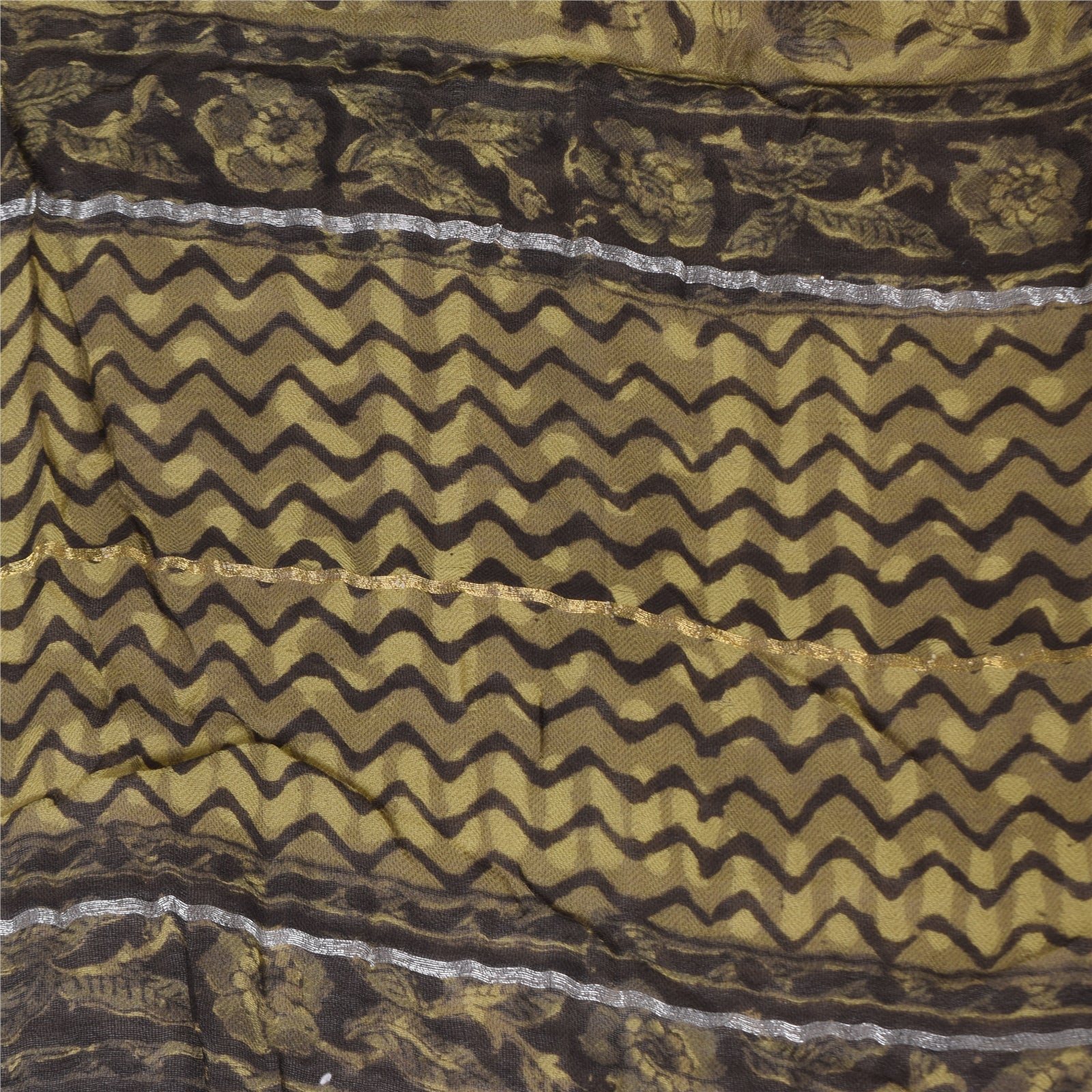 Sanskriti Vintage Long Dupatta/Stole Green Hand Block Printed Cotton Silk Veil