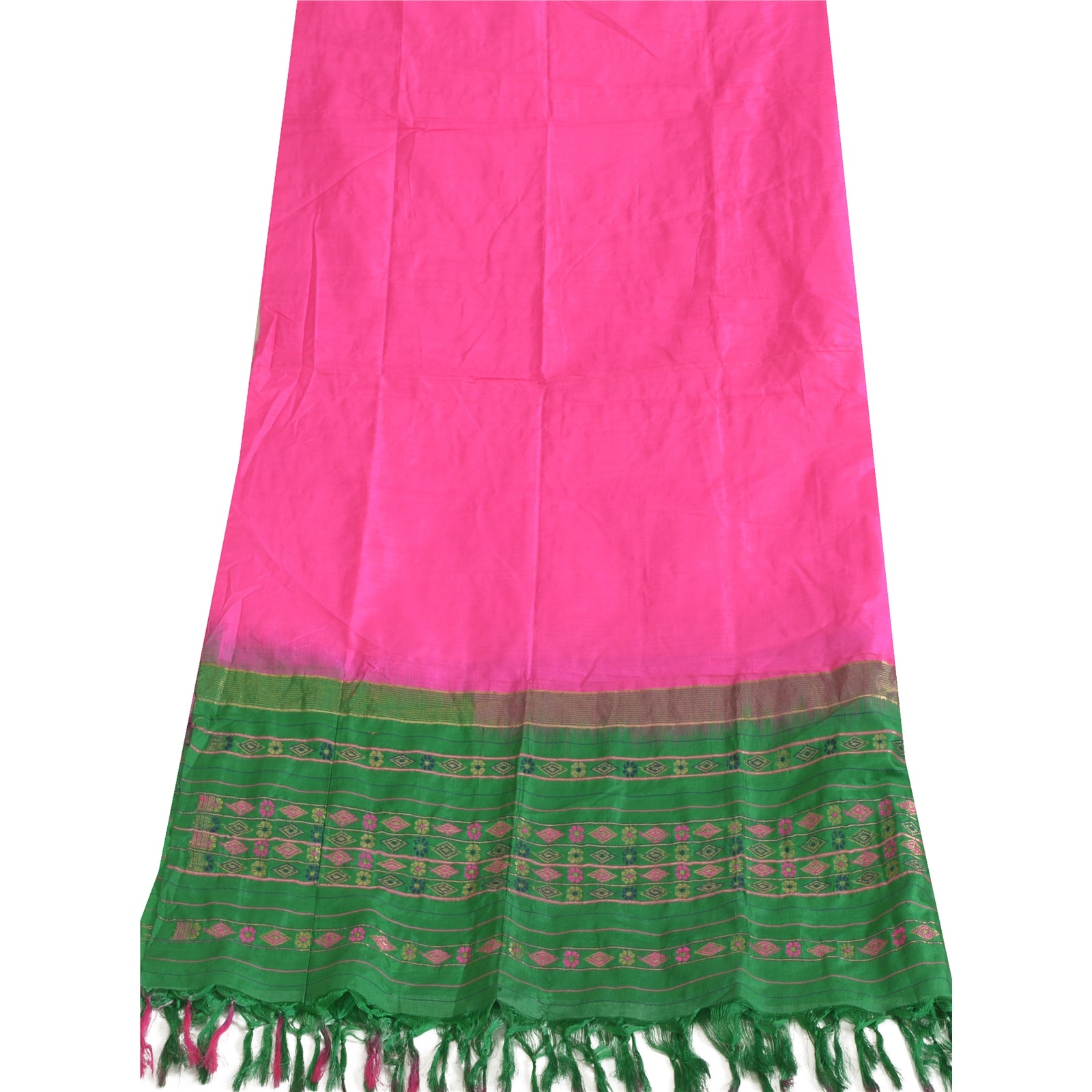 Sanskriti Vintage Long Dupatta Stole Pure Silk Hot Pink/Green Woven Brocade Veil