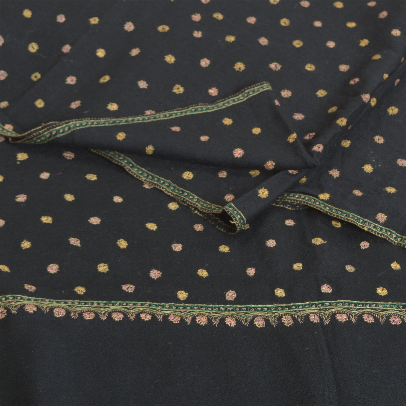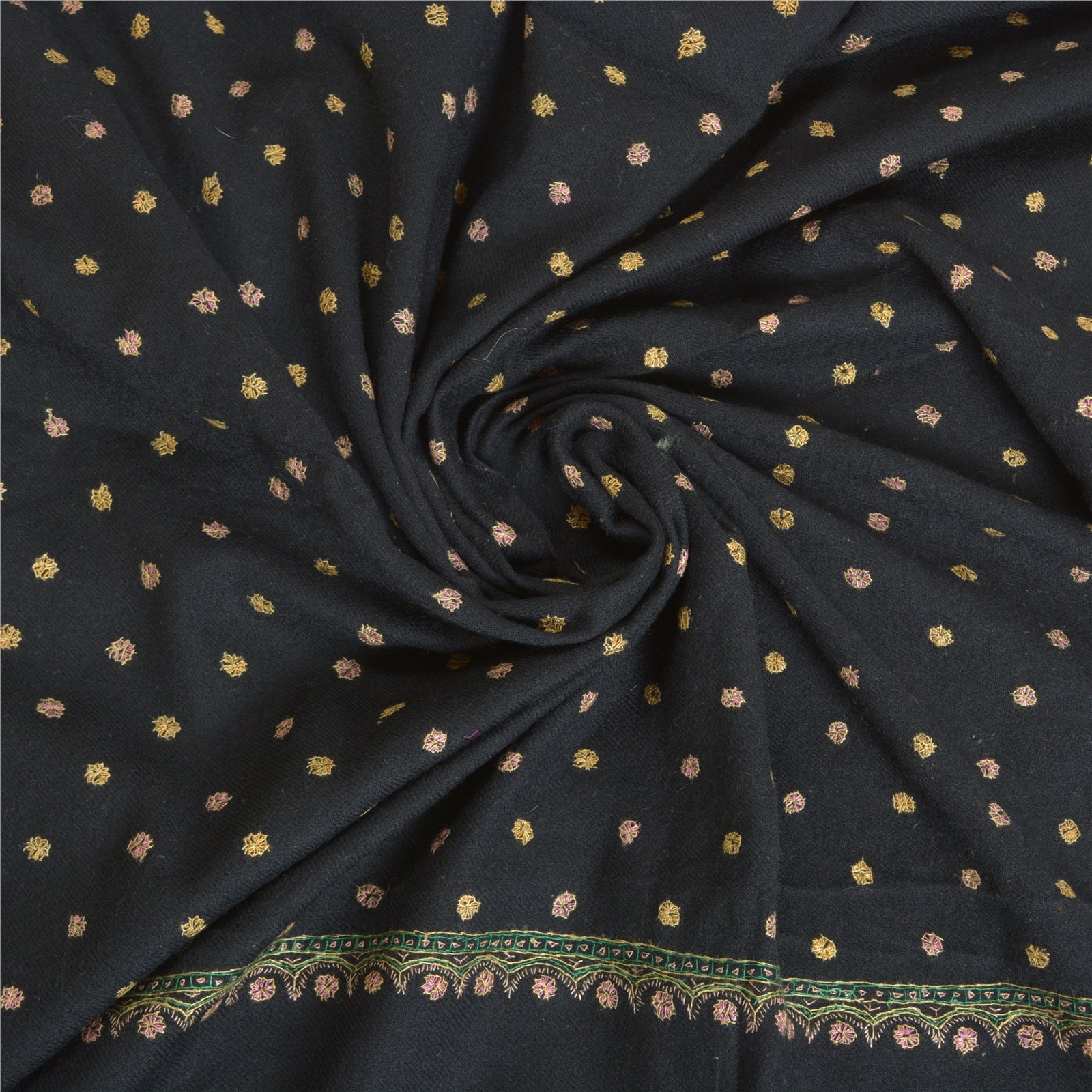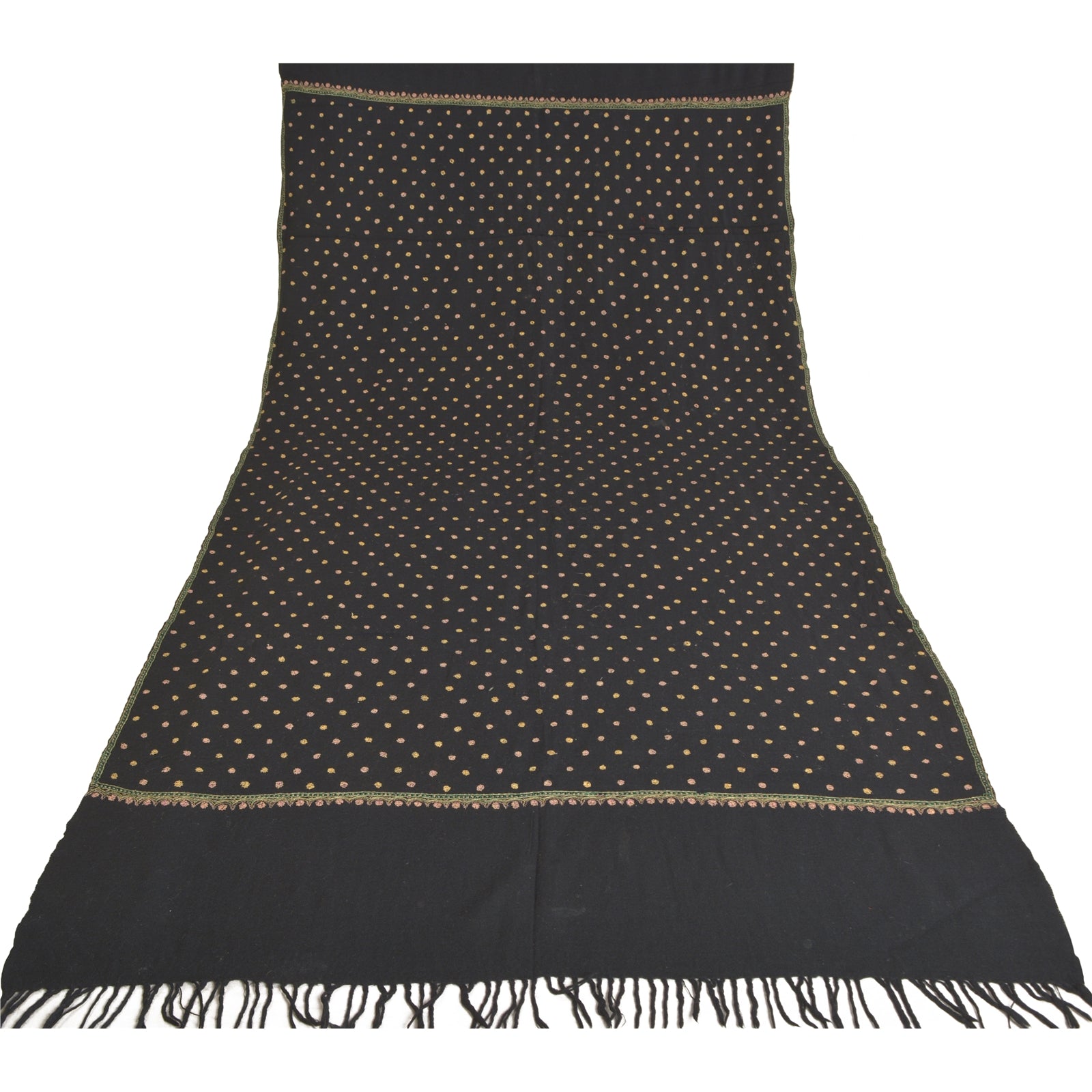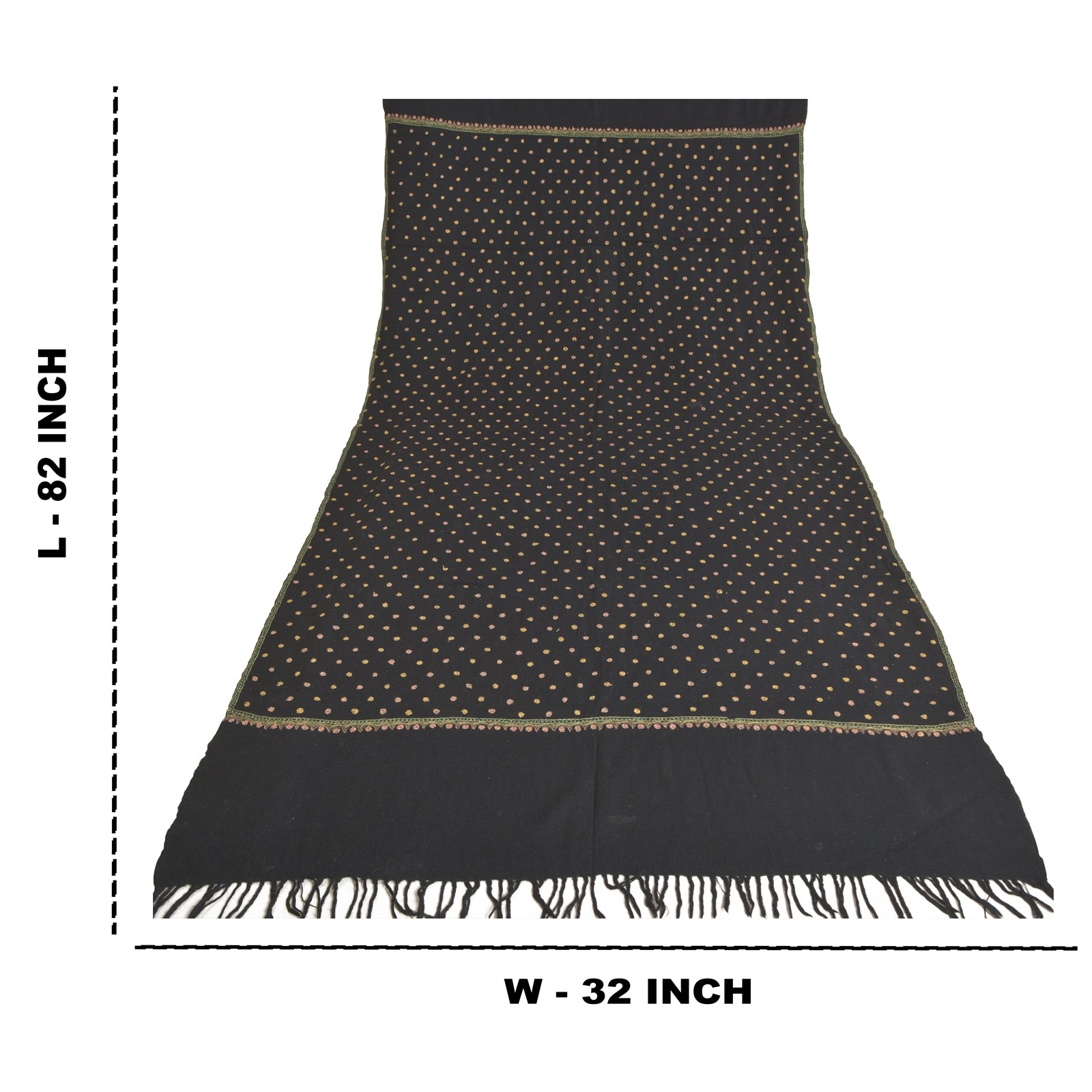 Sanskriti Vintage Long Pure Woolen Black Shawl Handmade Suzani Scarf Stole