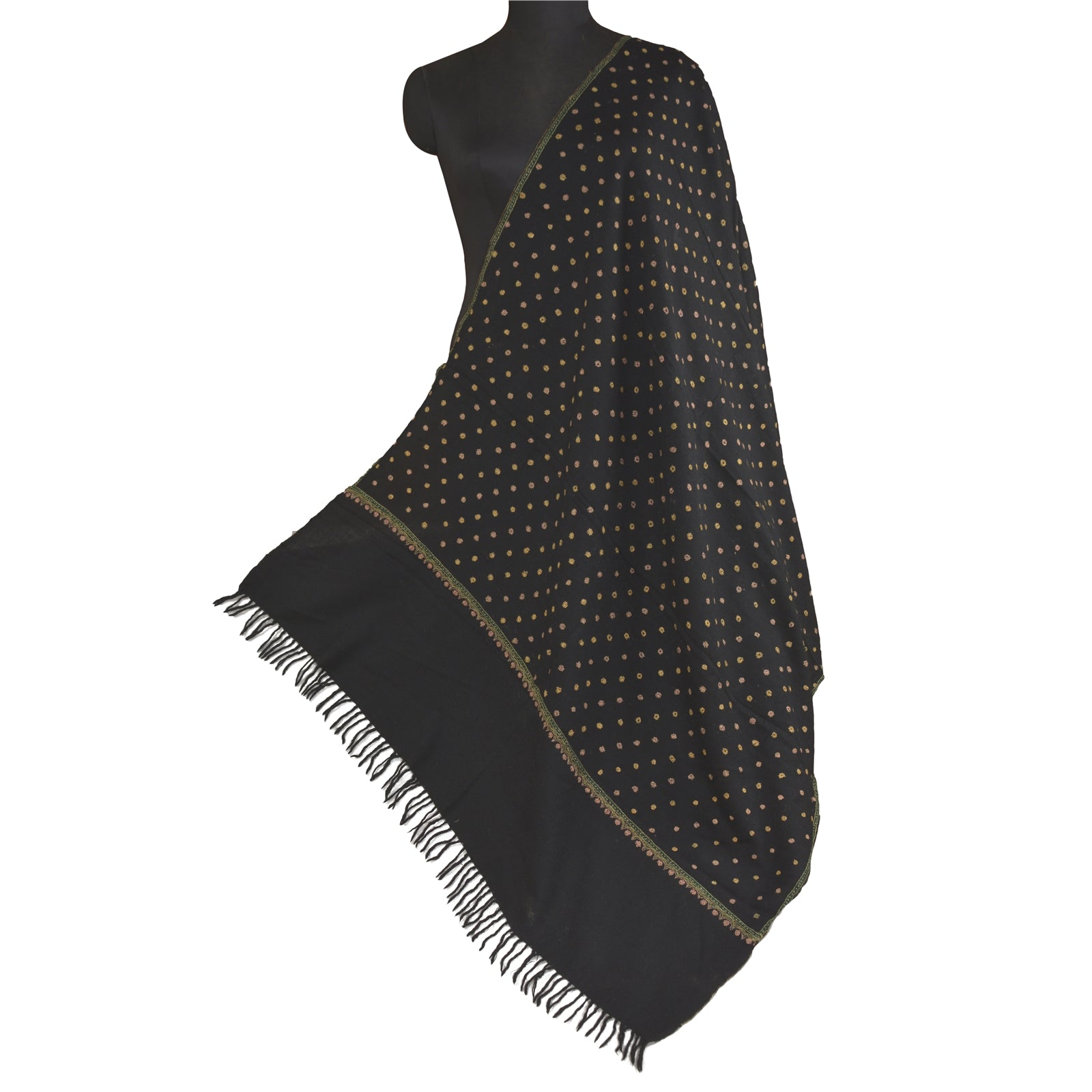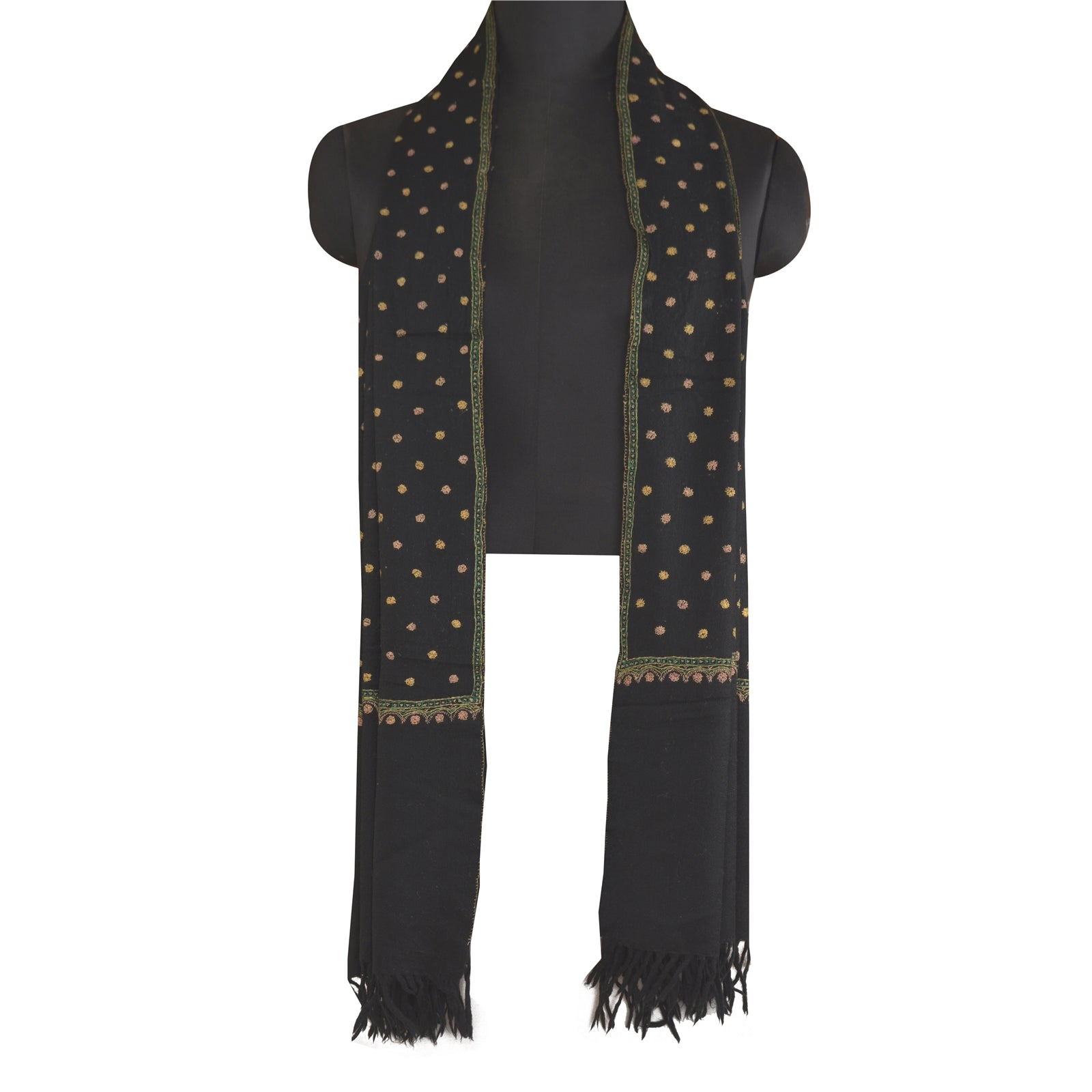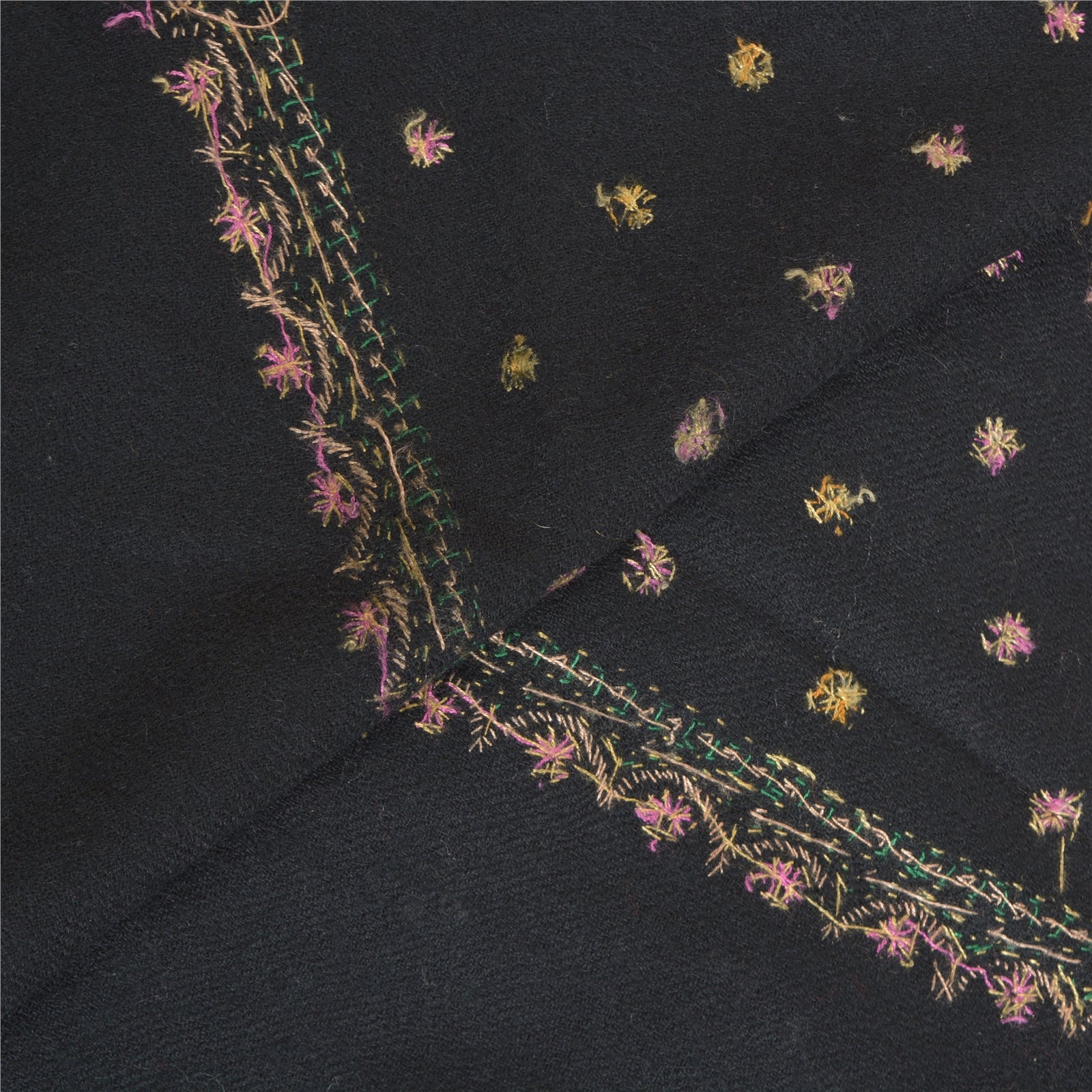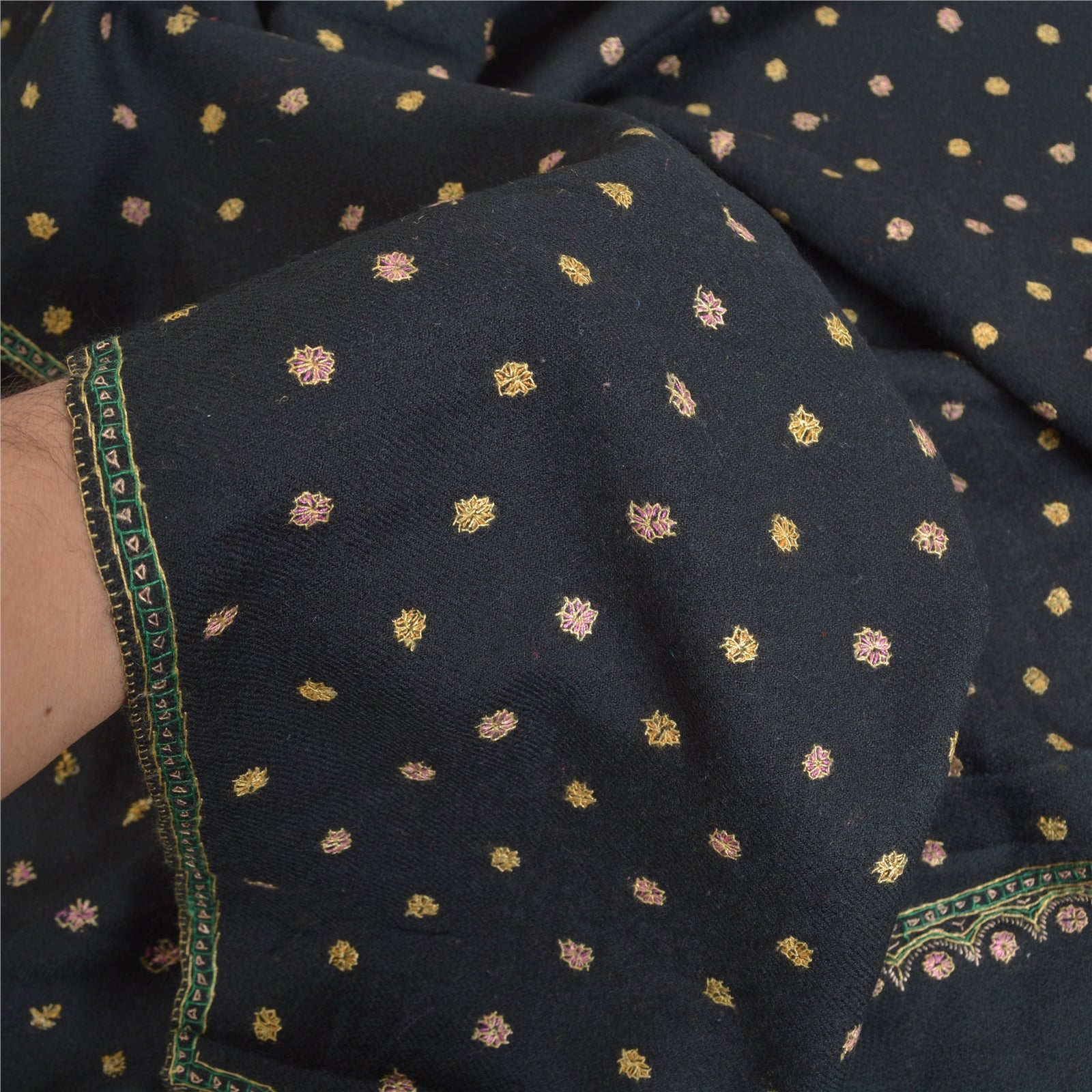 Sanskriti Vintage Long Pure Woolen Black Shawl Handmade Suzani Scarf Stole