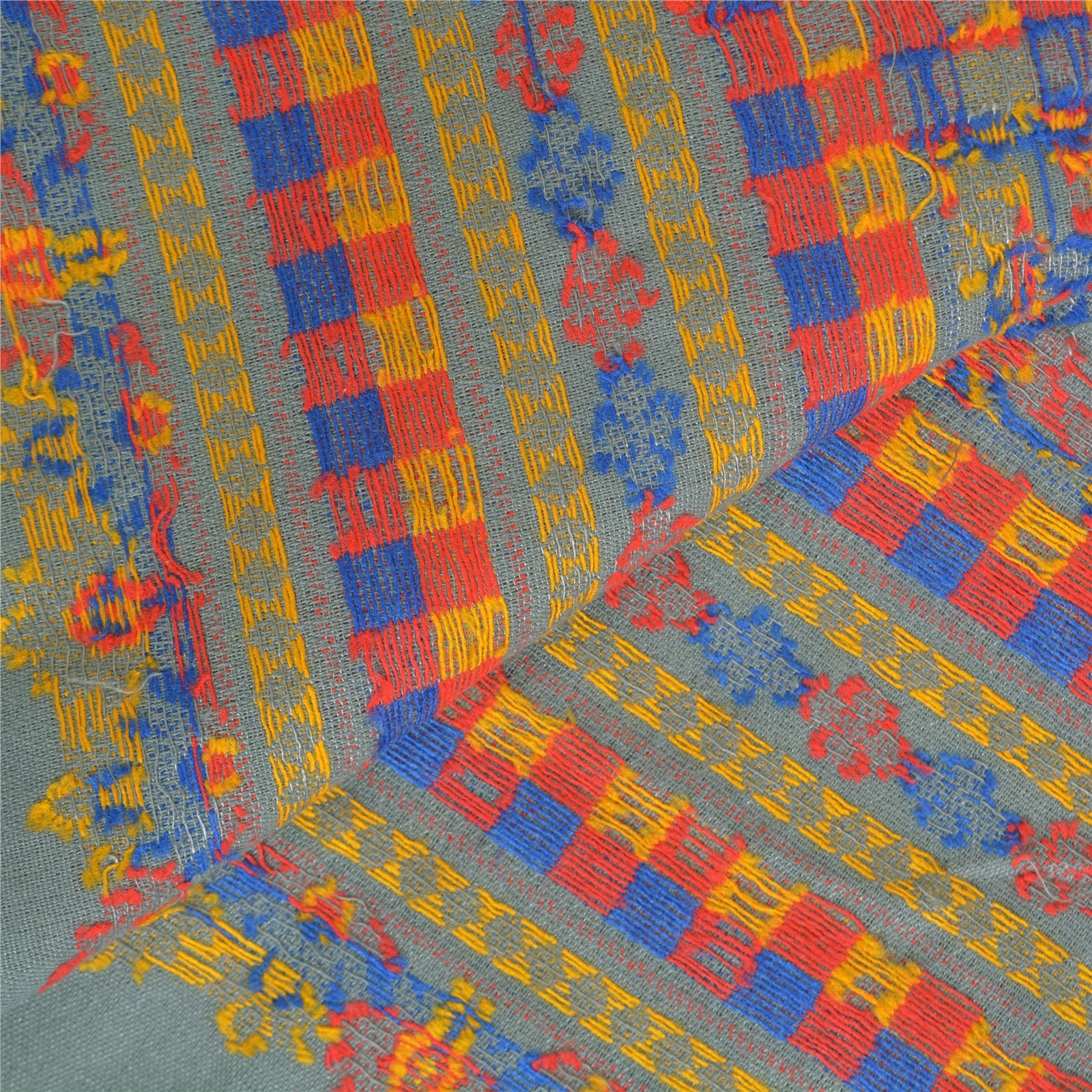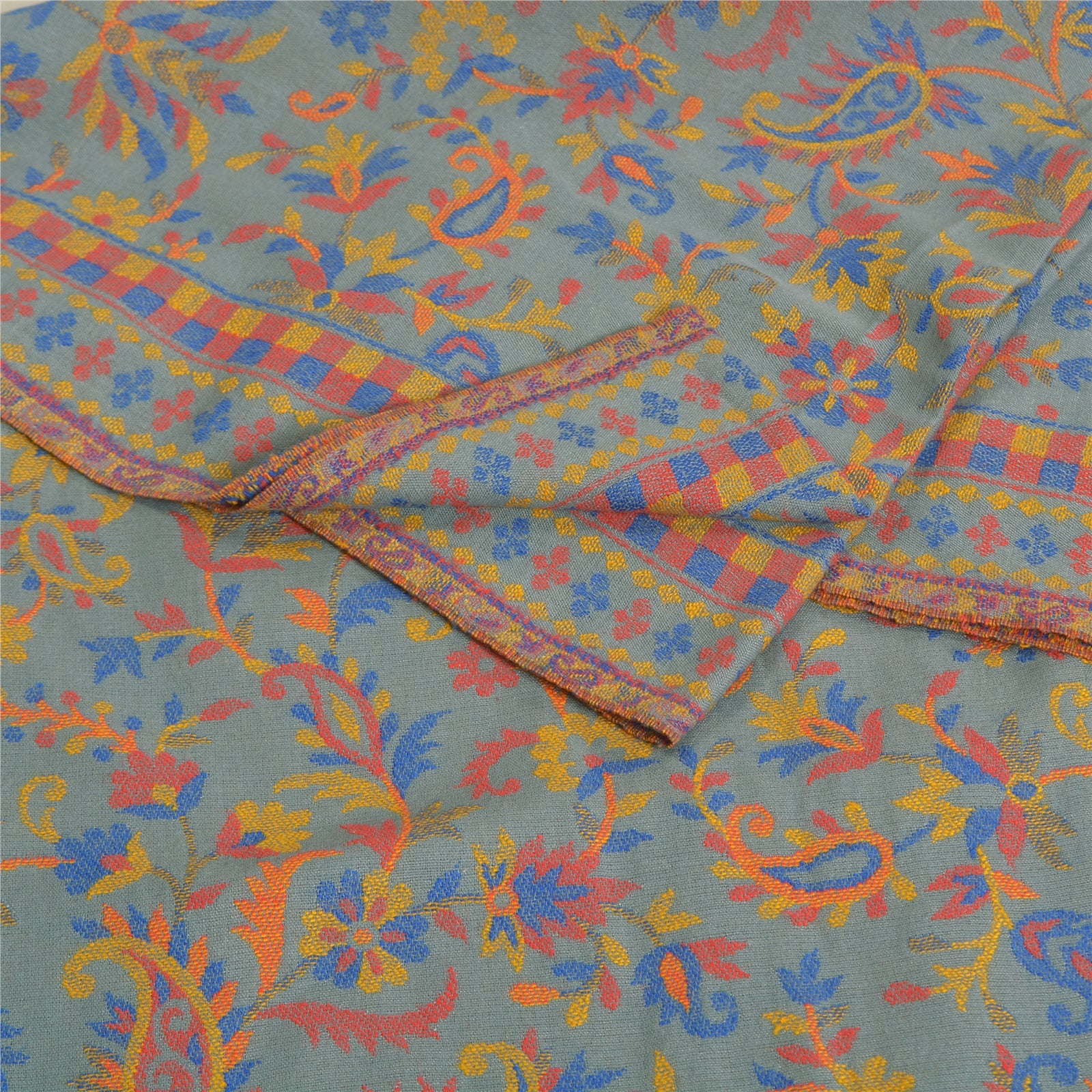 Sanskriti Vintage Long Woolen Grayish-Blue Shawl Hand Woven Kullu Scarf Stole