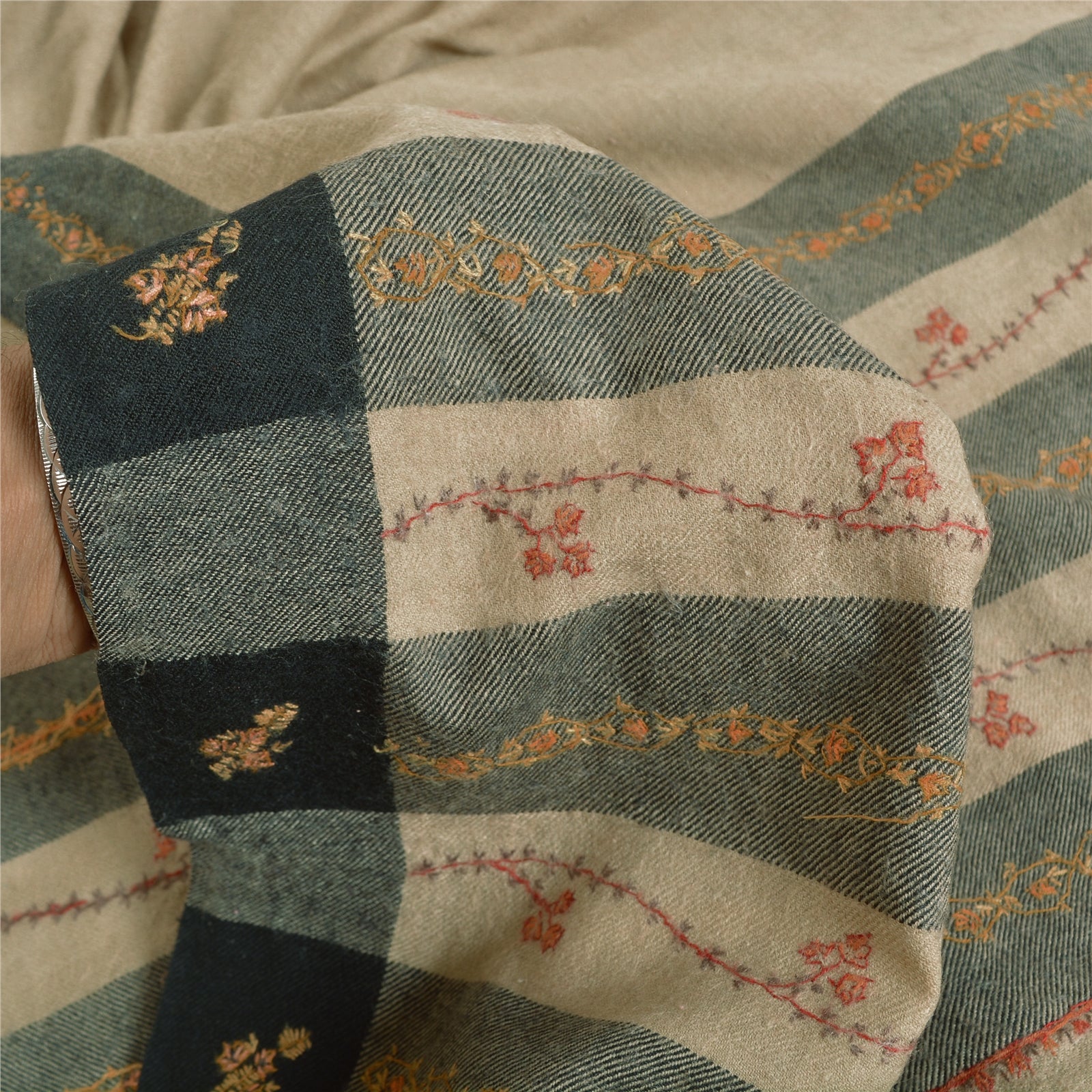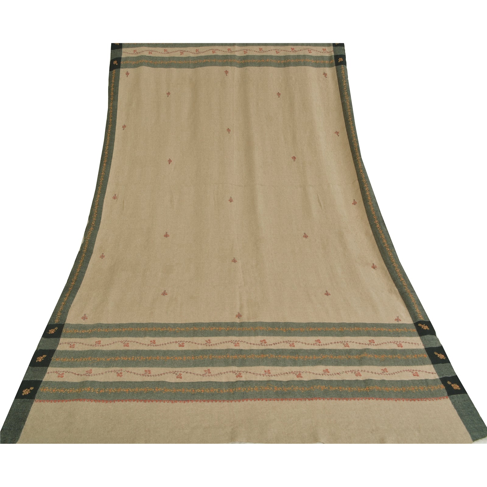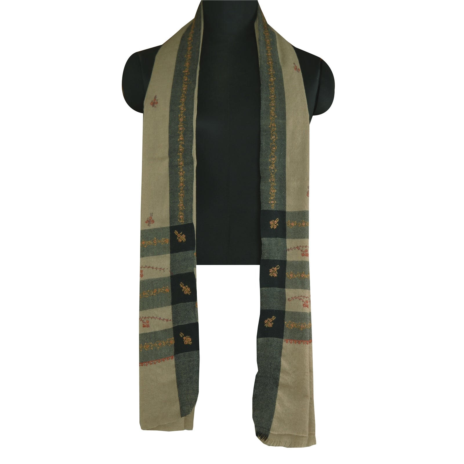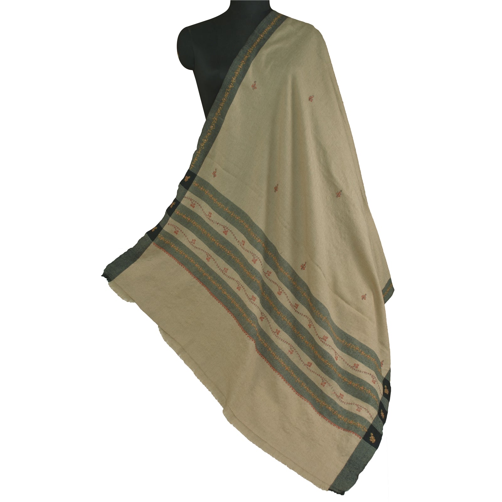 Sanskriti Vintage Long Woollen Ivory Shawl Handmade Suzani Scarf Stole