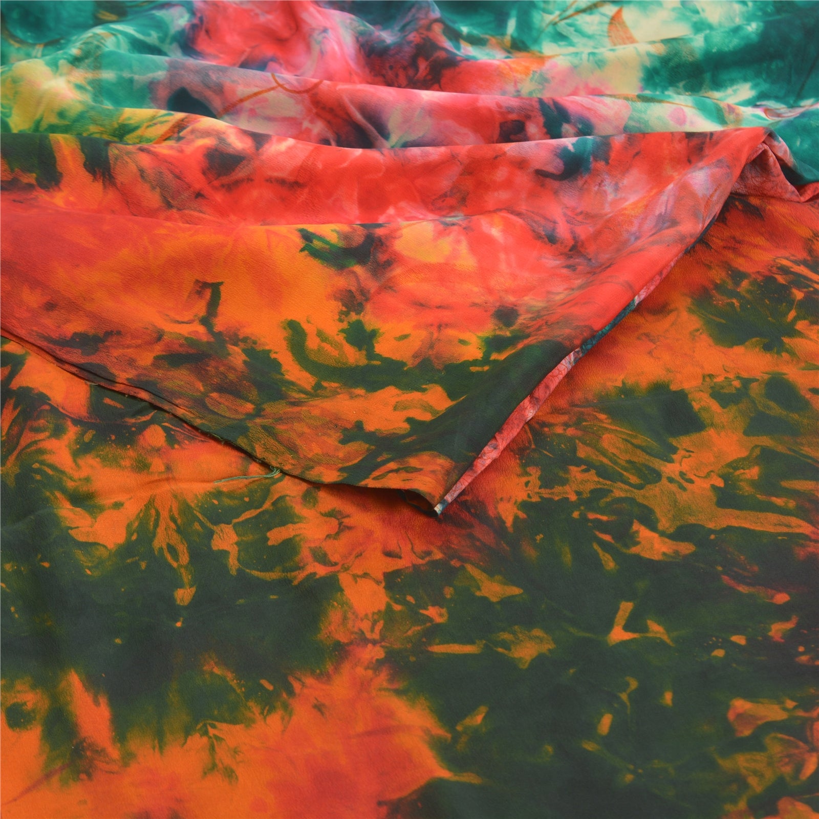 Sanskriti Vintage Multi Tie-Dye Sarees Pure Crepe Silk Printed Sari Craft Fabric