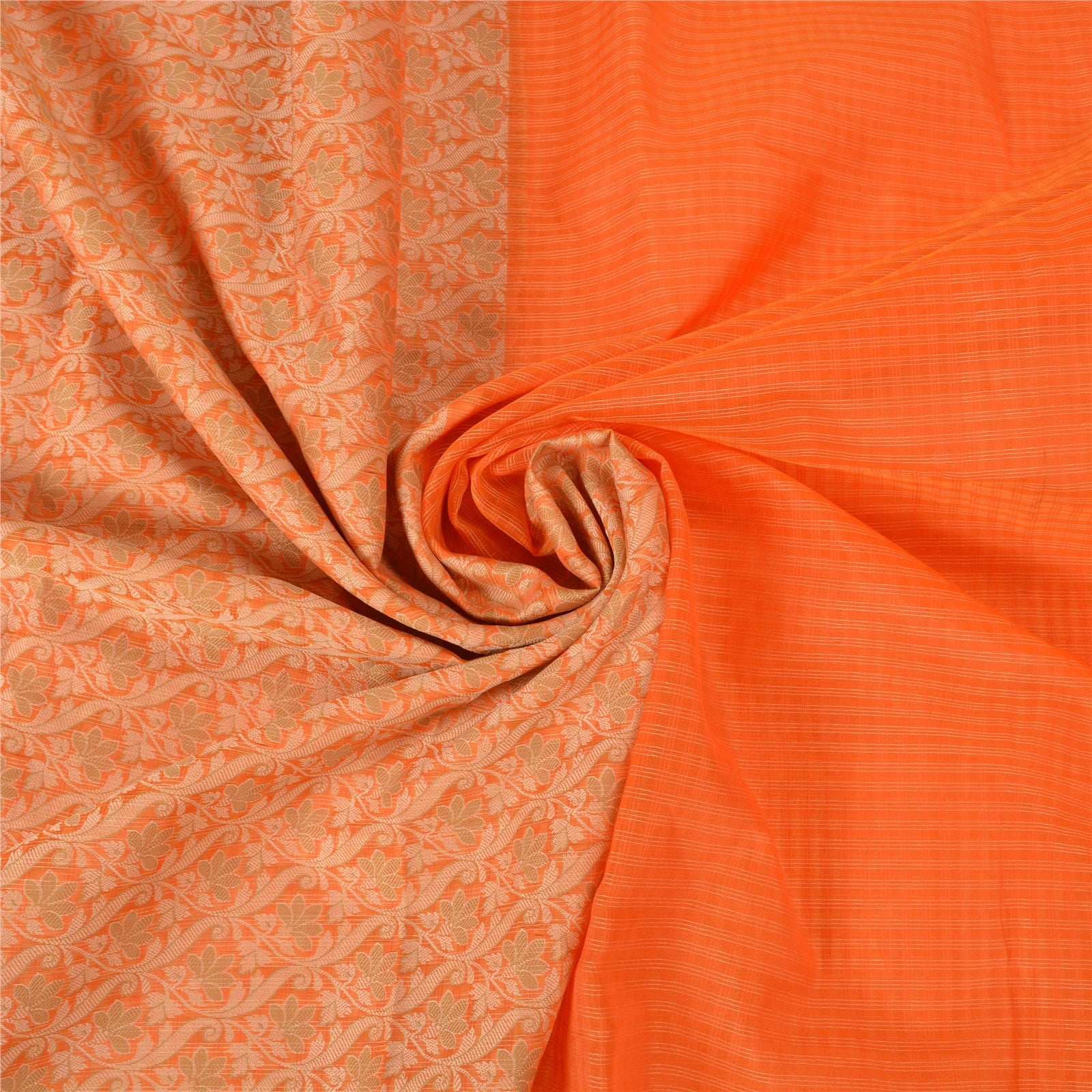 Sanskriti Vintage Orange Indian Sarees Art Silk Woven Premium Sari Craft Sustainable Fabric