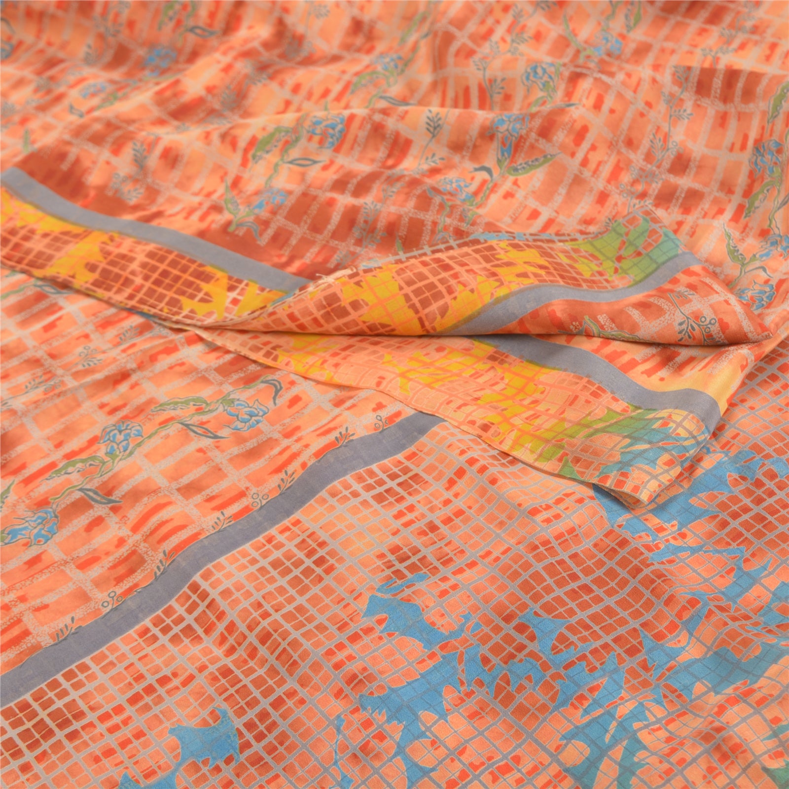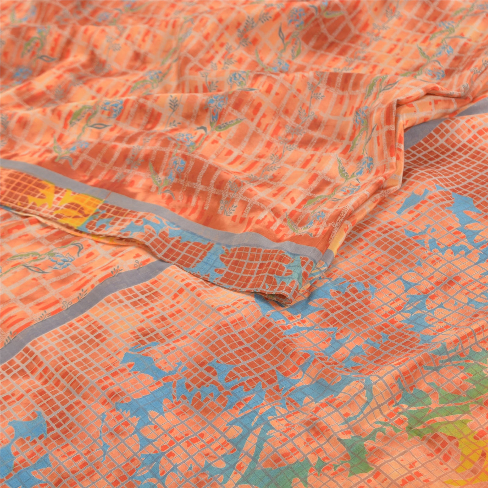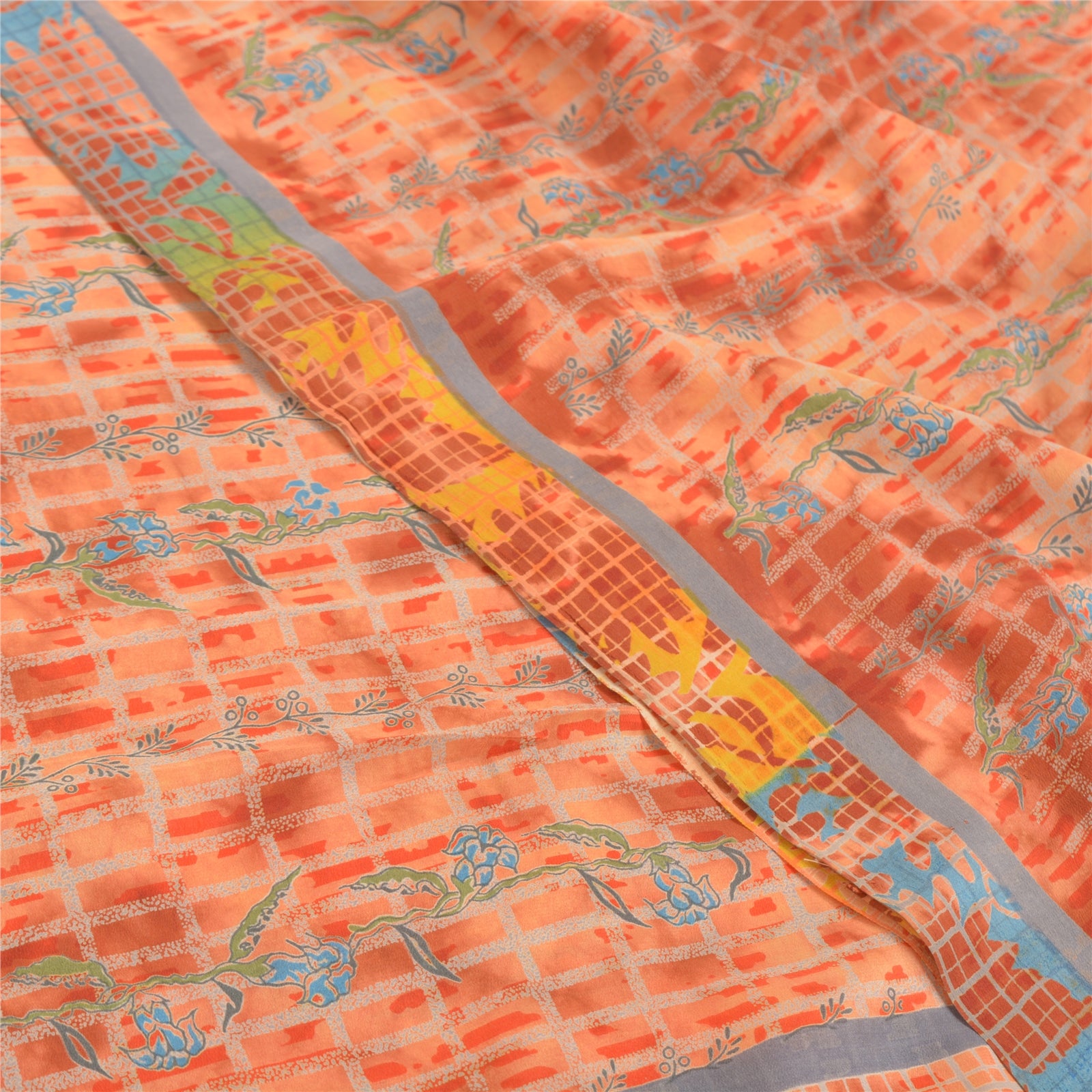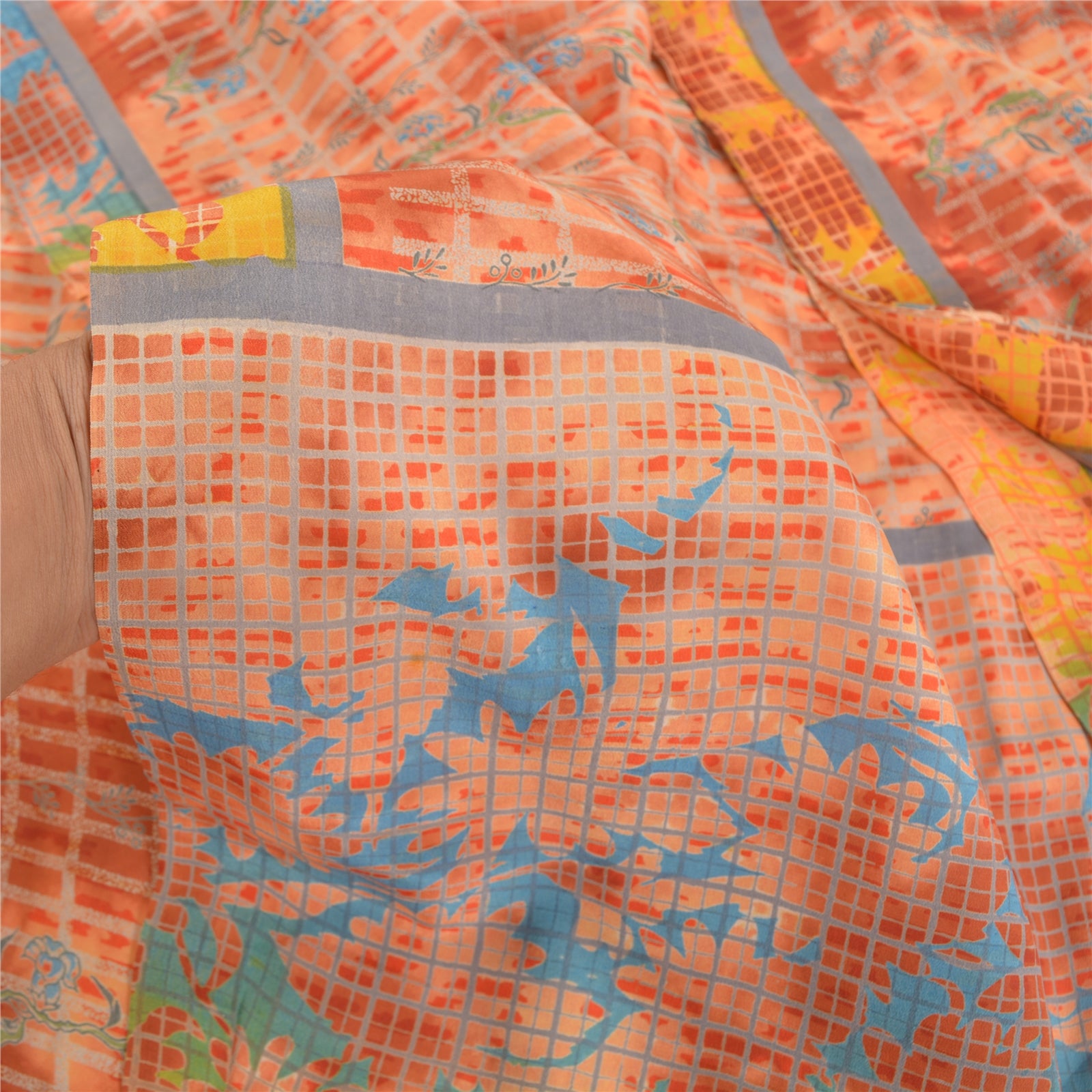 Sanskriti Vintage Orange Sarees 100% Pure Crepe Silk Printed Sari Craft Sustainable Fabric