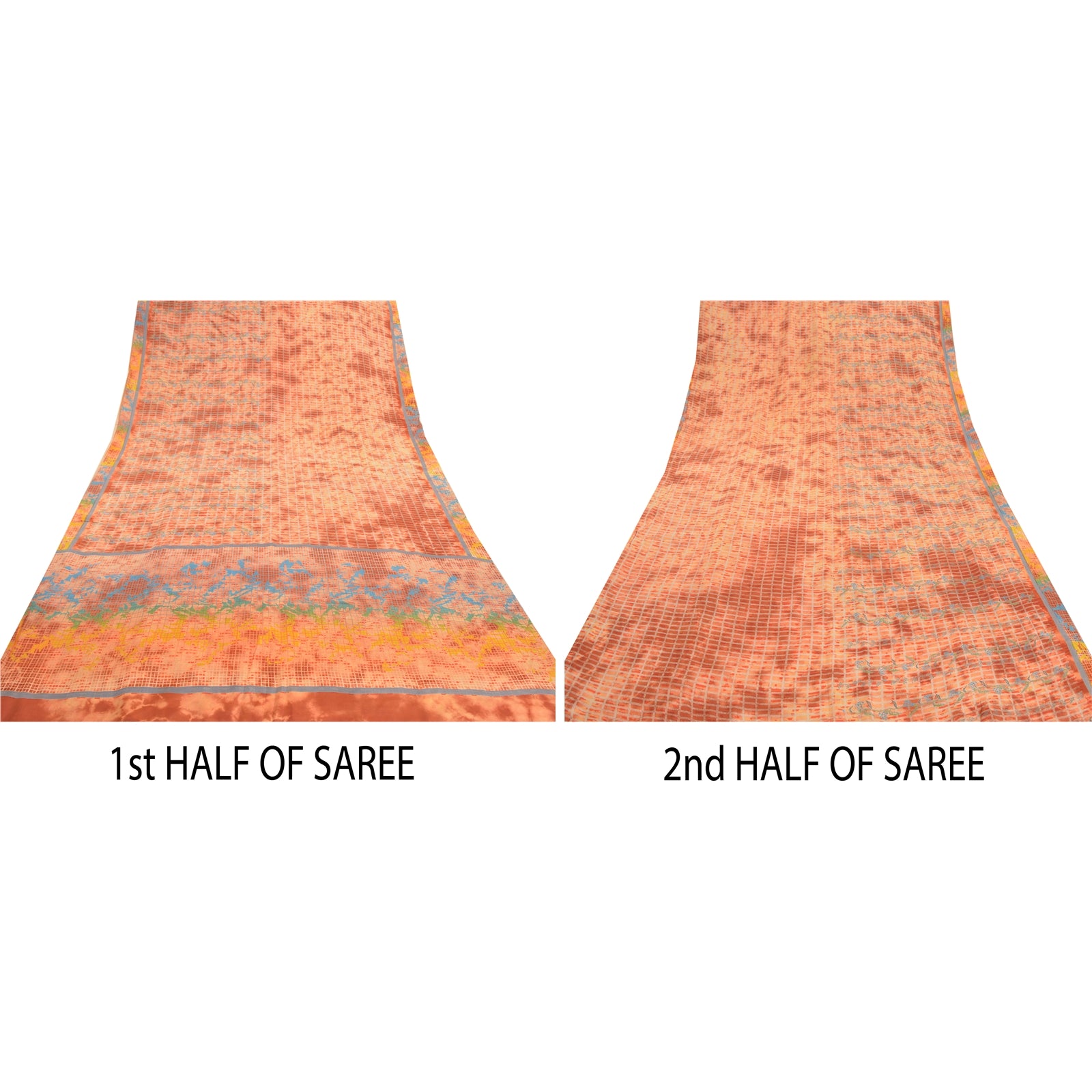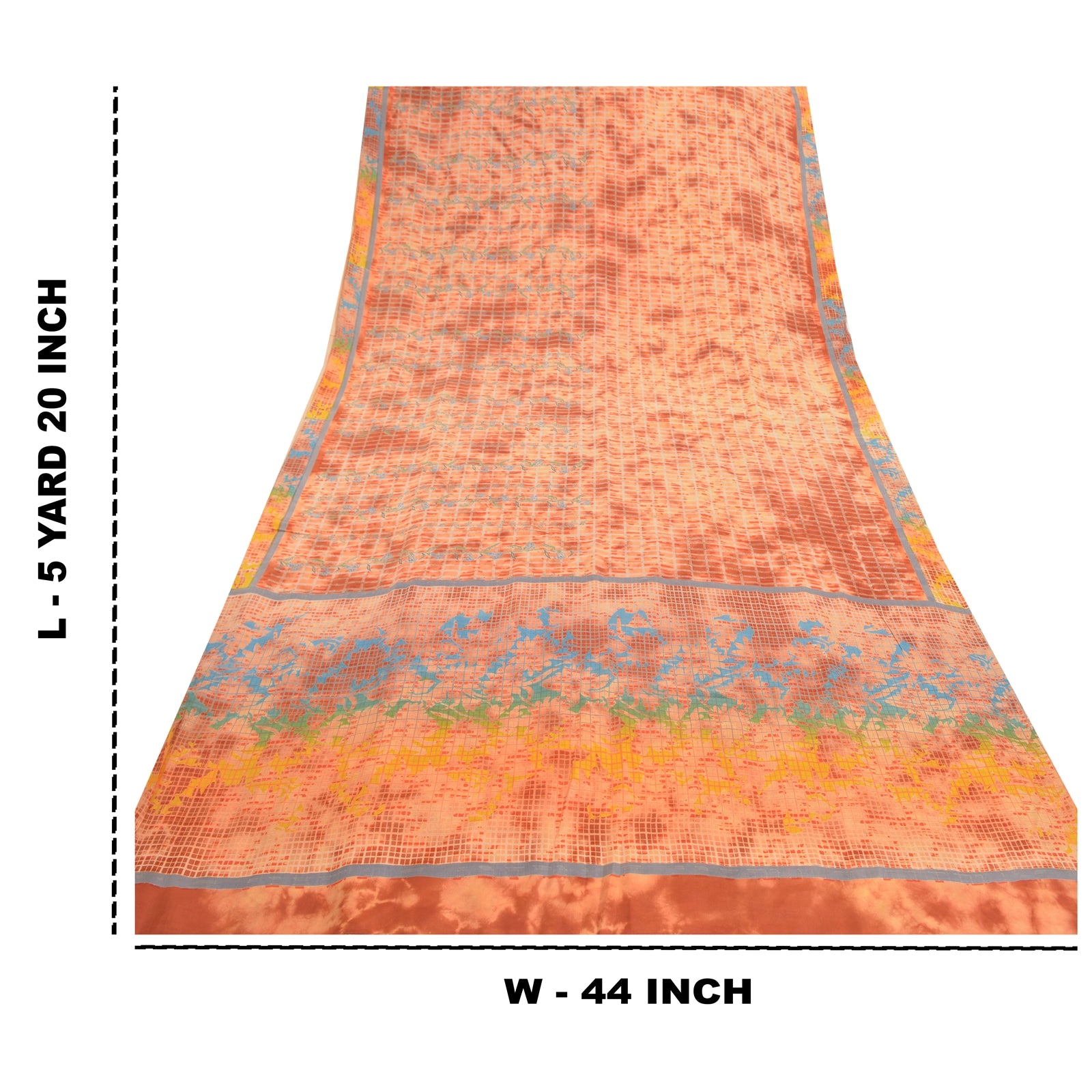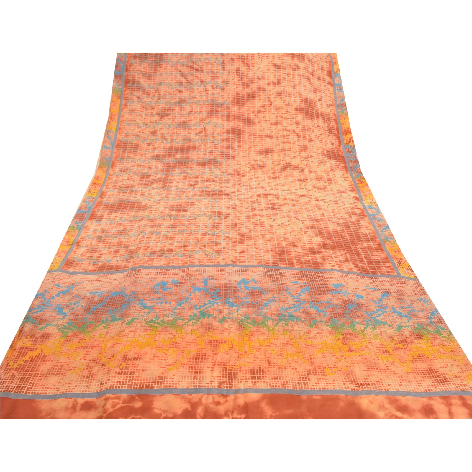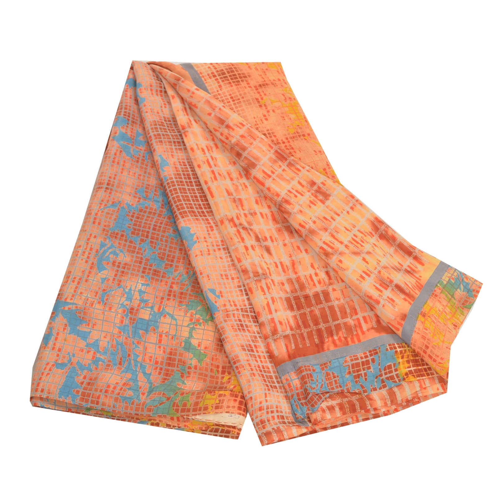 Sanskriti Vintage Orange Sarees 100% Pure Crepe Silk Printed Sari Craft Sustainable Fabric