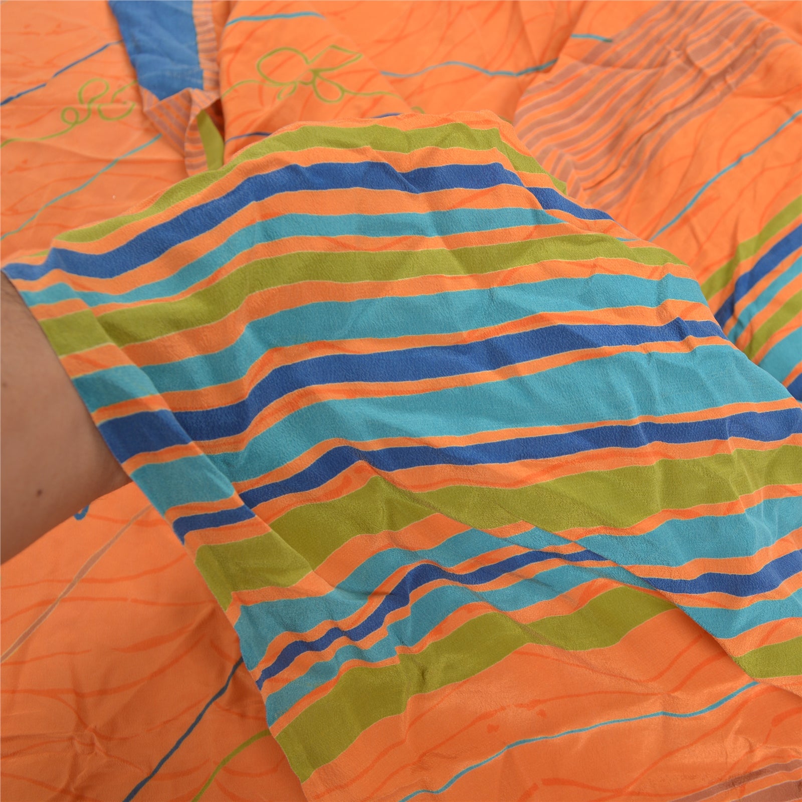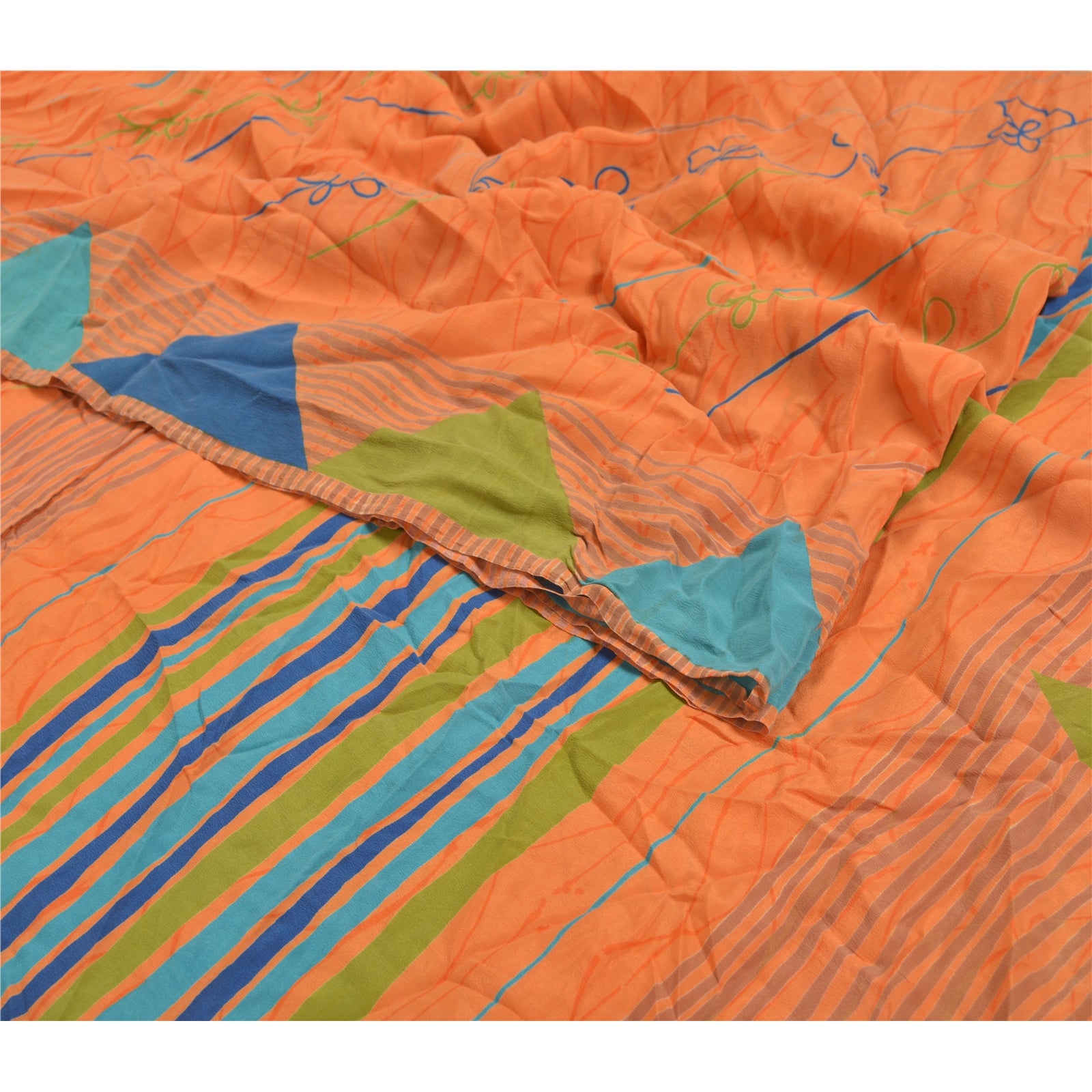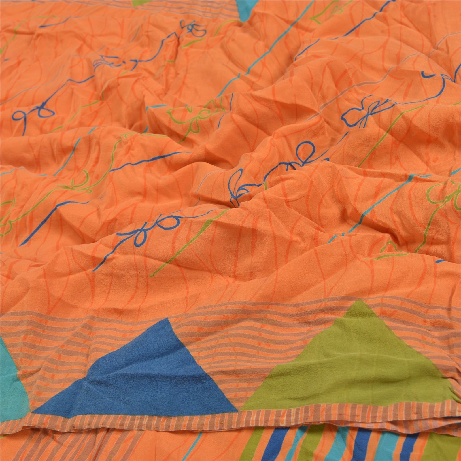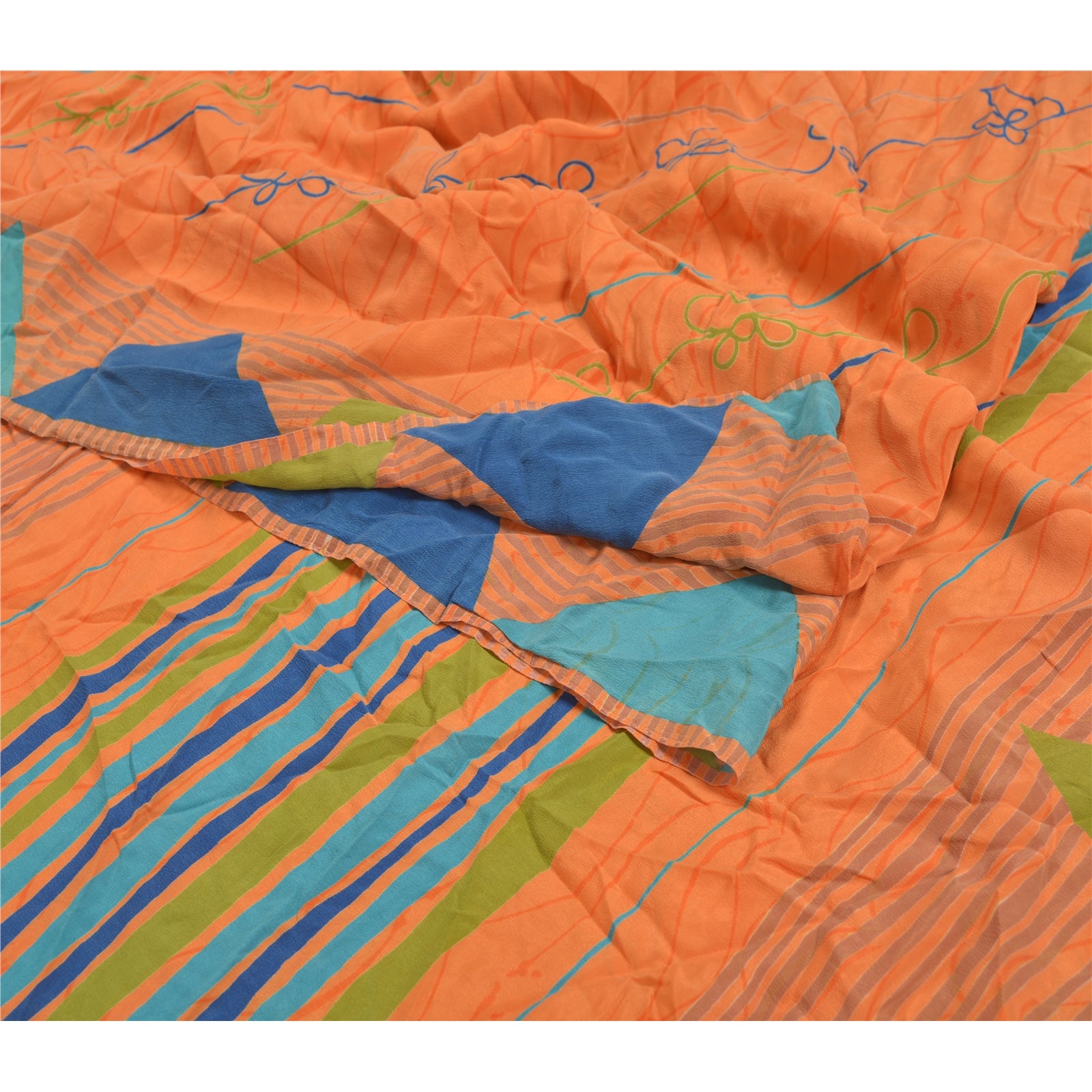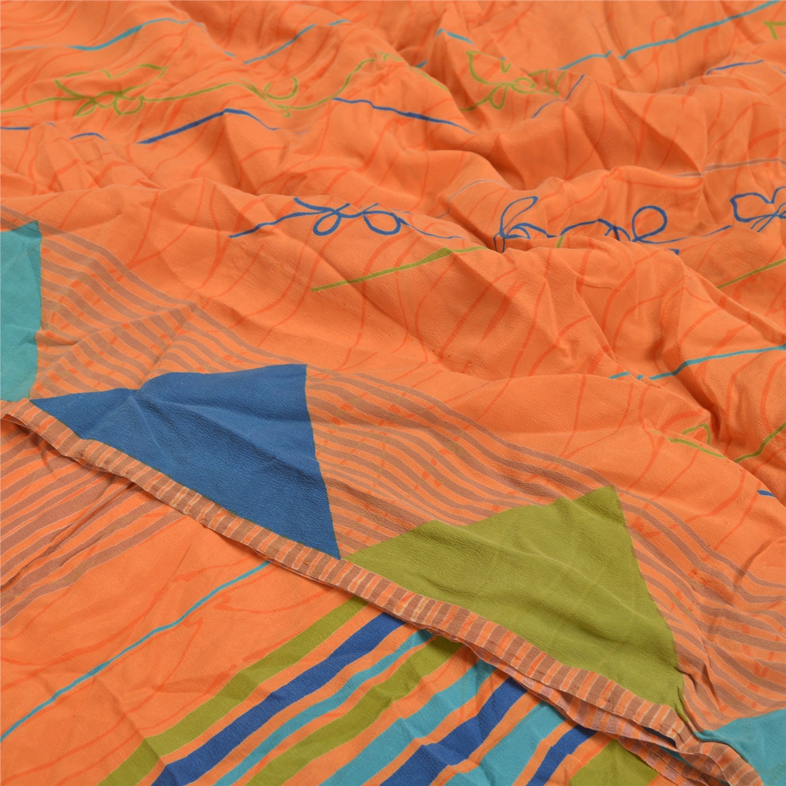 Sanskriti Vintage Orange Sarees Pure Crepe Silk Sustainable Fabric Craft Printed Soft Sari