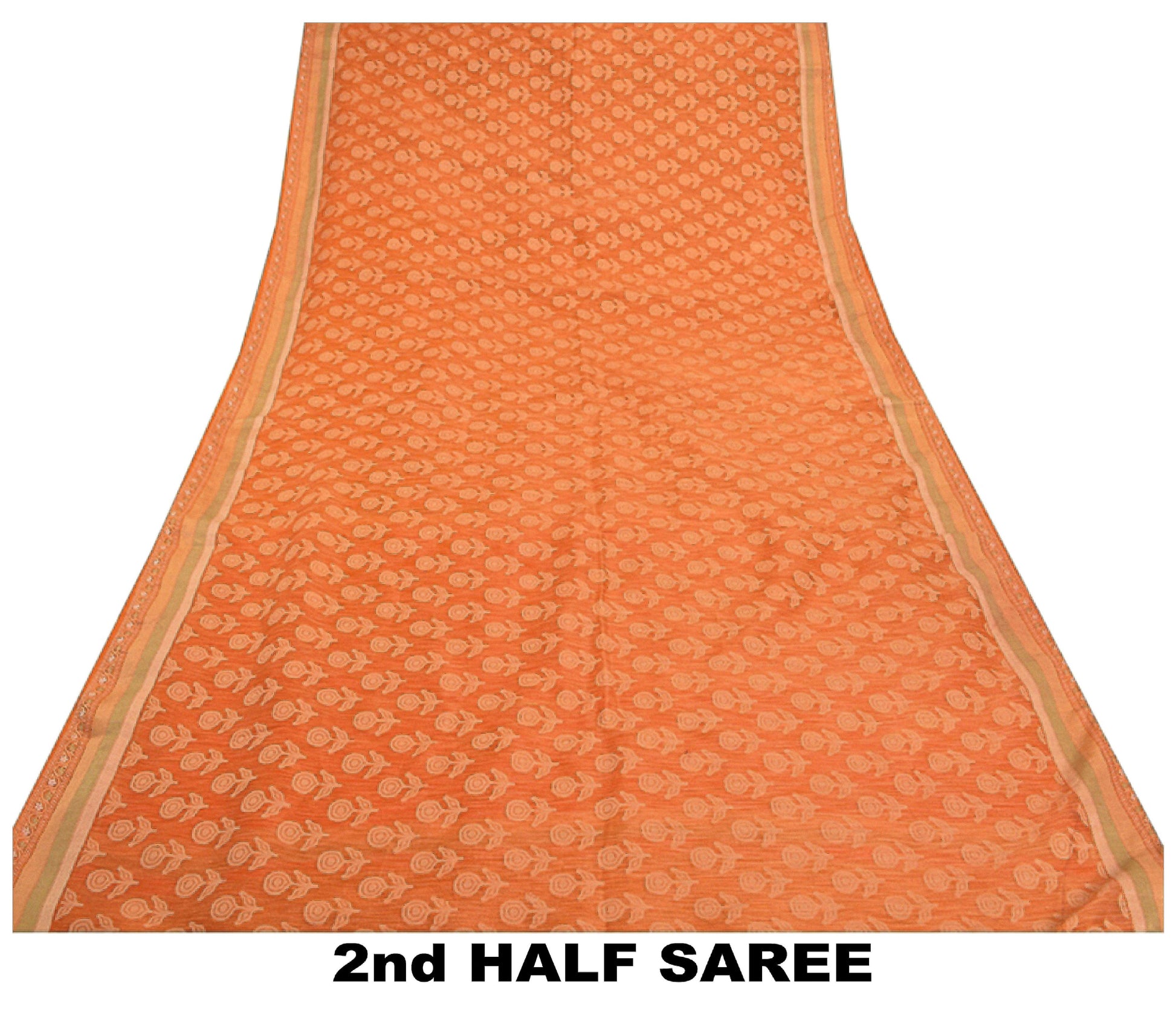 Sanskriti Vintage Orange Sarees Pure Silk Woven Premium Sari 5 Yard Sustainable Fabric