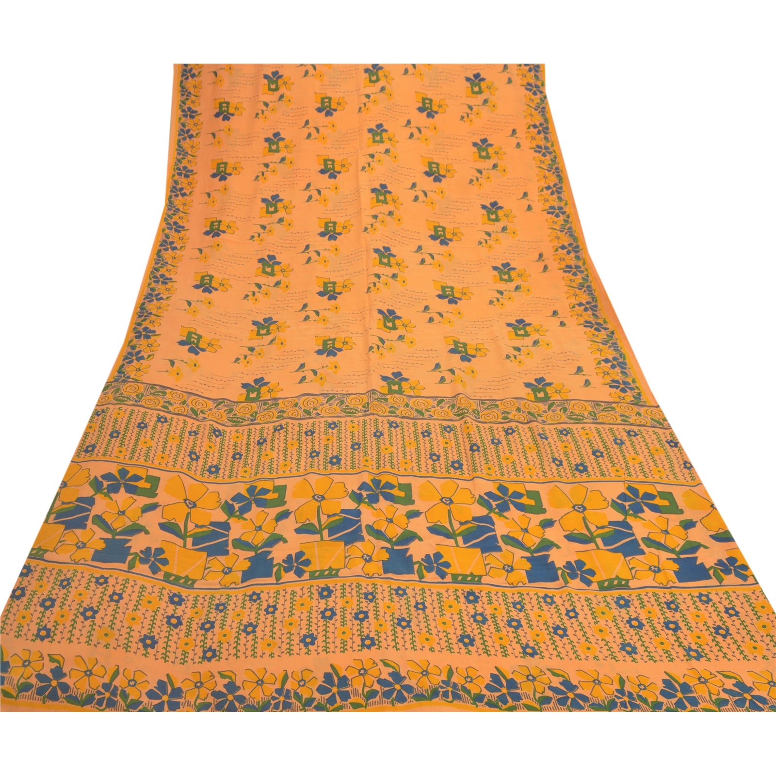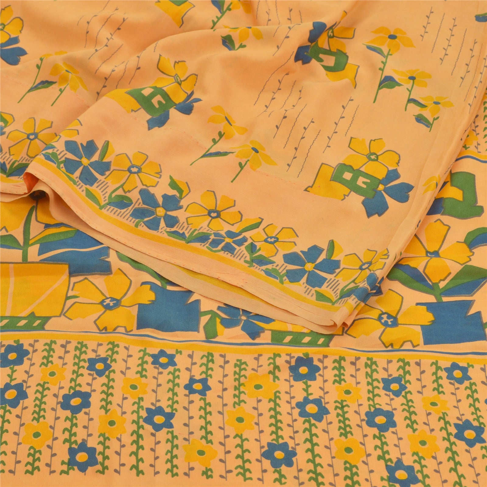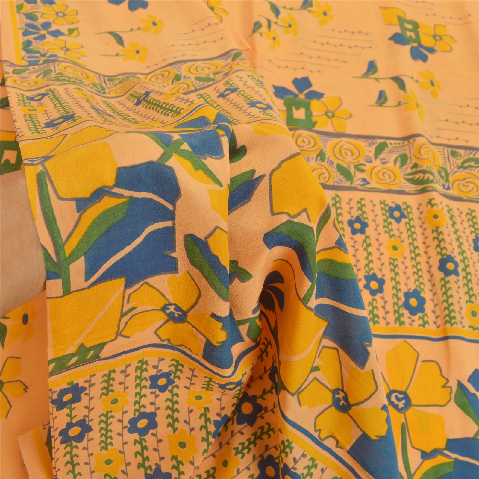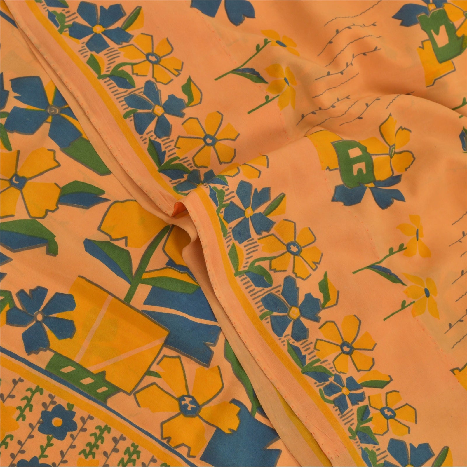 Sanskriti Vintage Peach Indian Sarees Pure Crepe Silk Printed Sari Craft Sustainable Fabric