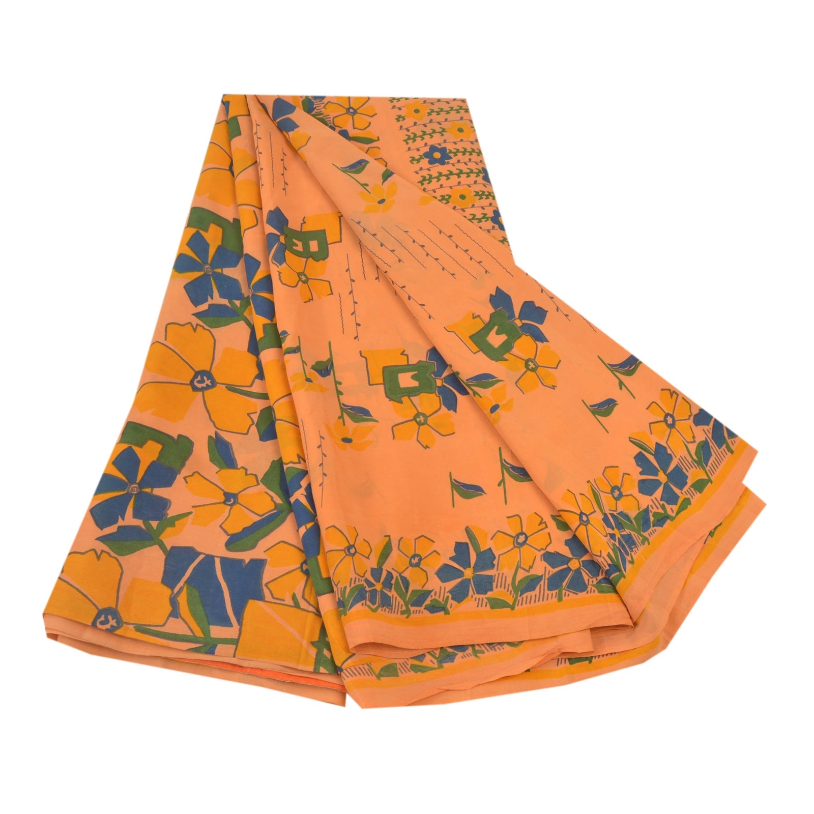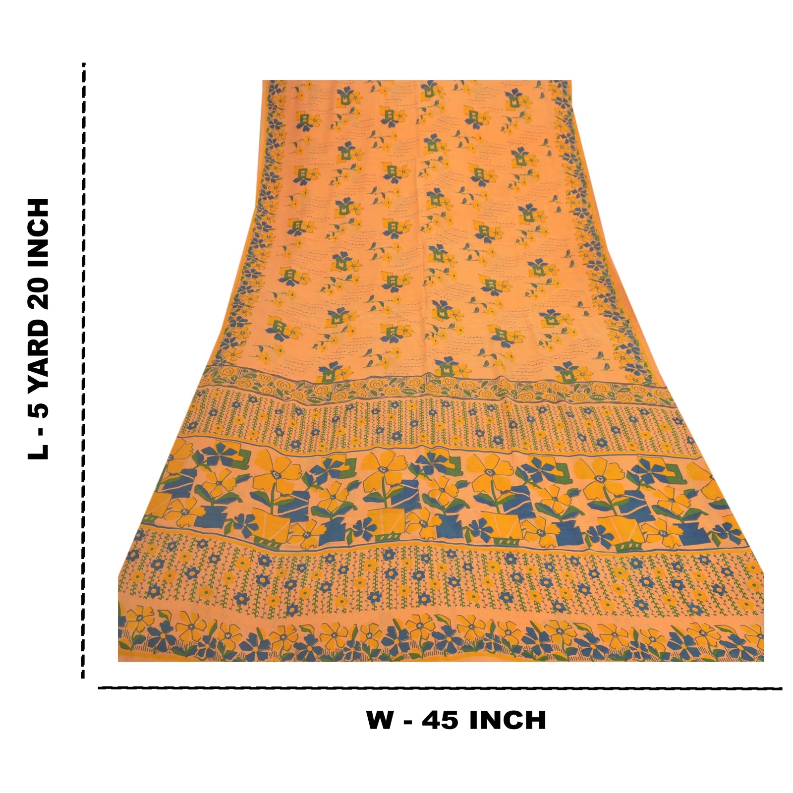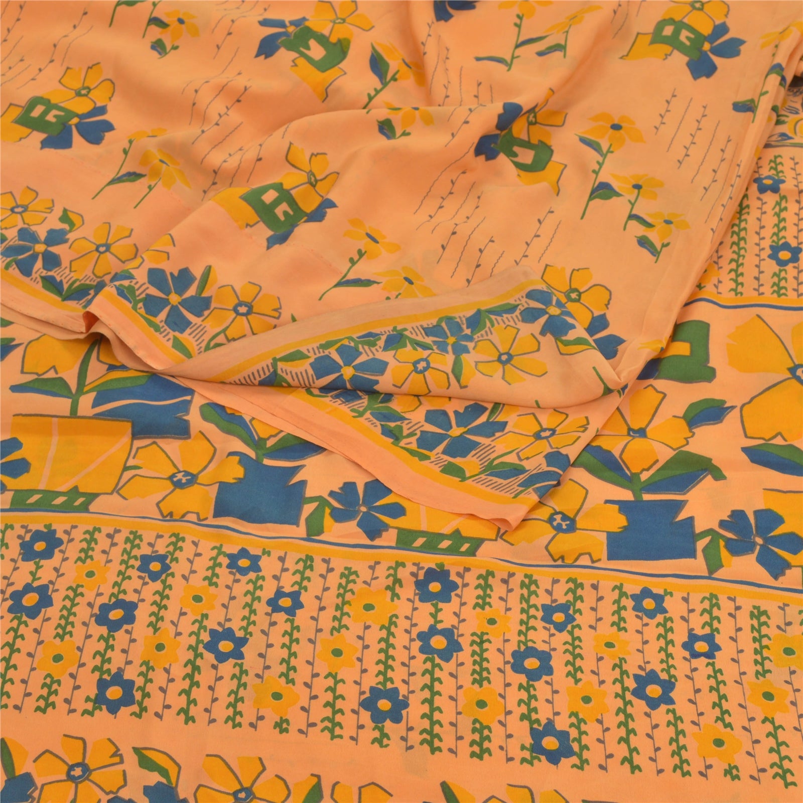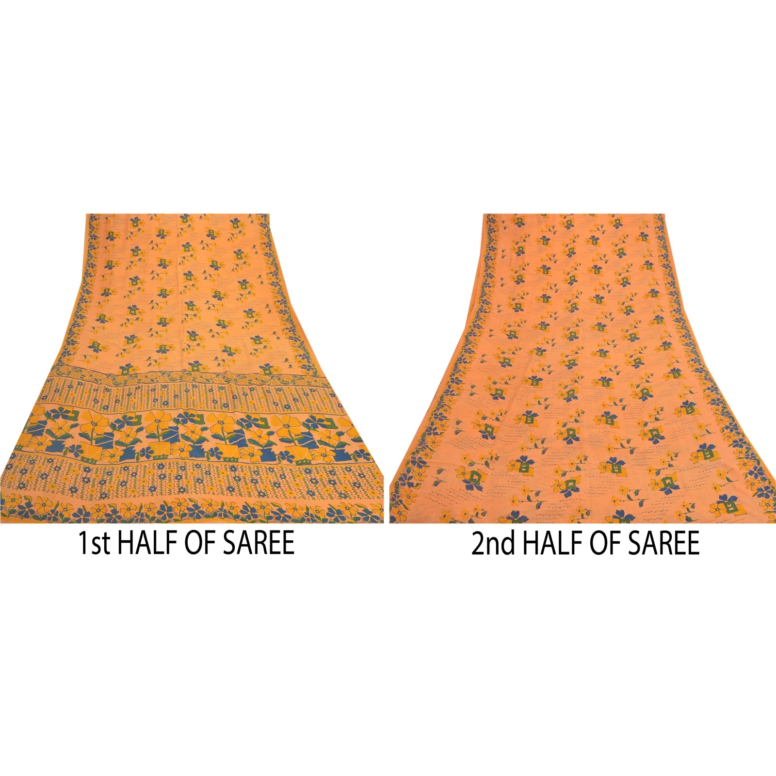 Sanskriti Vintage Peach Indian Sarees Pure Crepe Silk Printed Sari Craft Sustainable Fabric