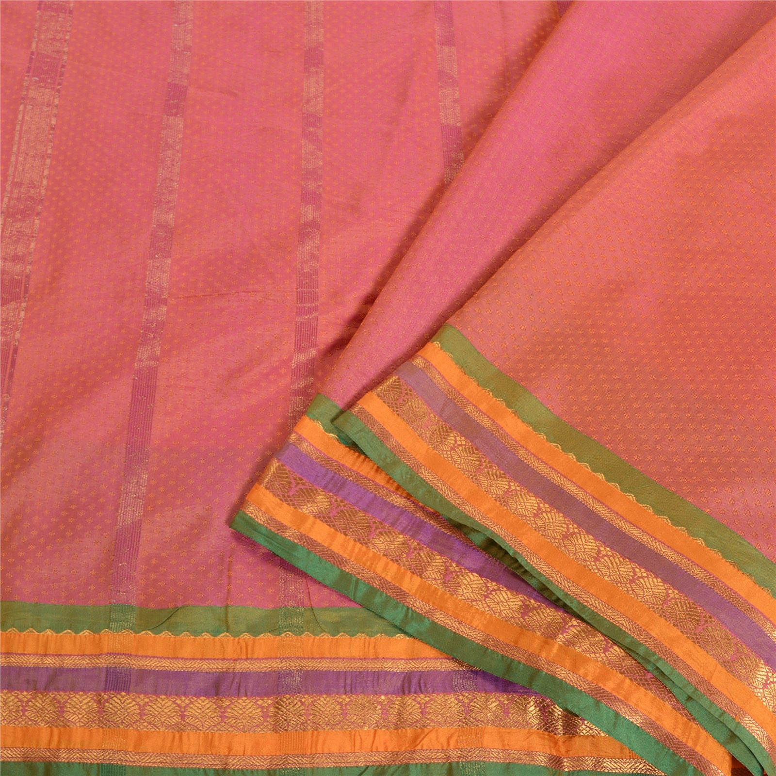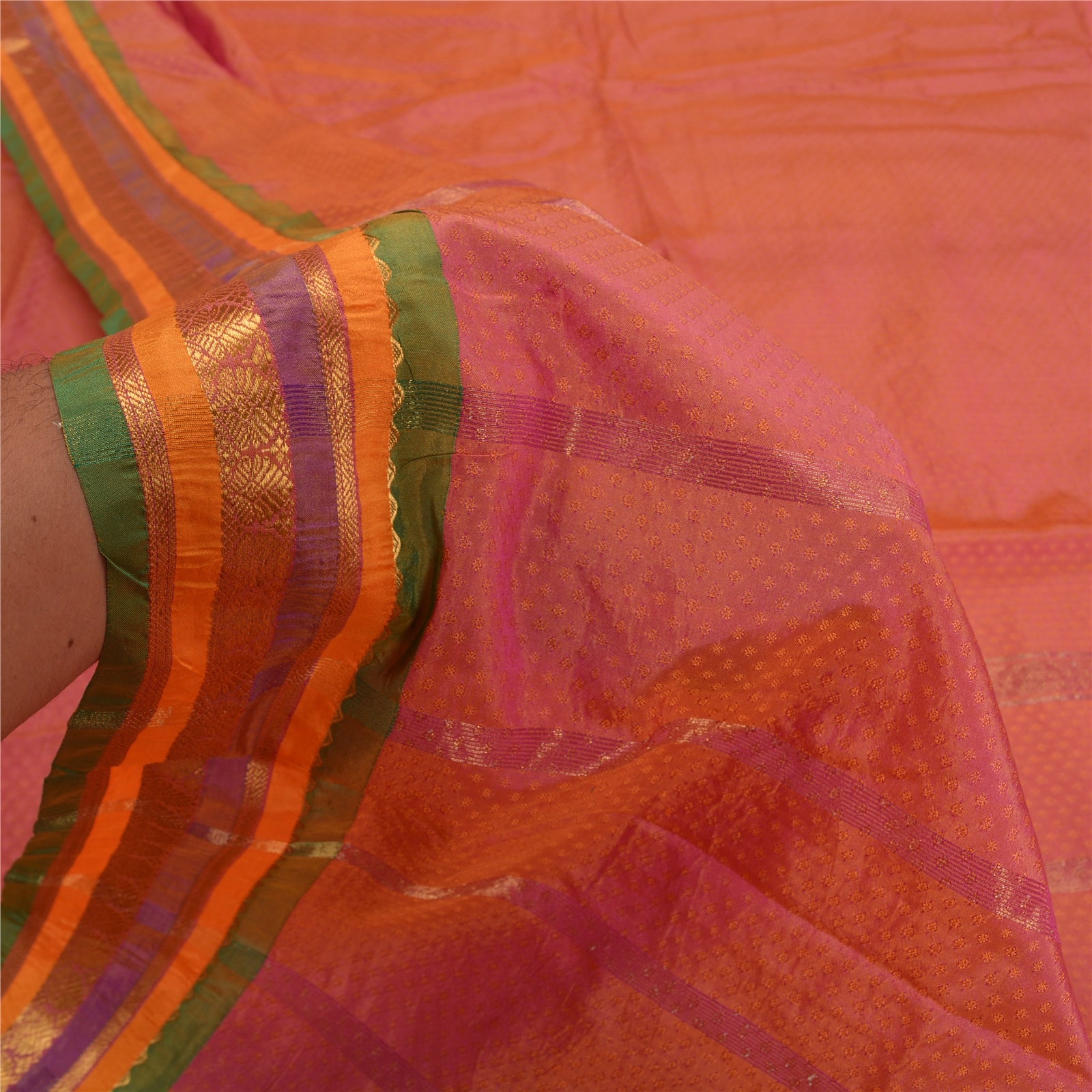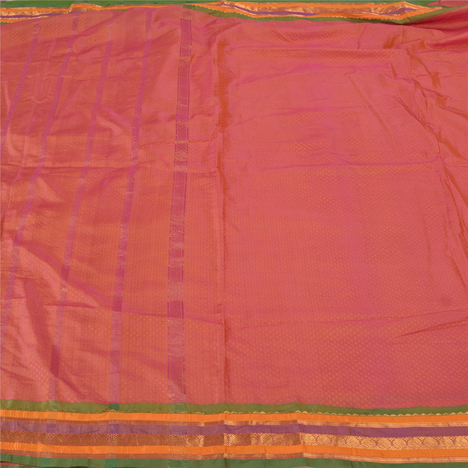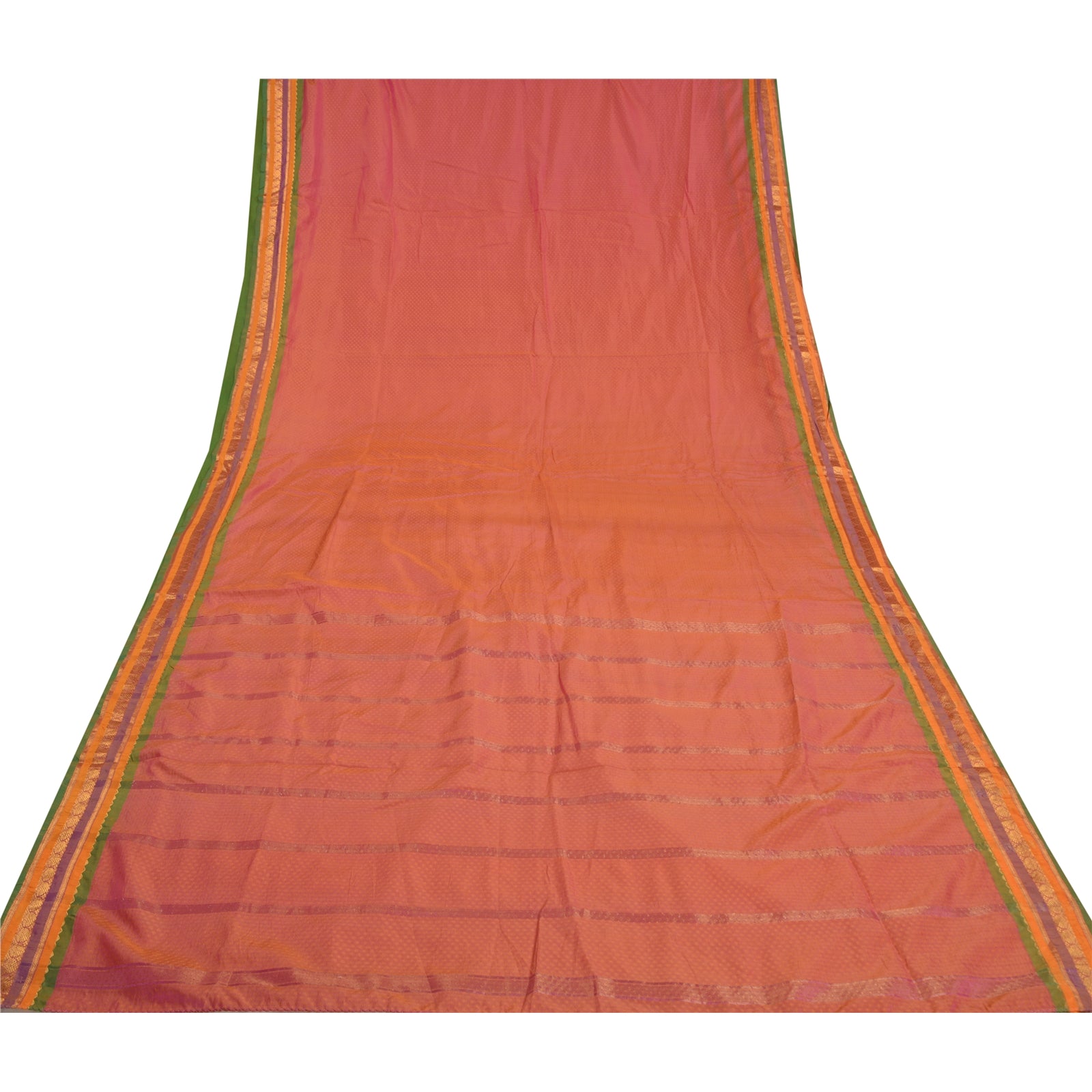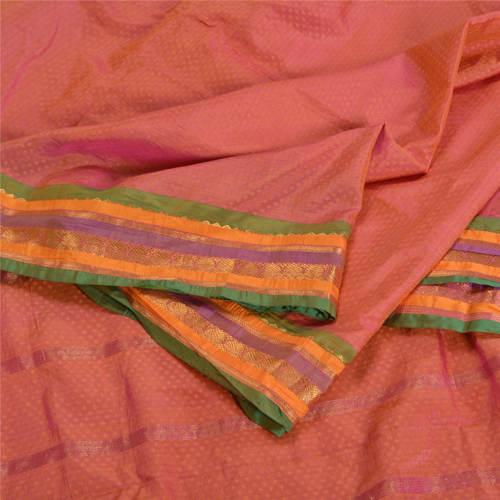 'THE ITEM COLOR OR SHADE MAY BE DARKER OR LIGHTER THAN THE PICTURE.' Beautiful pink colored art (artificial) silk woven sari. Pallu has pink/saffron woven thread work with floral design. Also you can see golden zari floral design on borders. The center of the saree has similar woven floral design. This saree can be used for various crafting ideas too. Use it for dress designing, as a throw, as window dressing, upholstery, table linen and much more. Let your creative juices flow. 'International buyers please note: Import duties, taxes, and charges are not included in the item price or postage cost. These charges are the buyer's responsibility. Please check with your country's customs office to determine what these additional costs will be prior to bidding or buying. Buyer will pay custom duty/tax. It is calculated and charged differently by every country. As a seller I do not have any control over it. VAT or sales tax is calculated by the platform at the time of checkout. Customs charge is payable at the time of delivery.'