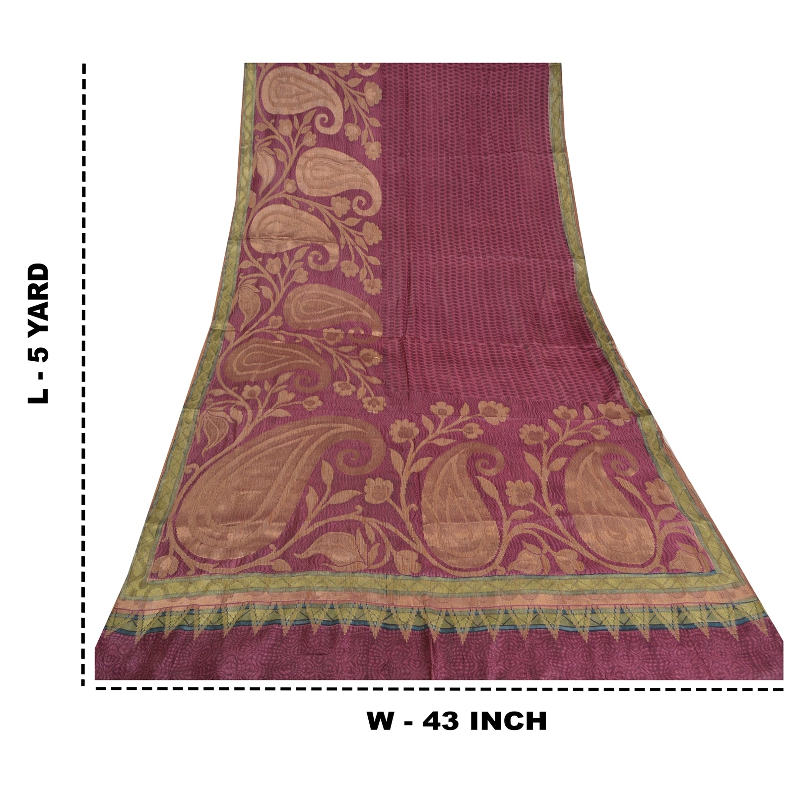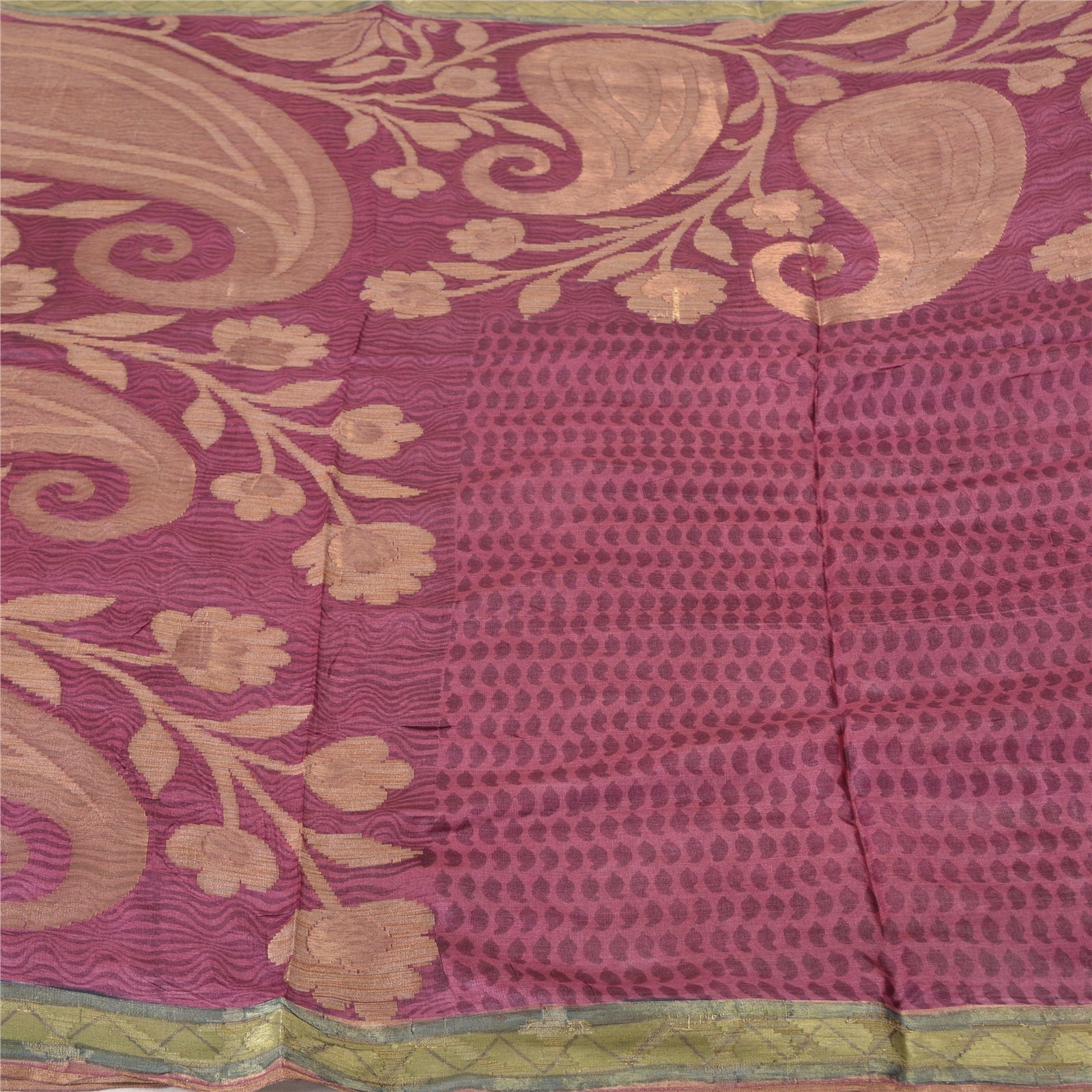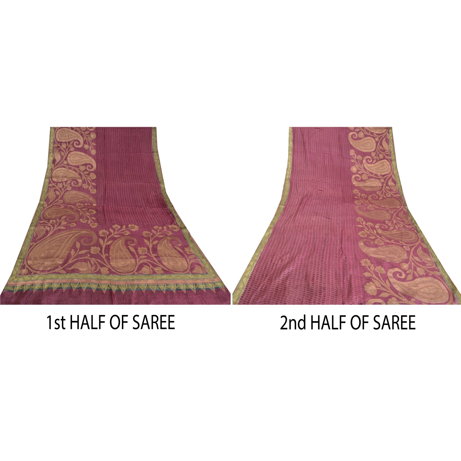 Sanskriti Vintage Purple Indian Sarees 100% Pure Silk Woven Sari 5 YD Sustainable Fabric