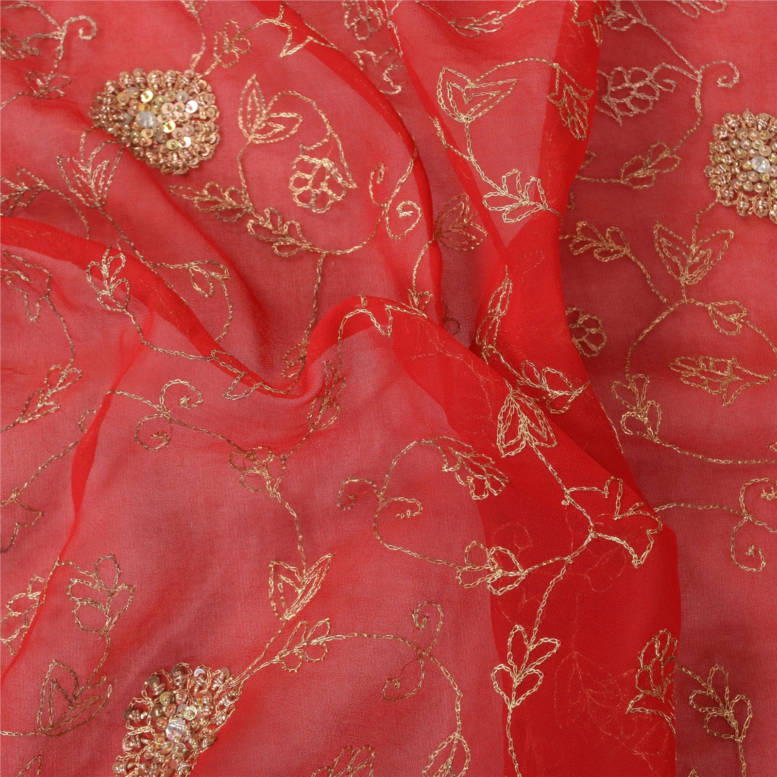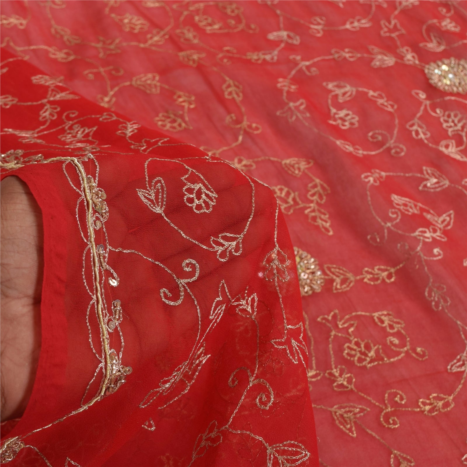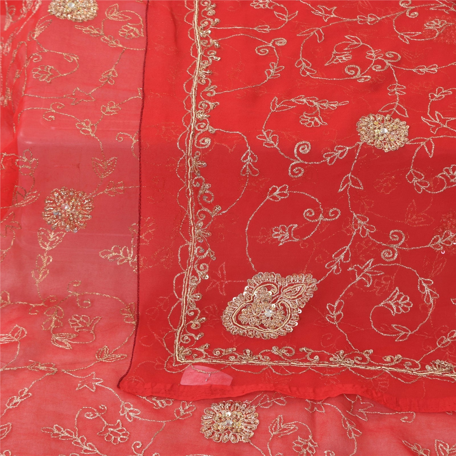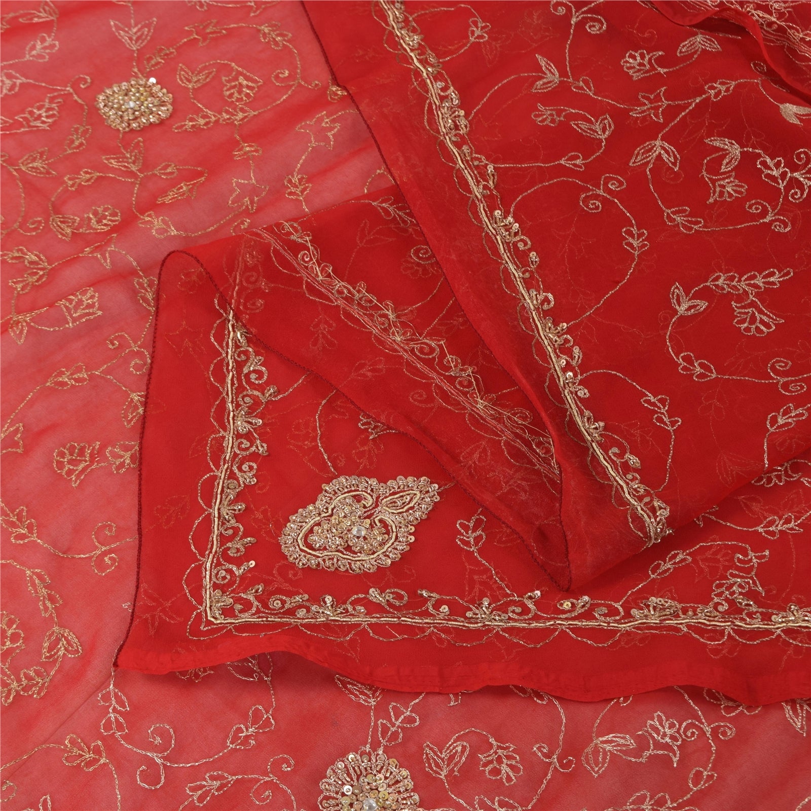 'THE ITEM COLOR OR SHADE MAY BE DARKER OR LIGHTER THAN THE PICTURE.' Beautiful Red colored pure georgette hand embroidered long scarf/dupatta. Center portion of the dupatta has floral design with zari work. Border has floral design embellished with golden zari/zardozi/dabka work, golden sequins work is really enhancing beauty of the dupatta/stole. This dupatta/stole can be used for various crafting ideas too. Use it for dress designing, as a throw, as window dressing, upholstery, table linen and much more. Let your creative juices flow. Shipping note: International buyers please note: Import duties, taxes, and charges are not included in the item price or postage cost. These charges are the buyer's responsibility. Please check with your country's customs office to determine what these additional costs will be prior to bidding or buying. Buyer will pay custom duty/tax. It is calculated and charged differently by every country. As a seller I do not have any control over it. VAT or sales tax is calculated by the platform at the time of checkout. Customs charge is payable at the time of delivery.' SKU: DC-55089