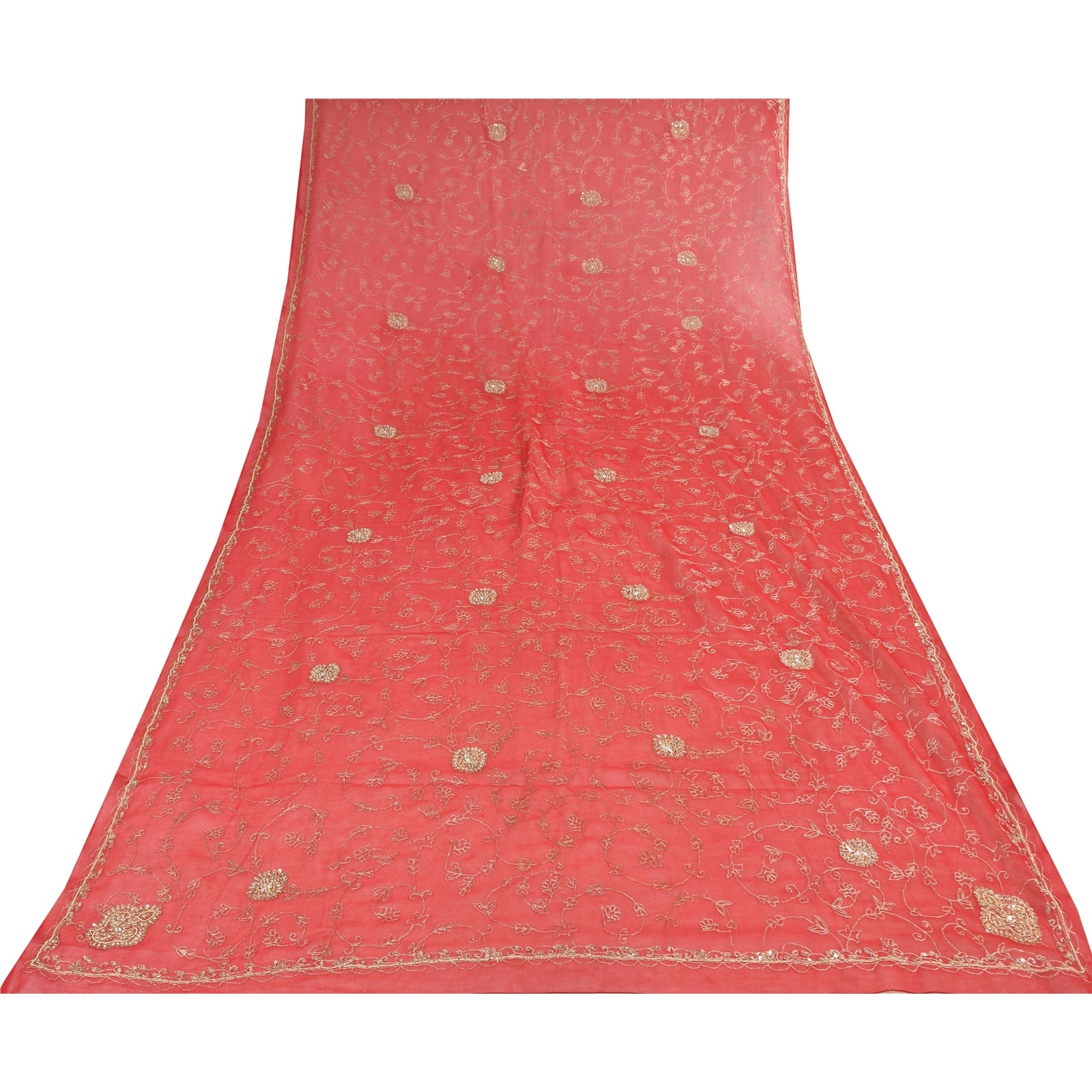 Sanskriti Vintage Red Dupatta Long Stole Pure Georgette Hand Beaded Wrap Scarves