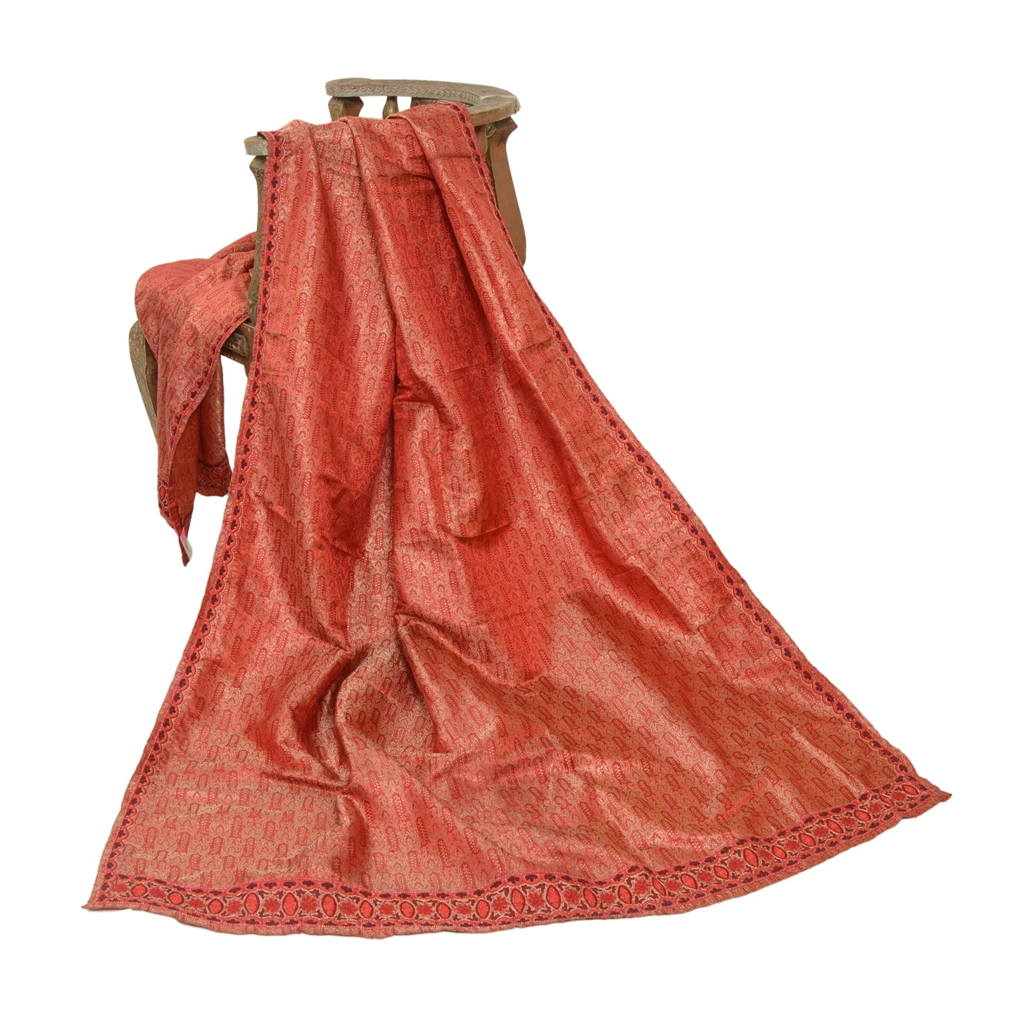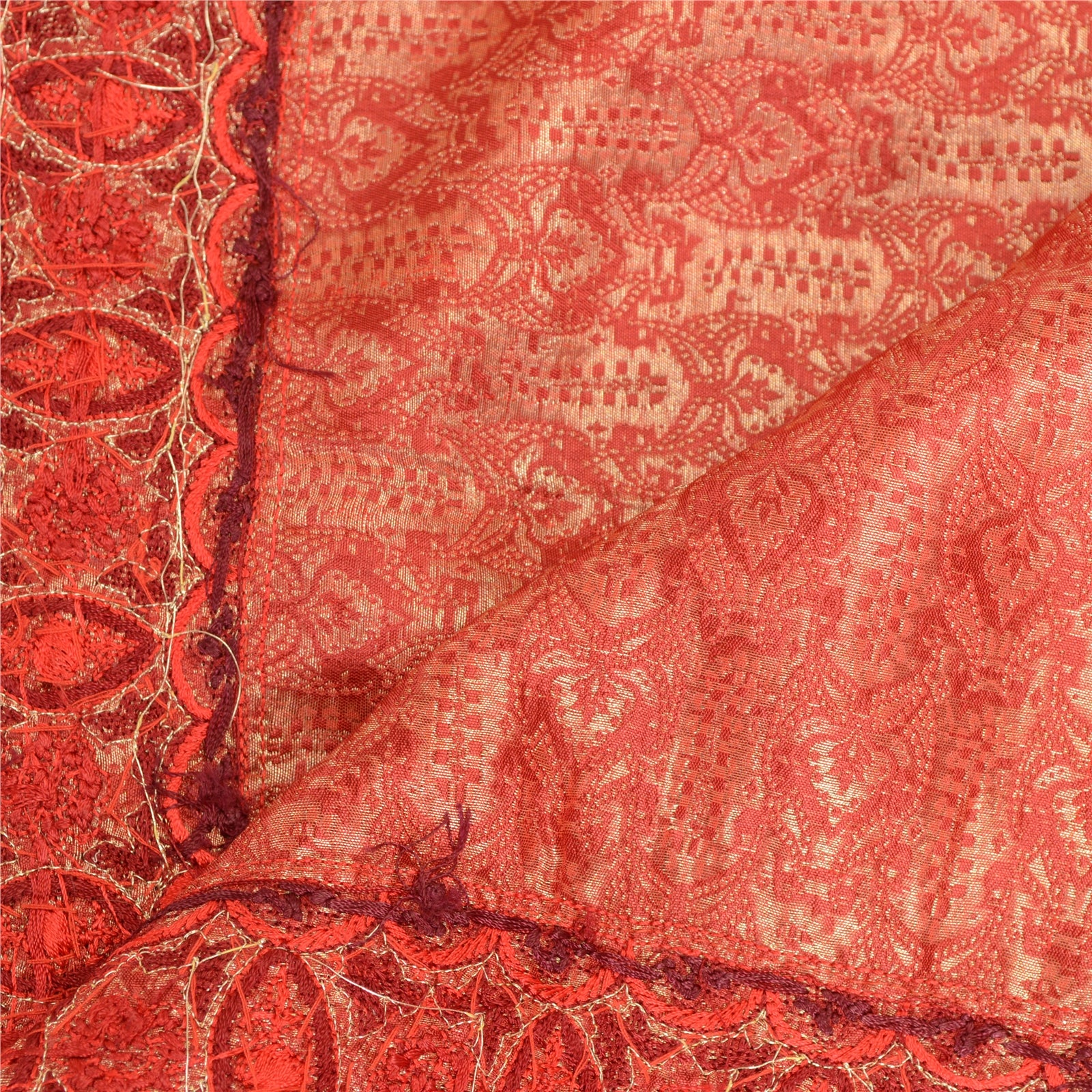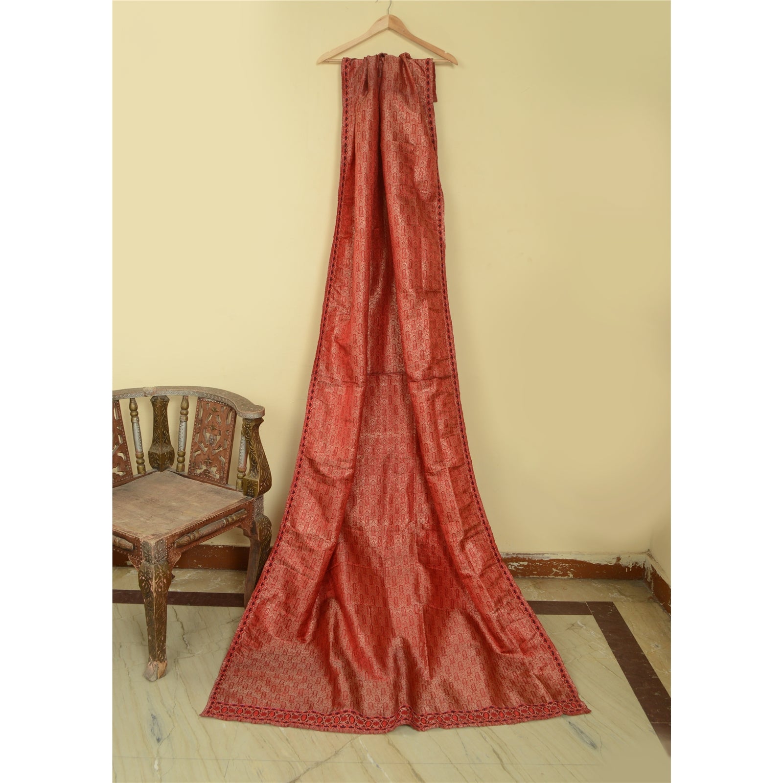 Sanskriti Vintage Red Dupatta Pure Silk Stole Hand Beaded Woven Brocade Veil