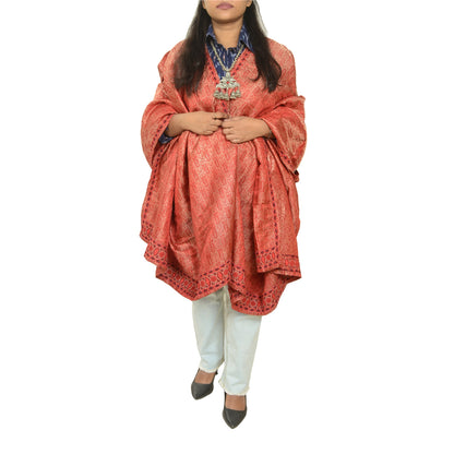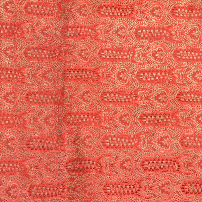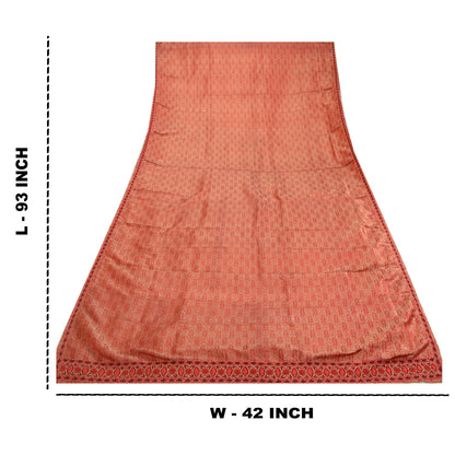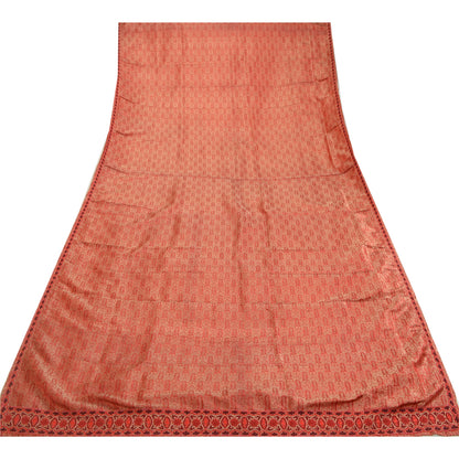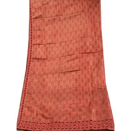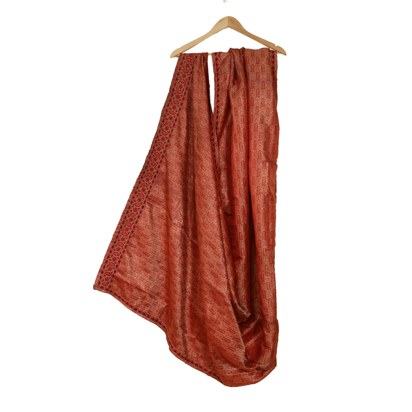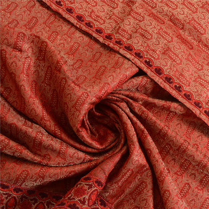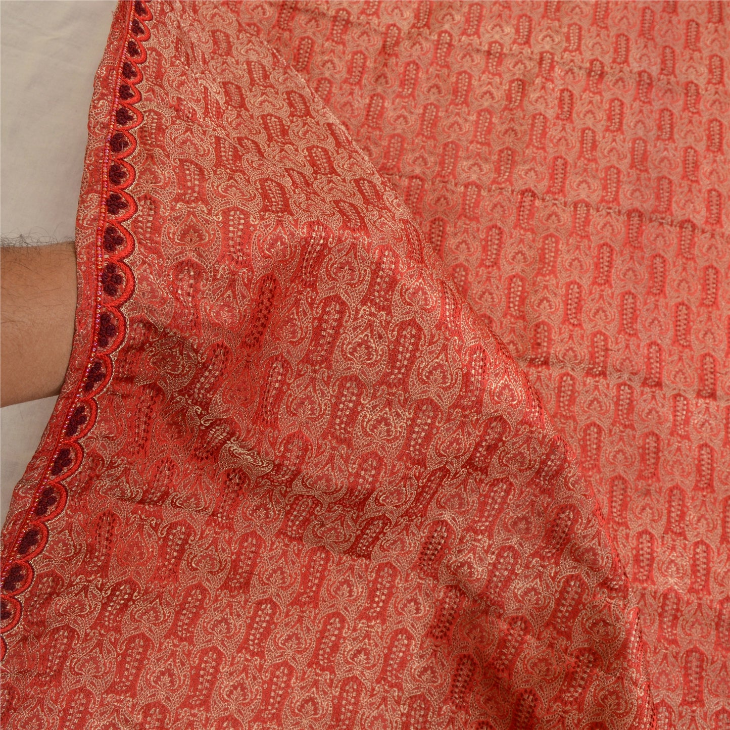 Sanskriti Vintage Red Dupatta Pure Silk Stole Hand Beaded Woven Brocade Veil