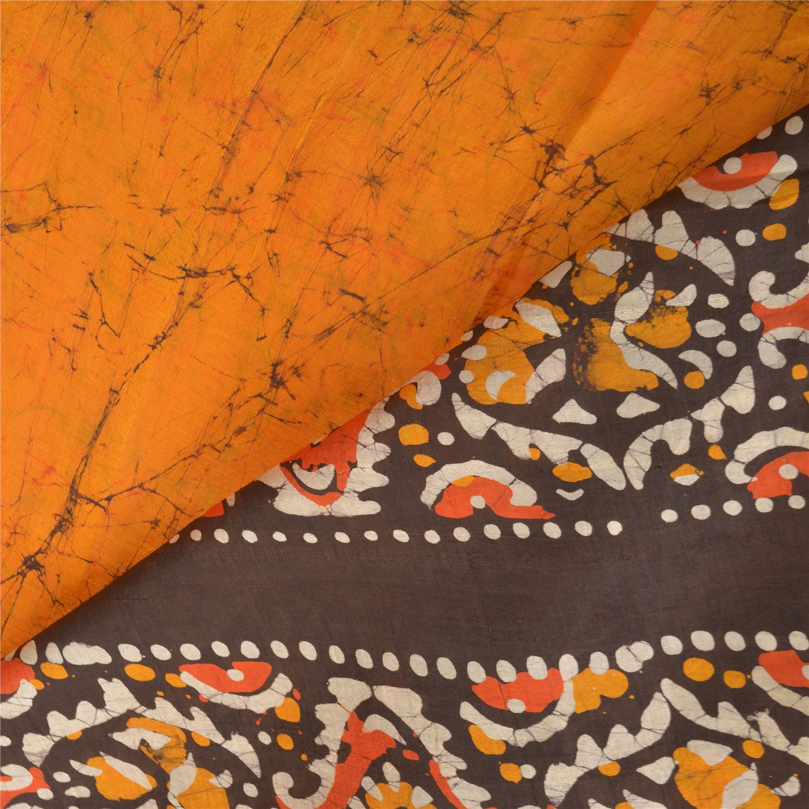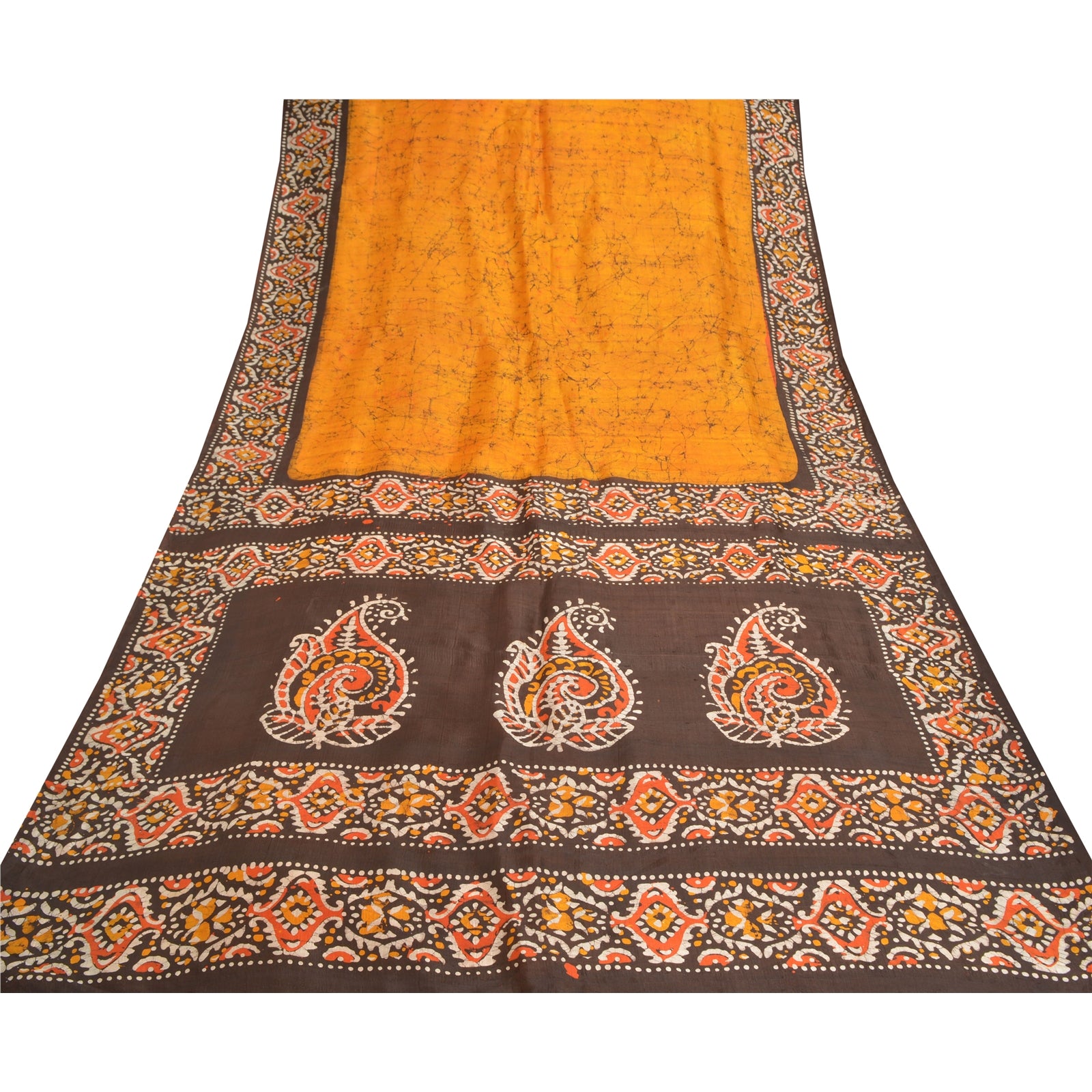 Sanskriti Vintage Saffron Heavy Sarees Pure Silk Batik Work 5 Yard Sari Sustainable Fabric