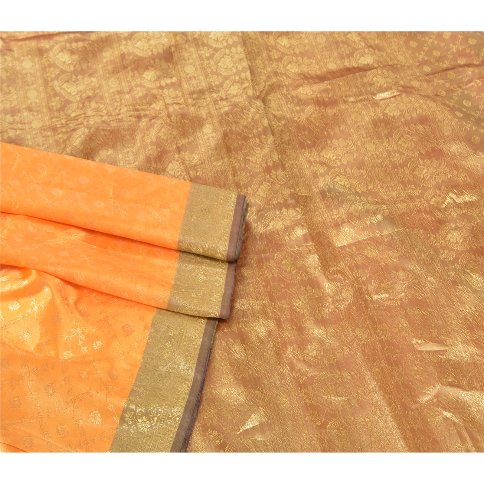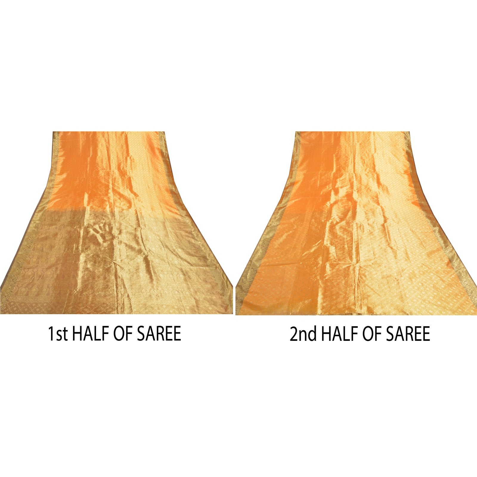 Sanskriti Vintage Saffron Sarees Art Silk Woven Kanjivaram Sari Zari Sustainable Fabric