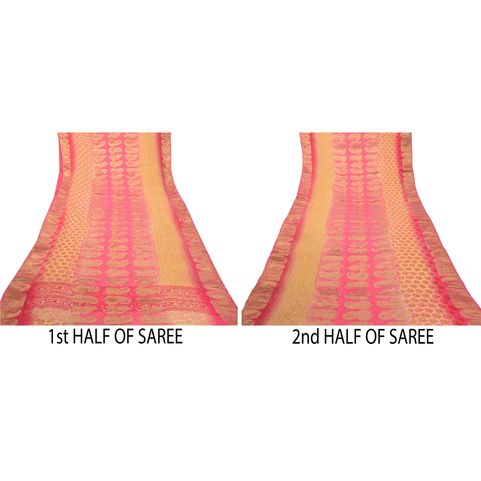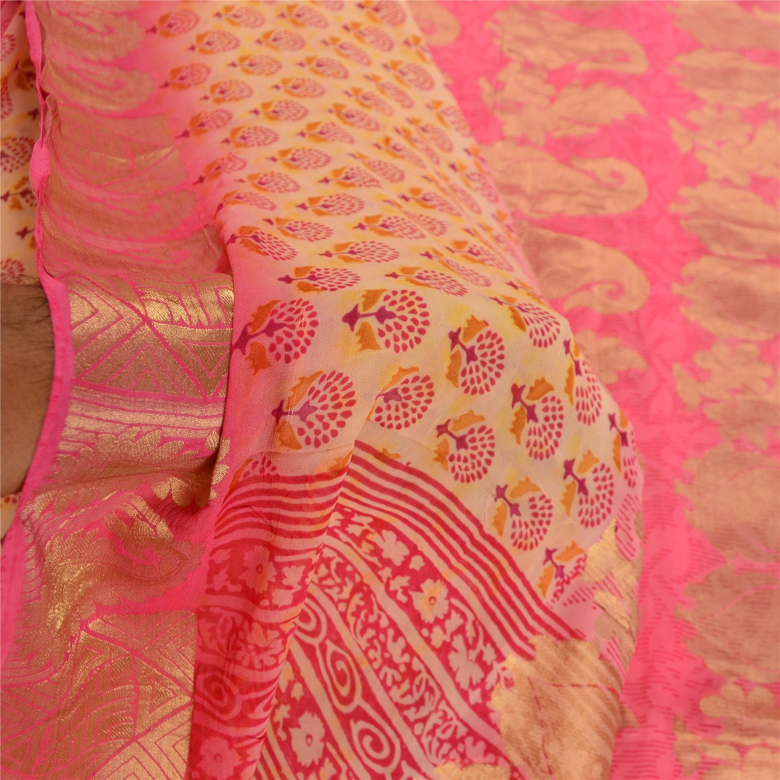 Sanskriti Vintage Saree Pink Blend Georgette Printed Woven Sari 5yd Craft Sustainable Fabric