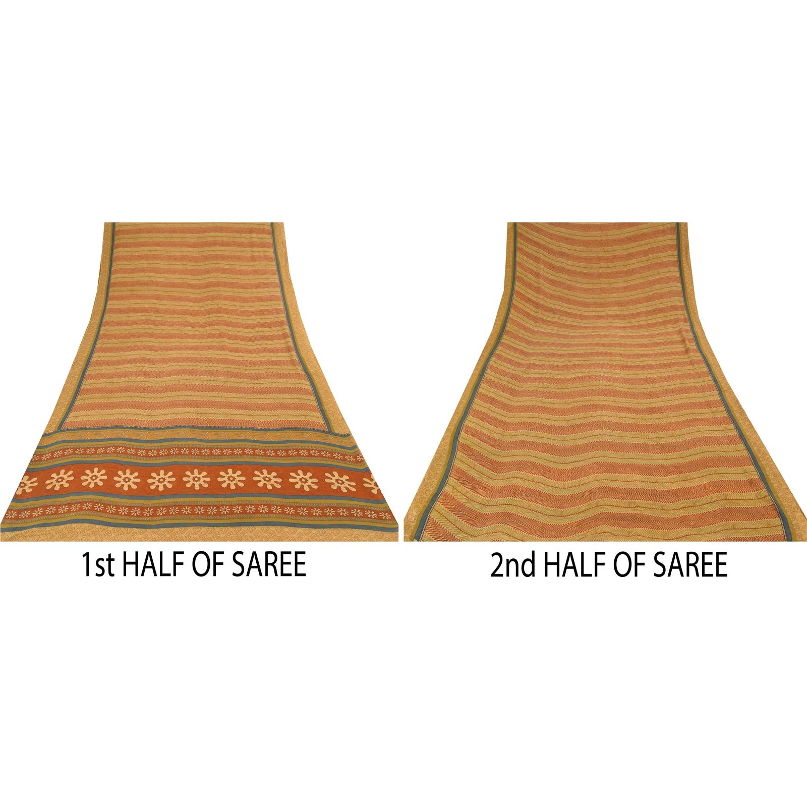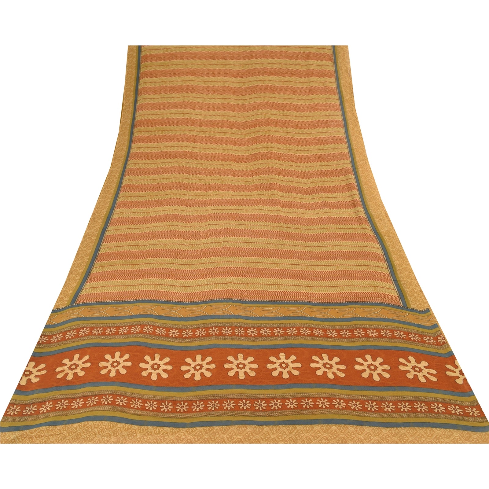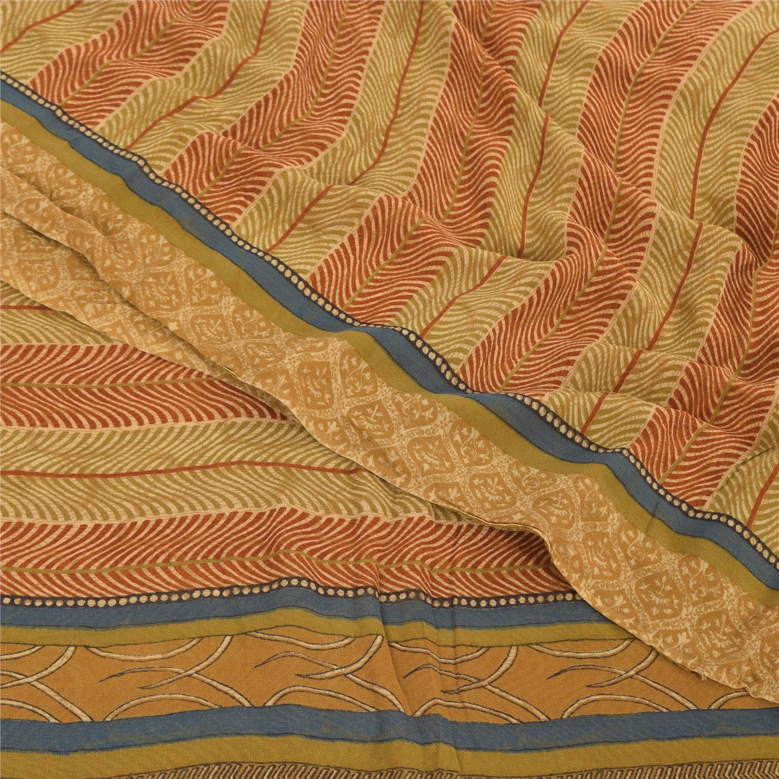 Sanskriti Vintage Sarees Beige/Red Pure Georgette Silk Printed Sari Craft Sustainable Fabric