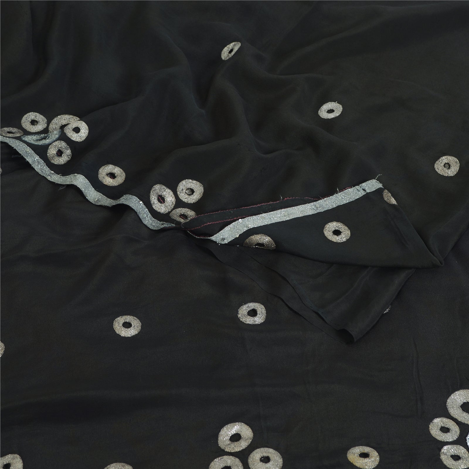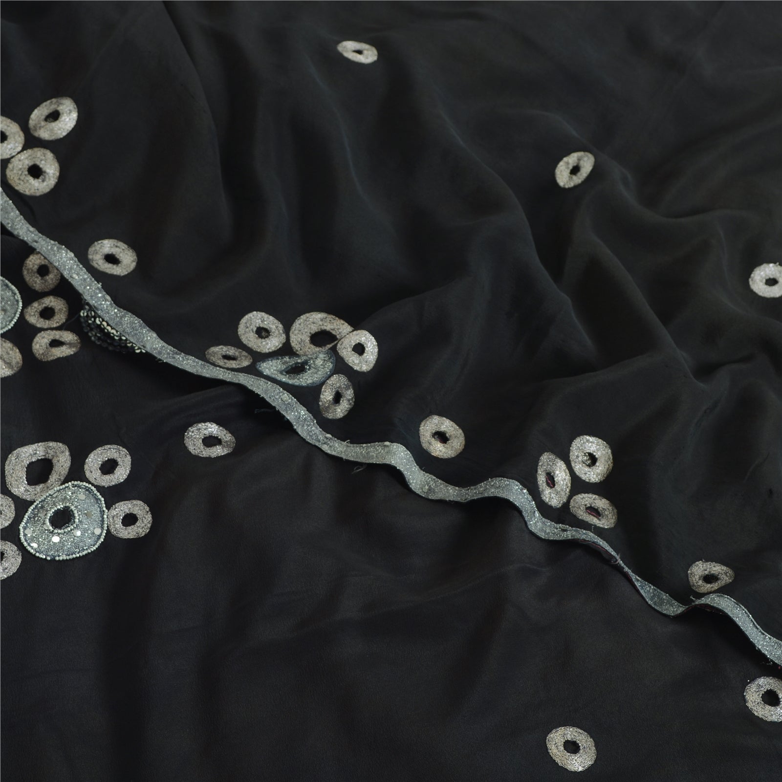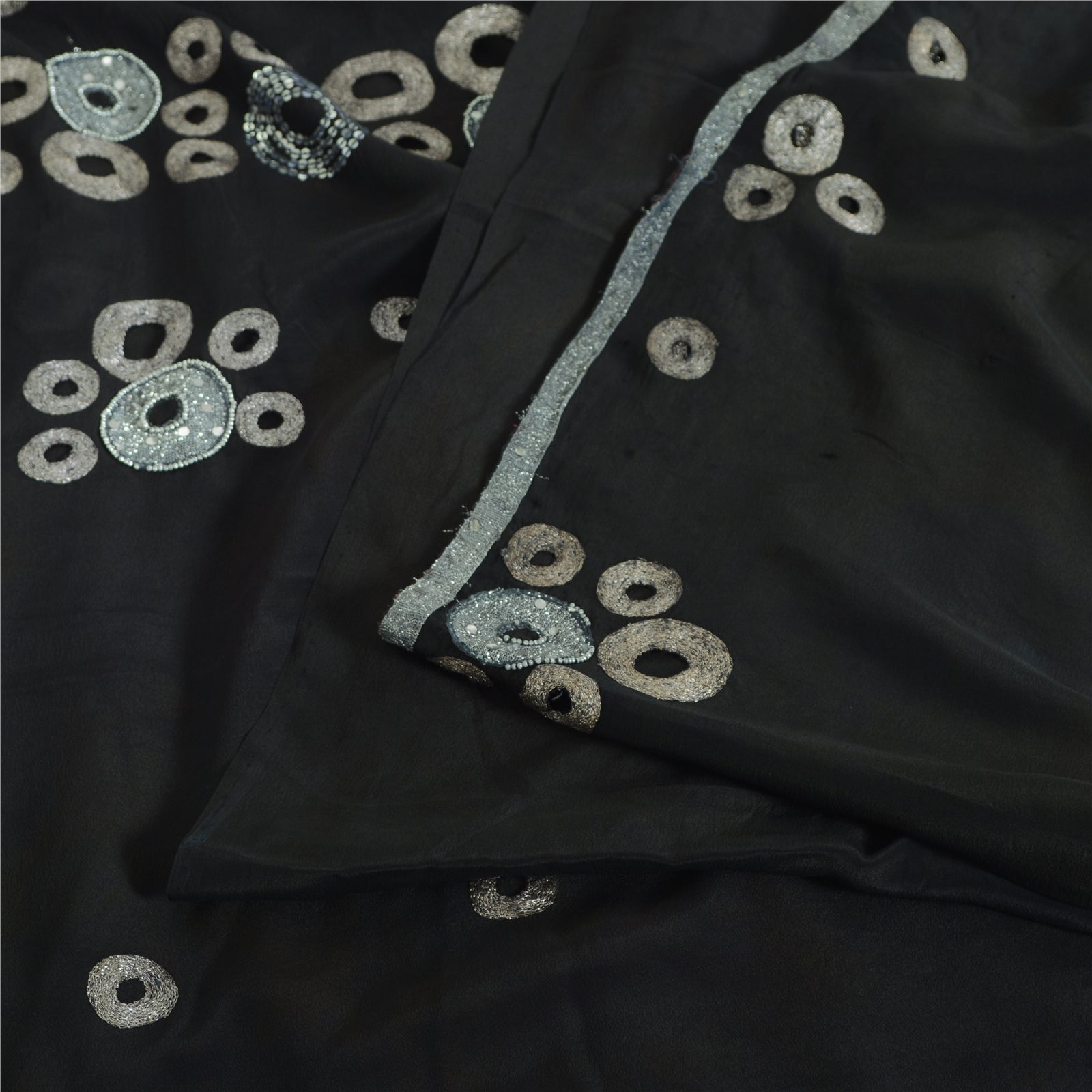 THE ITEM COLOR OR SHADE MAY BE DARKER OR LIGHTER THAN THE PICTURE.' • Beautiful black colored hand embroidered pure crepe silk saree . • Pallu & Border has circle design with silver thread, beads, sequins & cut work. • Similar work in center part of sari . This unique vintage saree can be used for various crafting ideas even if you don't want to use it as a sari. Design a dress, use it as a as window dressing, upholstery, sarongs, throw, dress making and table linen much more. Let your creative juices flow and use this decorated Sustainable Fabric in multiple fashion. International buyers please note: Import duties, taxes, and charges are not included in the item price or postage cost. These charges are the buyer's responsibility. Please check with your country's customs office to determine what these additional costs will be prior to bidding or buying.Buyer will pay custom duty/tax. It is calculated and charged differently by every country. As a seller I do not have any control over it. VAT or sales tax is calculated by the platform at the time of checkout. Customs charge is payable at the time of delivery.