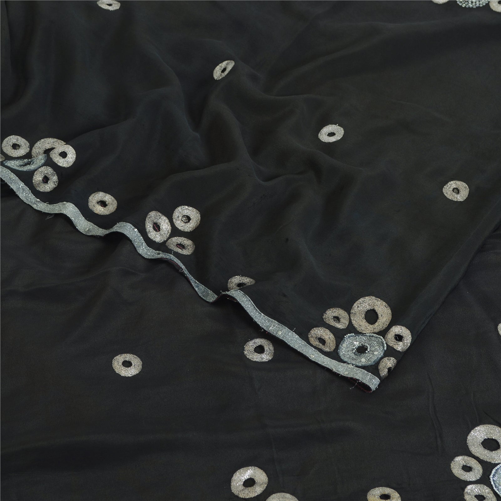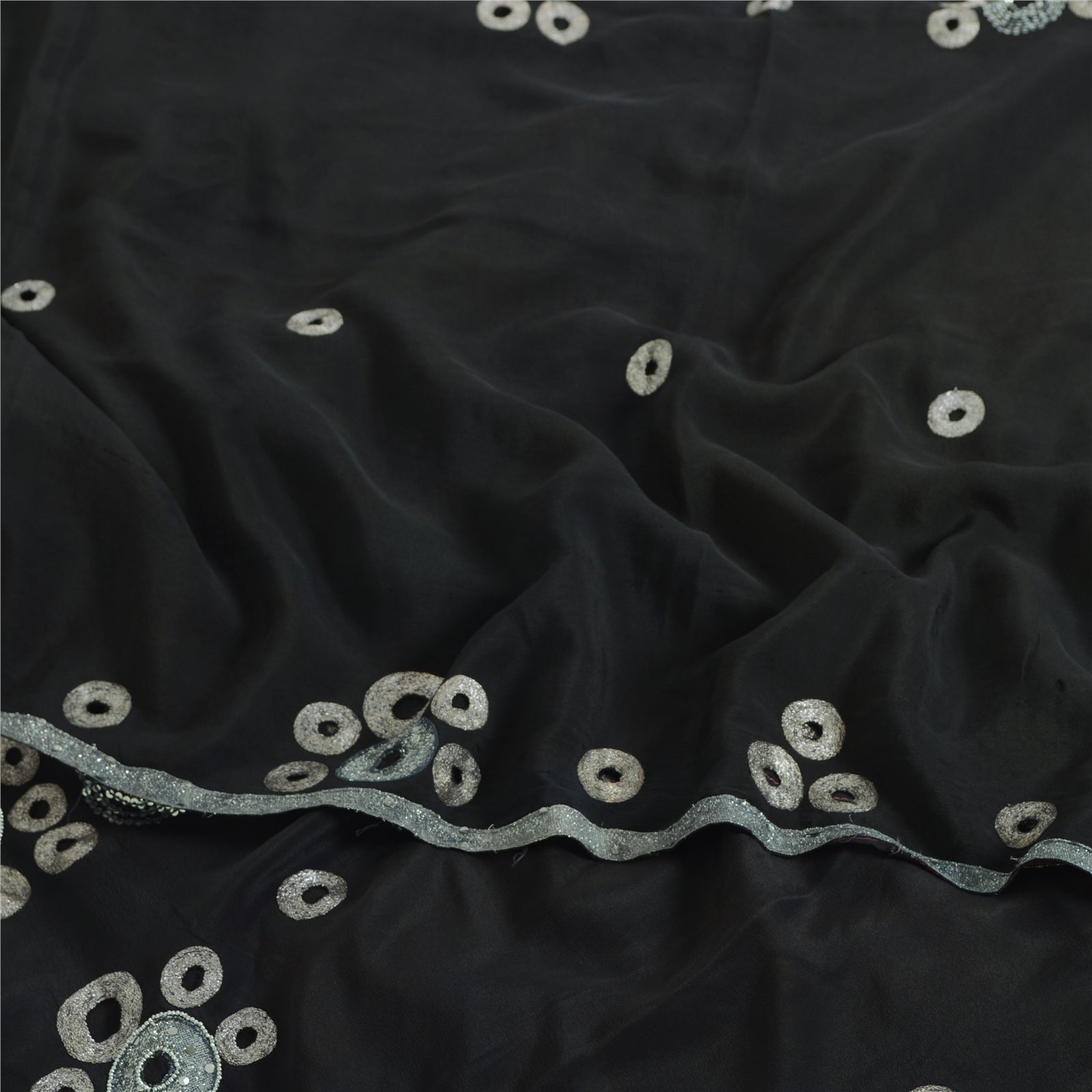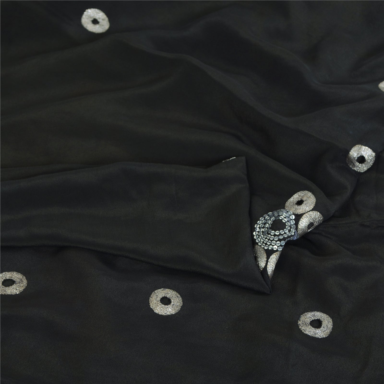 THE ITEM COLOR OR SHADE MAY BE DARKER OR LIGHTER THAN THE PICTURE.' • Beautiful black colored hand embroidered pure crepe silk saree . • Pallu & Border has circle design with silver thread, beads, sequins & cut work. • Similar work in center part of sari . This unique vintage saree can be used for various crafting ideas even if you don't want to use it as a sari. Design a dress, use it as a as window dressing, upholstery, sarongs, throw, dress making and table linen much more. Let your creative juices flow and use this decorated Sustainable Fabric in multiple fashion. International buyers please note: Import duties, taxes, and charges are not included in the item price or postage cost. These charges are the buyer's responsibility. Please check with your country's customs office to determine what these additional costs will be prior to bidding or buying.Buyer will pay custom duty/tax. It is calculated and charged differently by every country. As a seller I do not have any control over it. VAT or sales tax is calculated by the platform at the time of checkout. Customs charge is payable at the time of delivery.