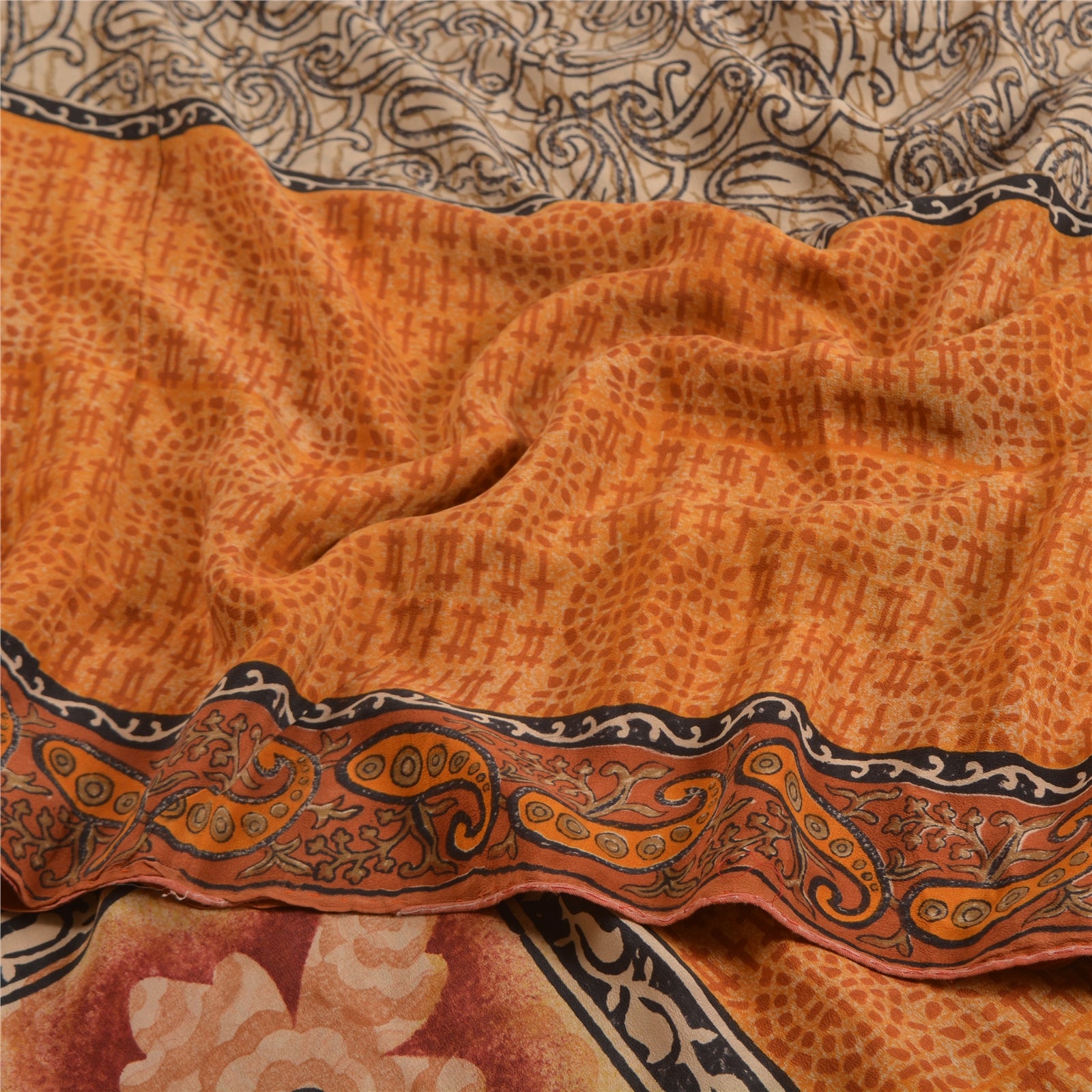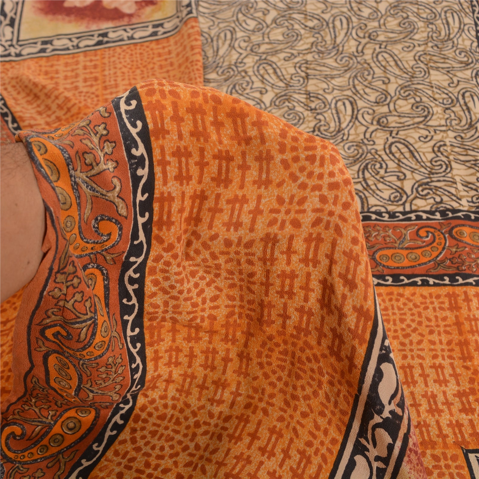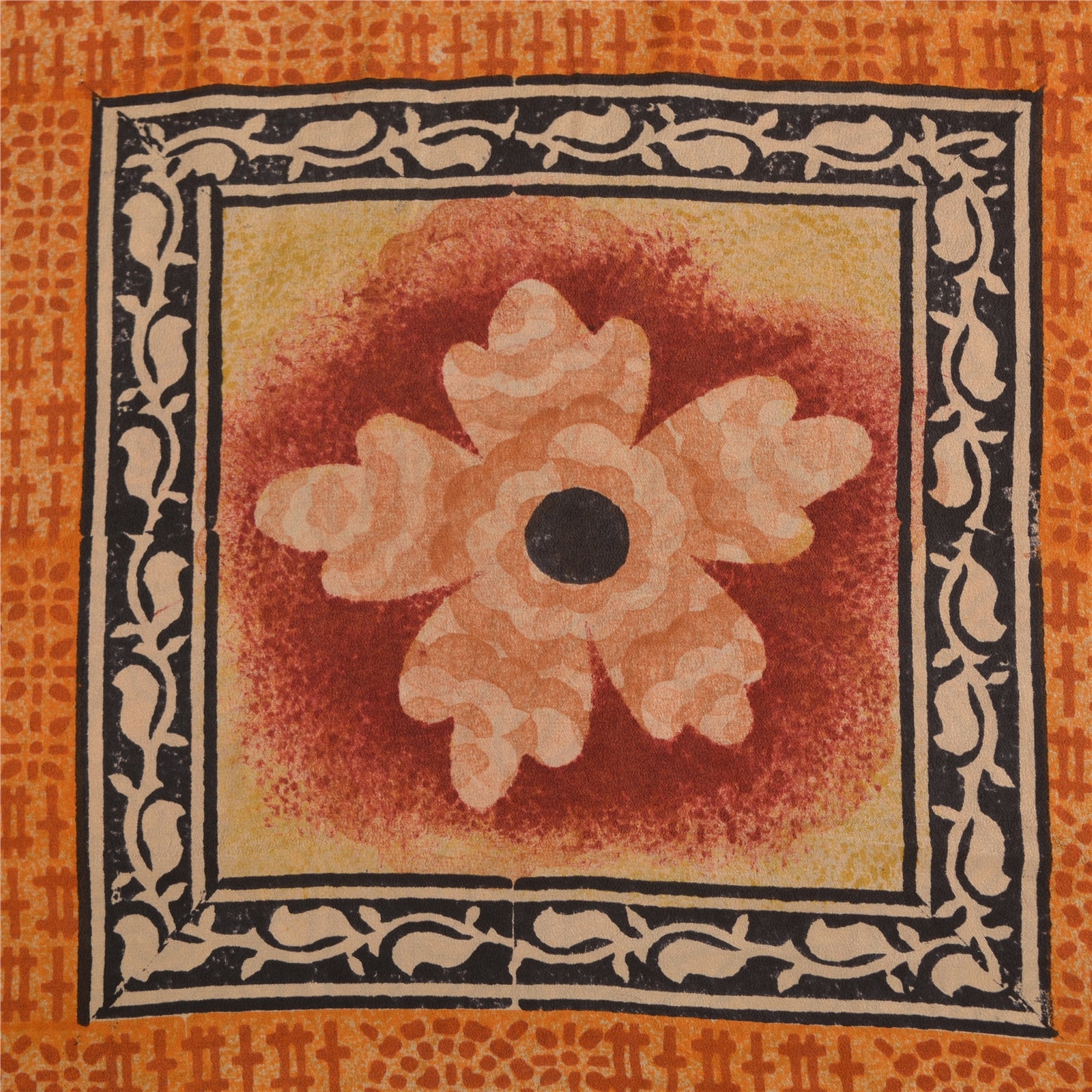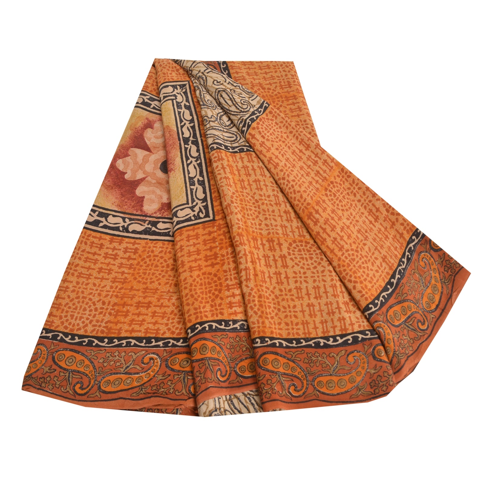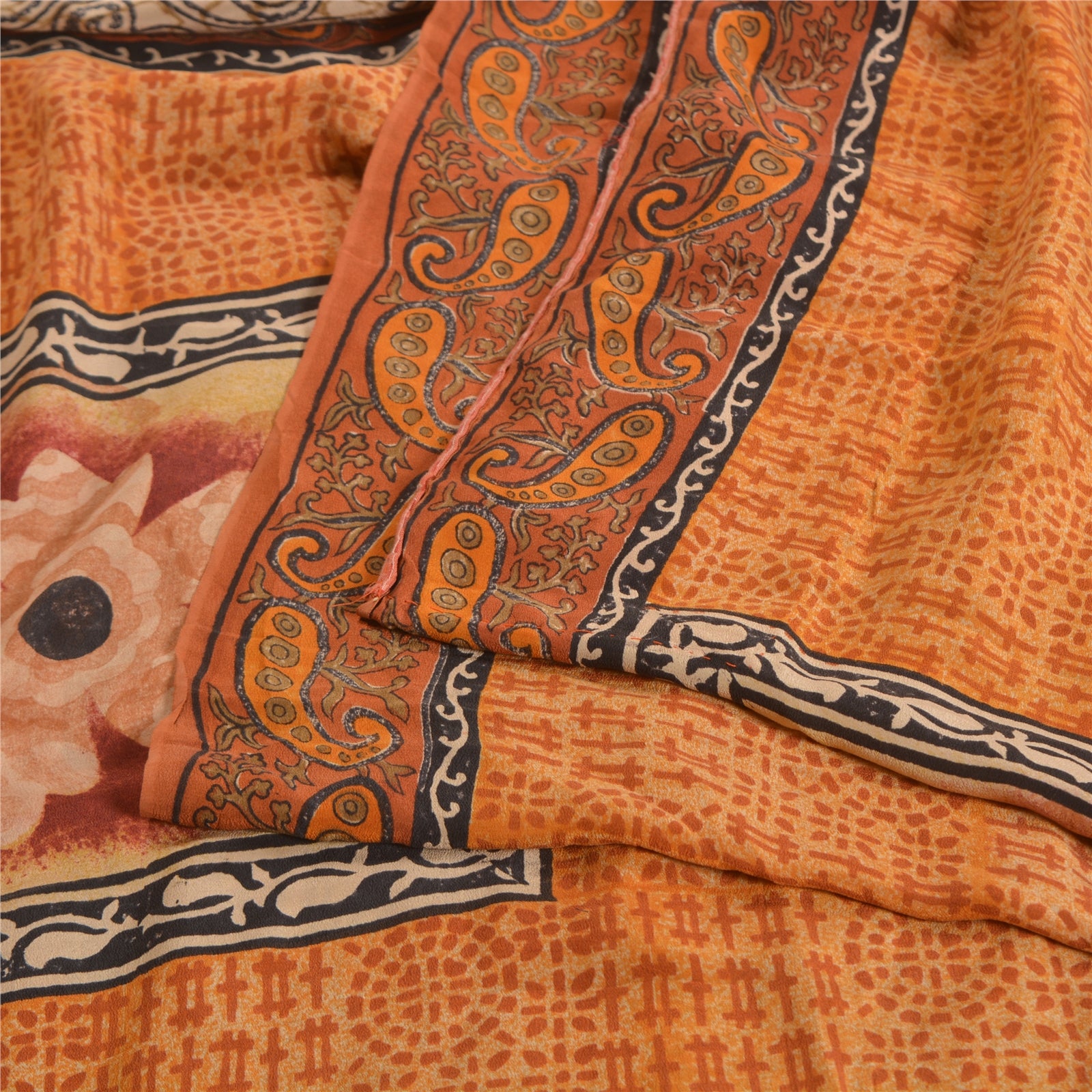 Sanskriti Vintage Sarees Black/Orange Pure Crepe Silk Printed Sari Craft Sustainable Fabric