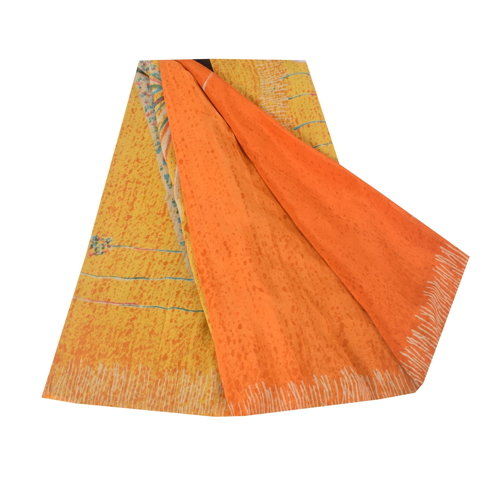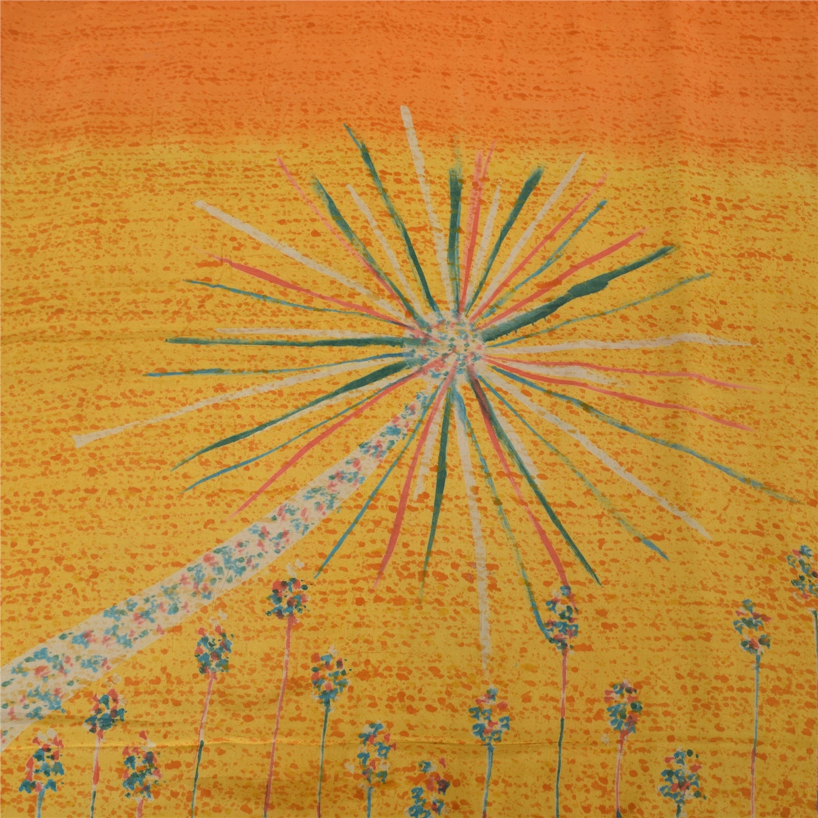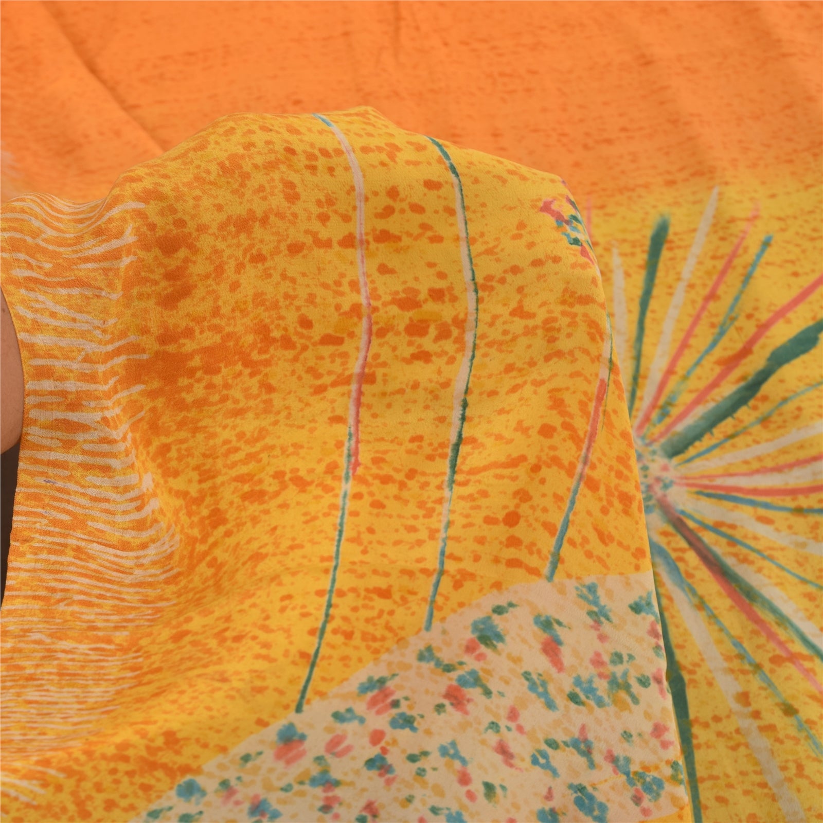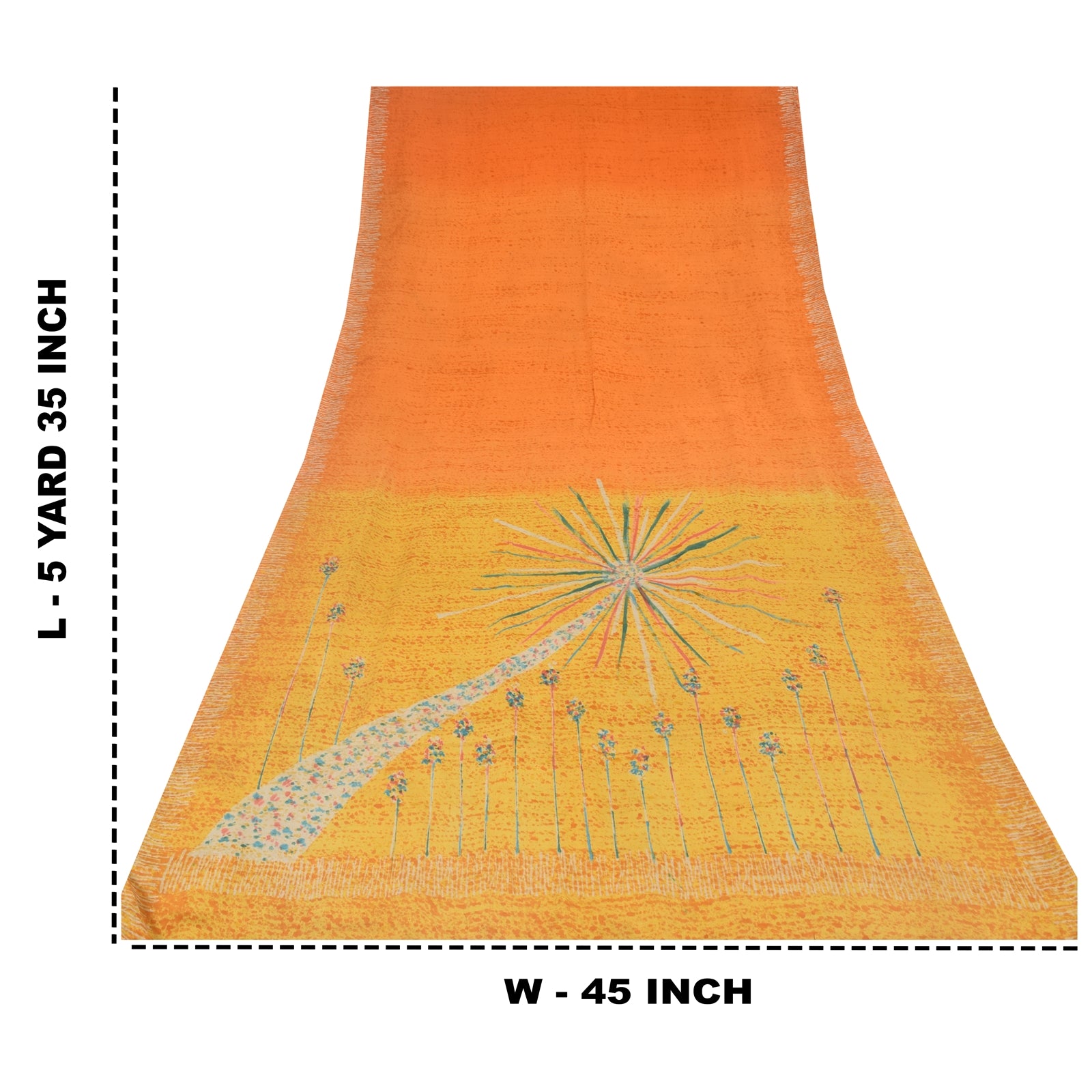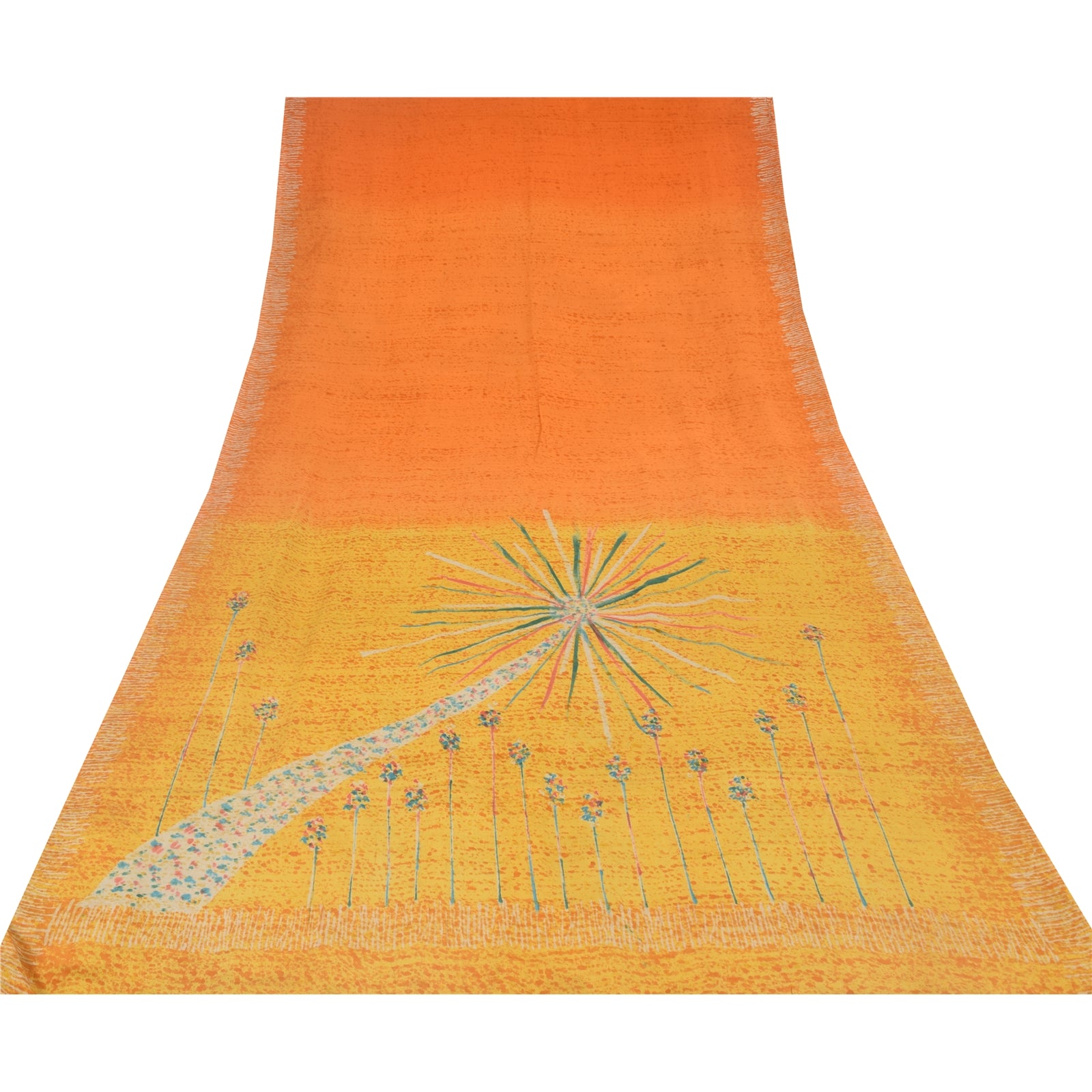 Sanskriti Vintage Sarees Black/Saffron Pure Crepe Printed Sari 5yd Craft Sustainable Fabric