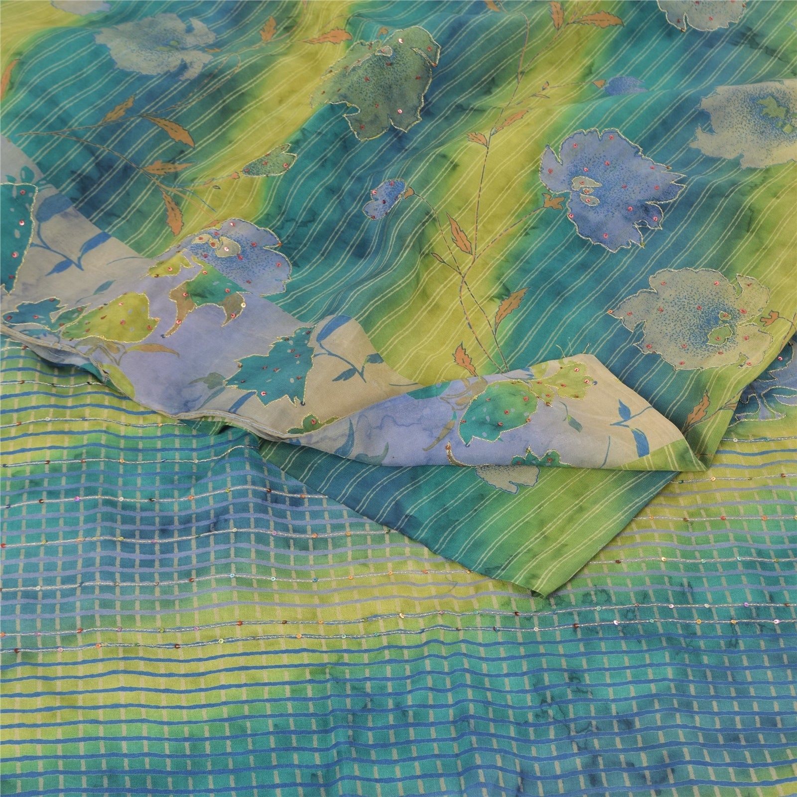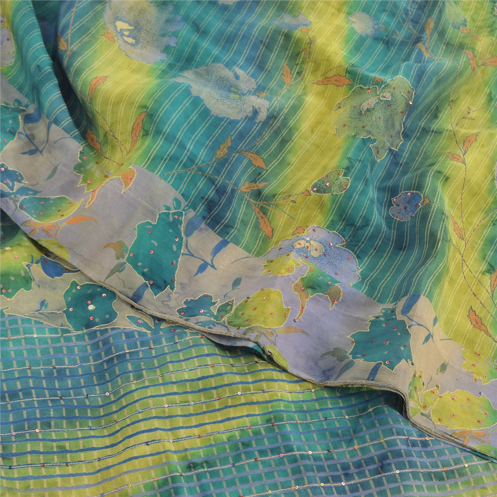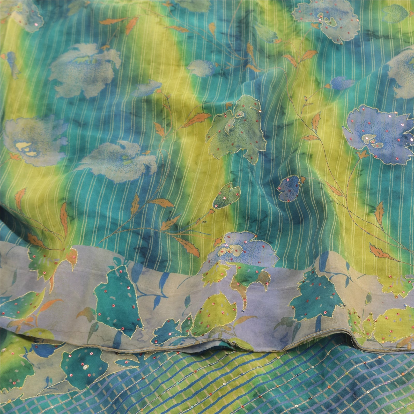 THE ITEM COLOR OR SHADE MAY BE DARKER OR LIGHTER THAN THE PICTURE.' • Beautiful multi colored printed & hand embroidered blend crepe saree . • Pallu & Border has printed floral design with zari & sequins work. • Similar work in center part of sari . This unique vintage saree can be used for various crafting ideas even if you don't want to use it as a sari. Design a dress, use it as a as window dressing, upholstery, sarongs, throw, dress making and table linen much more. Let your creative juices flow and use this decorated Sustainable Fabric in multiple fashion. International buyers please note: Import duties, taxes, and charges are not included in the item price or postage cost. These charges are the buyer's responsibility. Please check with your country's customs office to determine what these additional costs will be prior to bidding or buying.Buyer will pay custom duty/tax. It is calculated and charged differently by every country. As a seller I do not have any control over it. VAT or sales tax is calculated by the platform at the time of checkout. Customs charge is payable at the time of delivery.