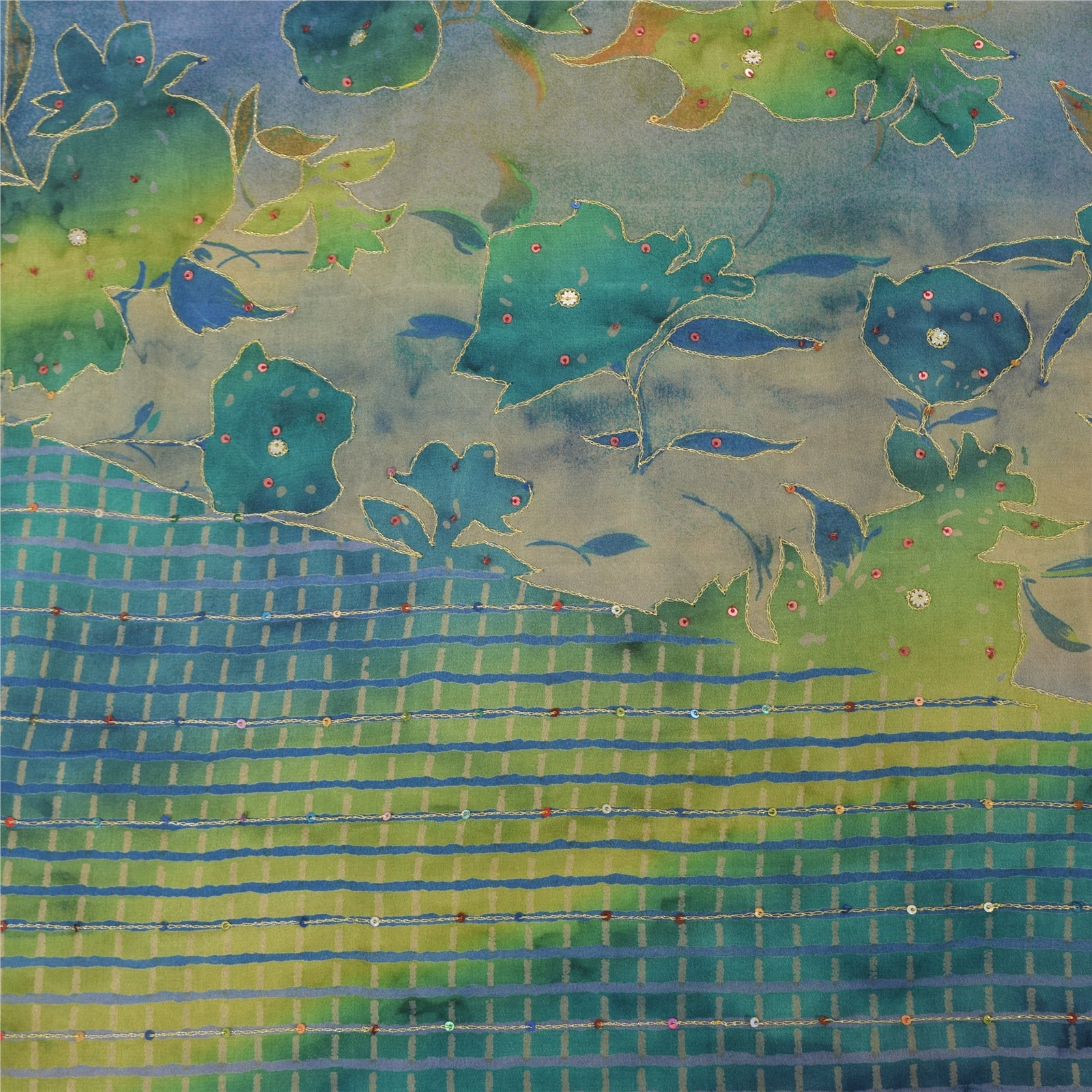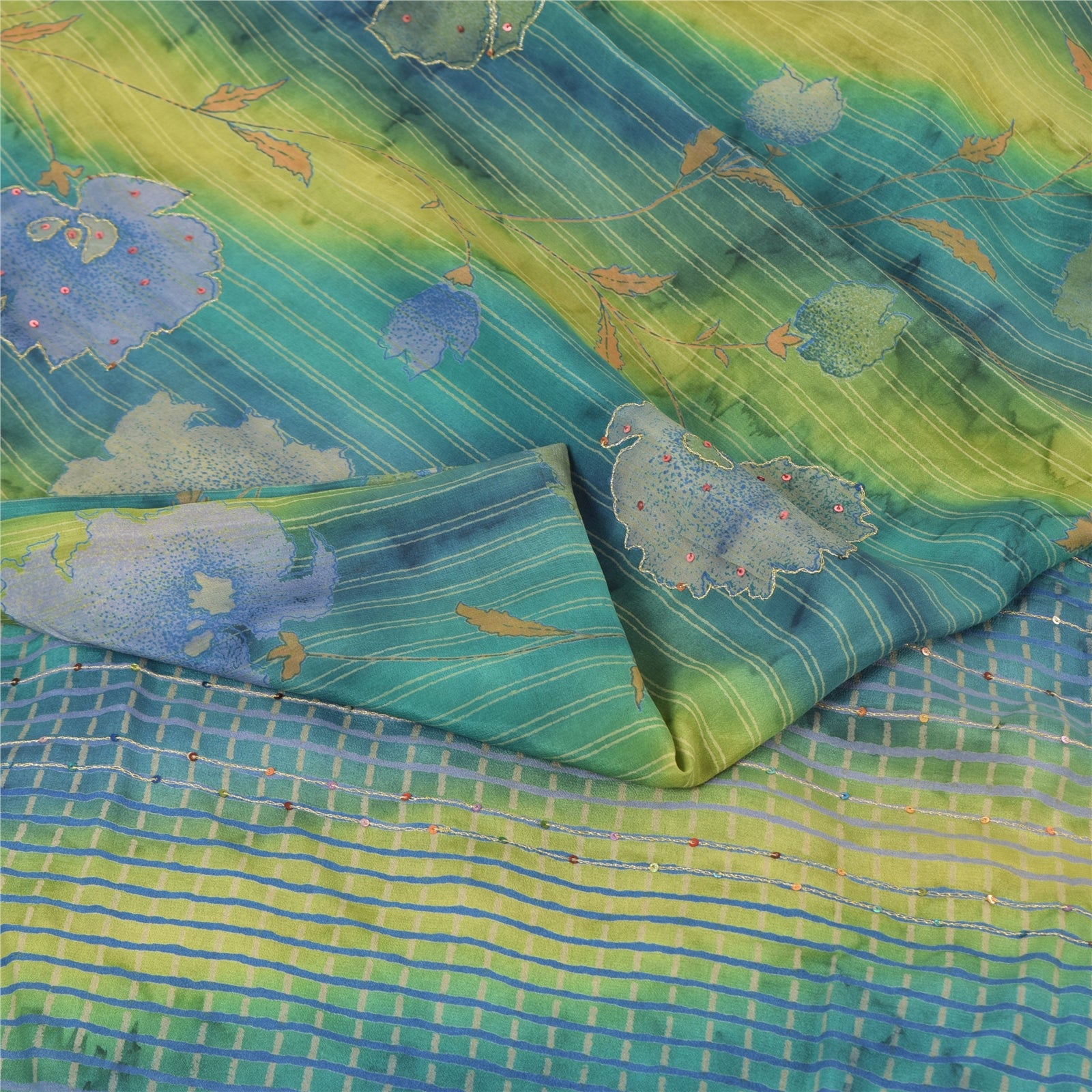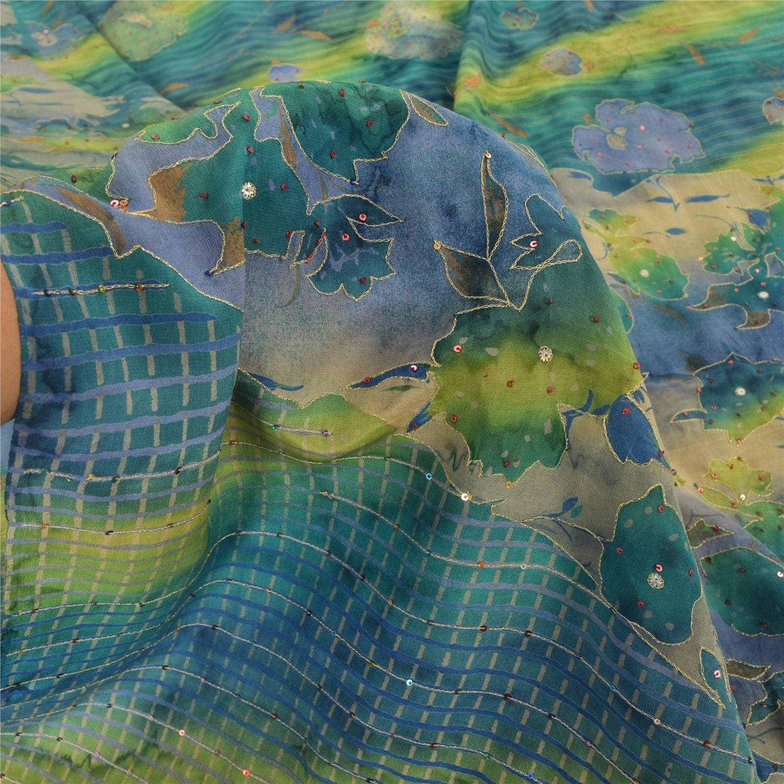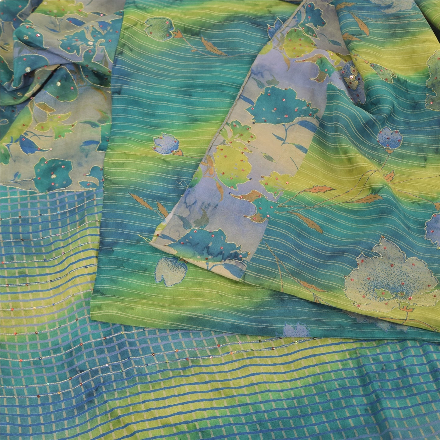 THE ITEM COLOR OR SHADE MAY BE DARKER OR LIGHTER THAN THE PICTURE.' • Beautiful multi colored printed & hand embroidered blend crepe saree . • Pallu & Border has printed floral design with zari & sequins work. • Similar work in center part of sari . This unique vintage saree can be used for various crafting ideas even if you don't want to use it as a sari. Design a dress, use it as a as window dressing, upholstery, sarongs, throw, dress making and table linen much more. Let your creative juices flow and use this decorated Sustainable Fabric in multiple fashion. International buyers please note: Import duties, taxes, and charges are not included in the item price or postage cost. These charges are the buyer's responsibility. Please check with your country's customs office to determine what these additional costs will be prior to bidding or buying.Buyer will pay custom duty/tax. It is calculated and charged differently by every country. As a seller I do not have any control over it. VAT or sales tax is calculated by the platform at the time of checkout. Customs charge is payable at the time of delivery.