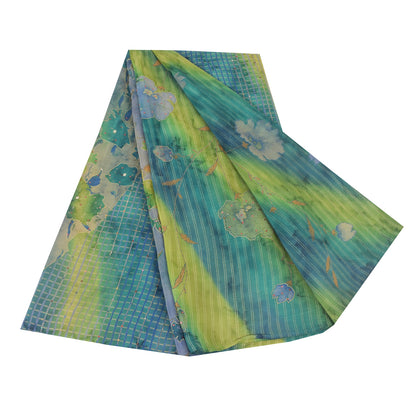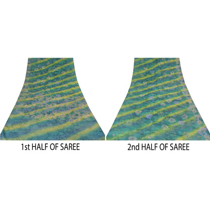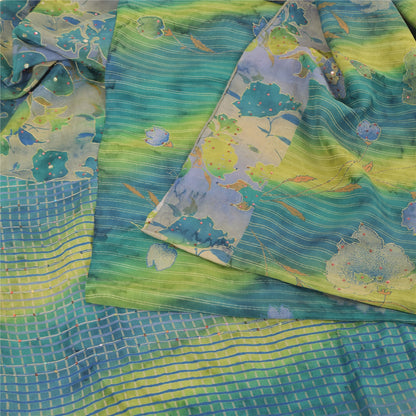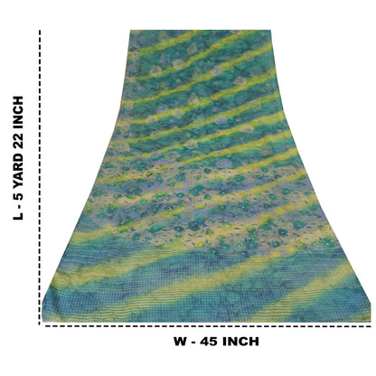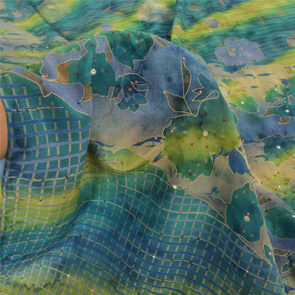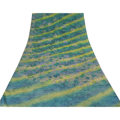 Sanskriti Vintage Sarees Blend Crepe Hand Beaded Printed Sari 5yd Craft Sustainable Fabric