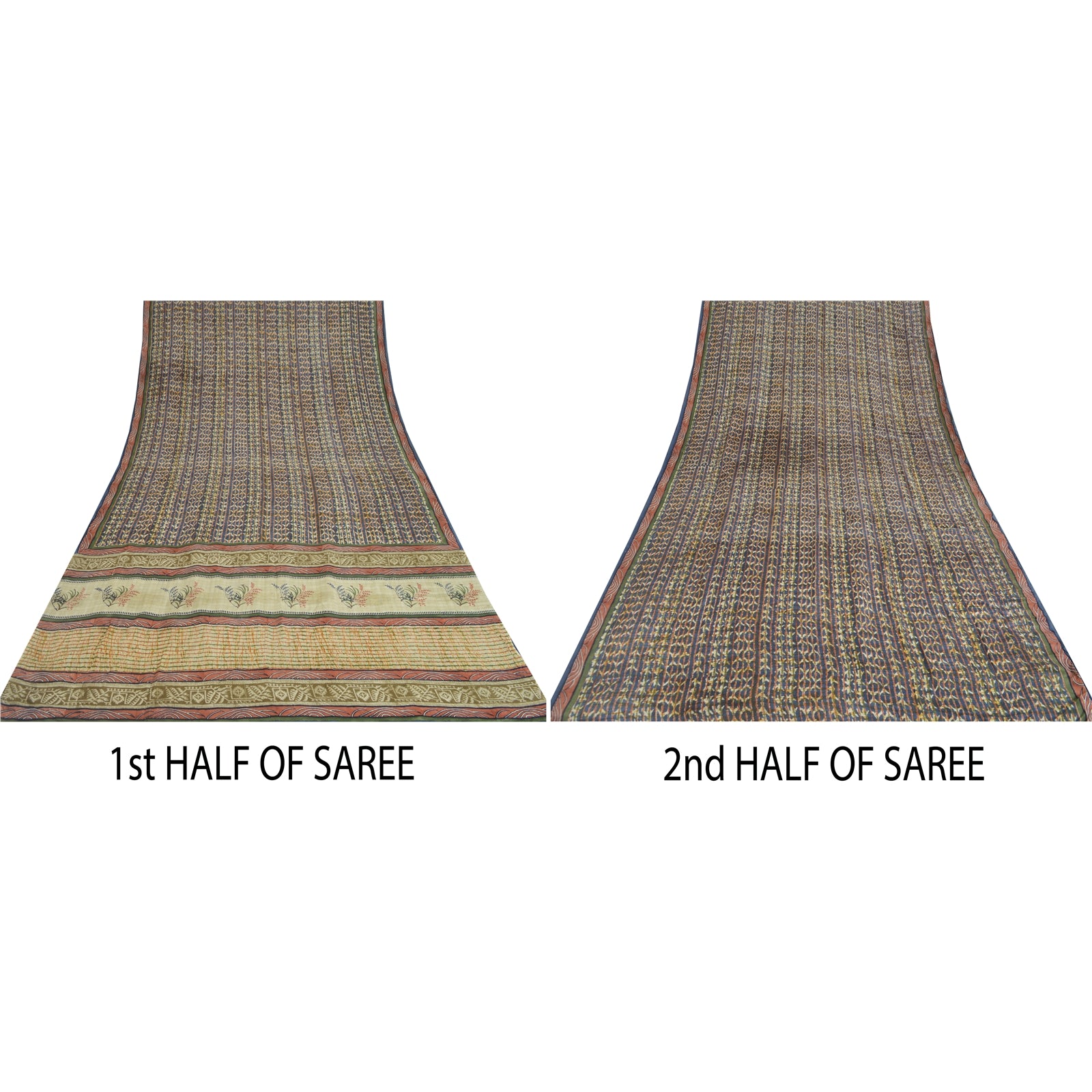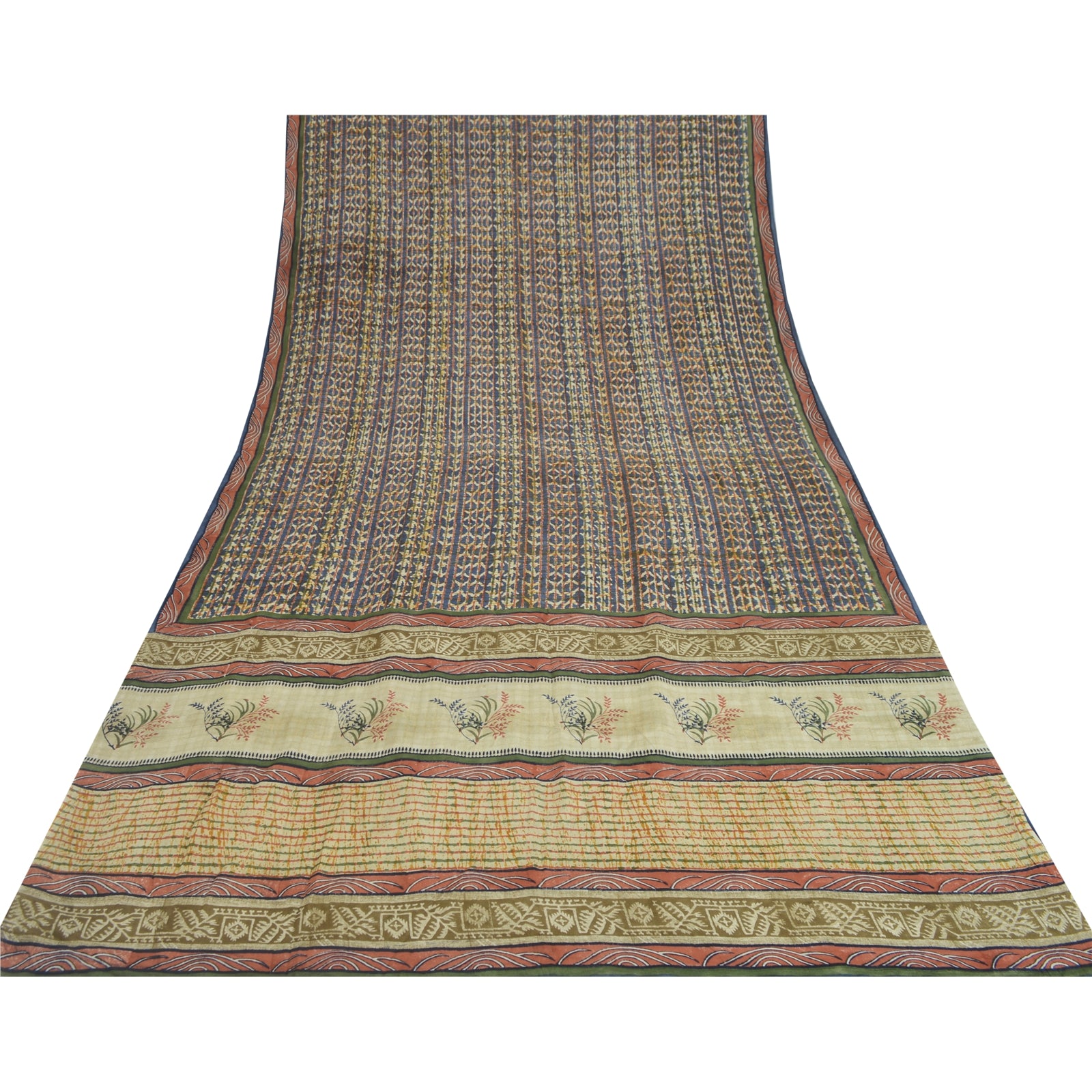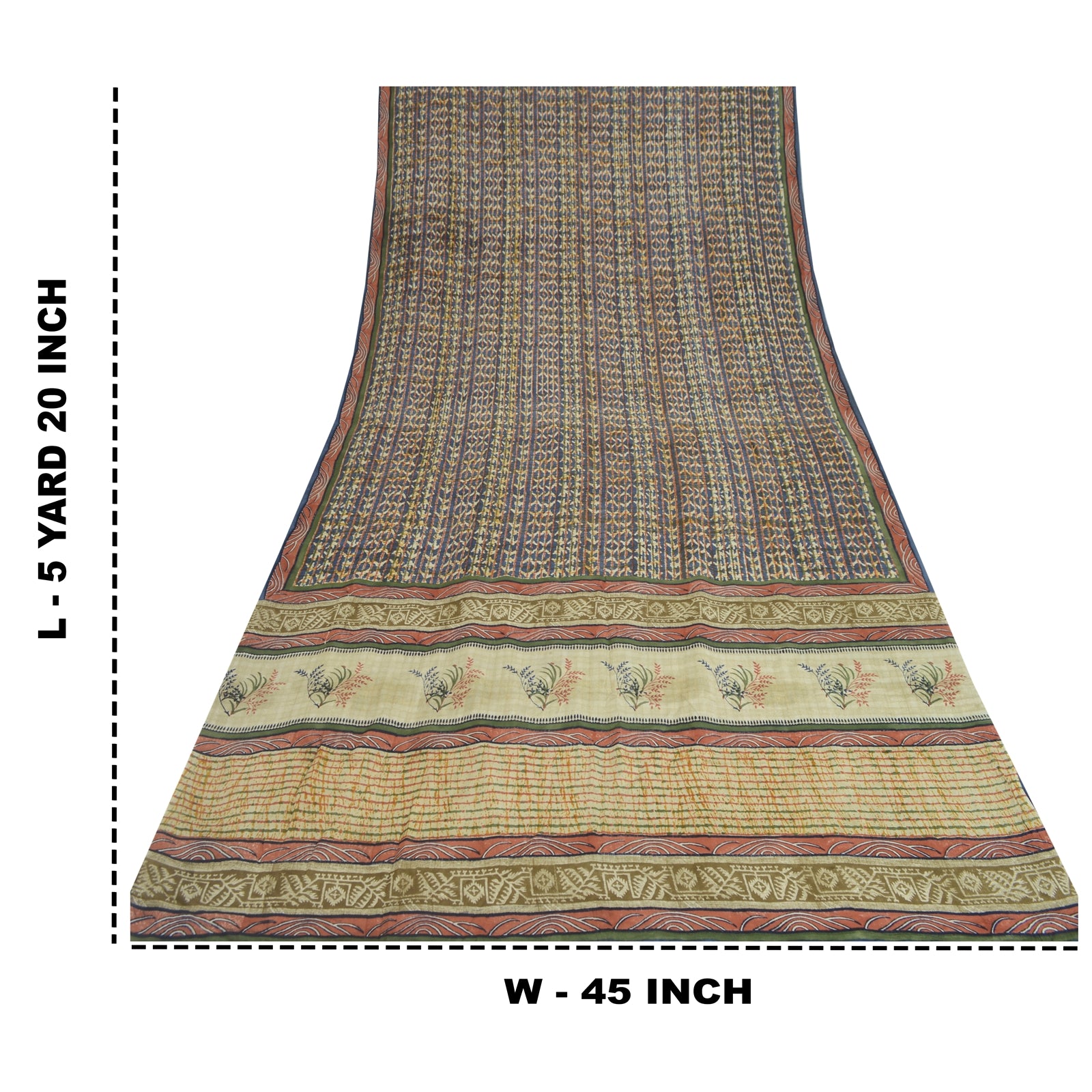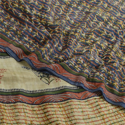 Sanskriti Vintage Sarees Blue 100% Pure Crepe Silk Printed Sari 5yd Craft Sustainable Fabric