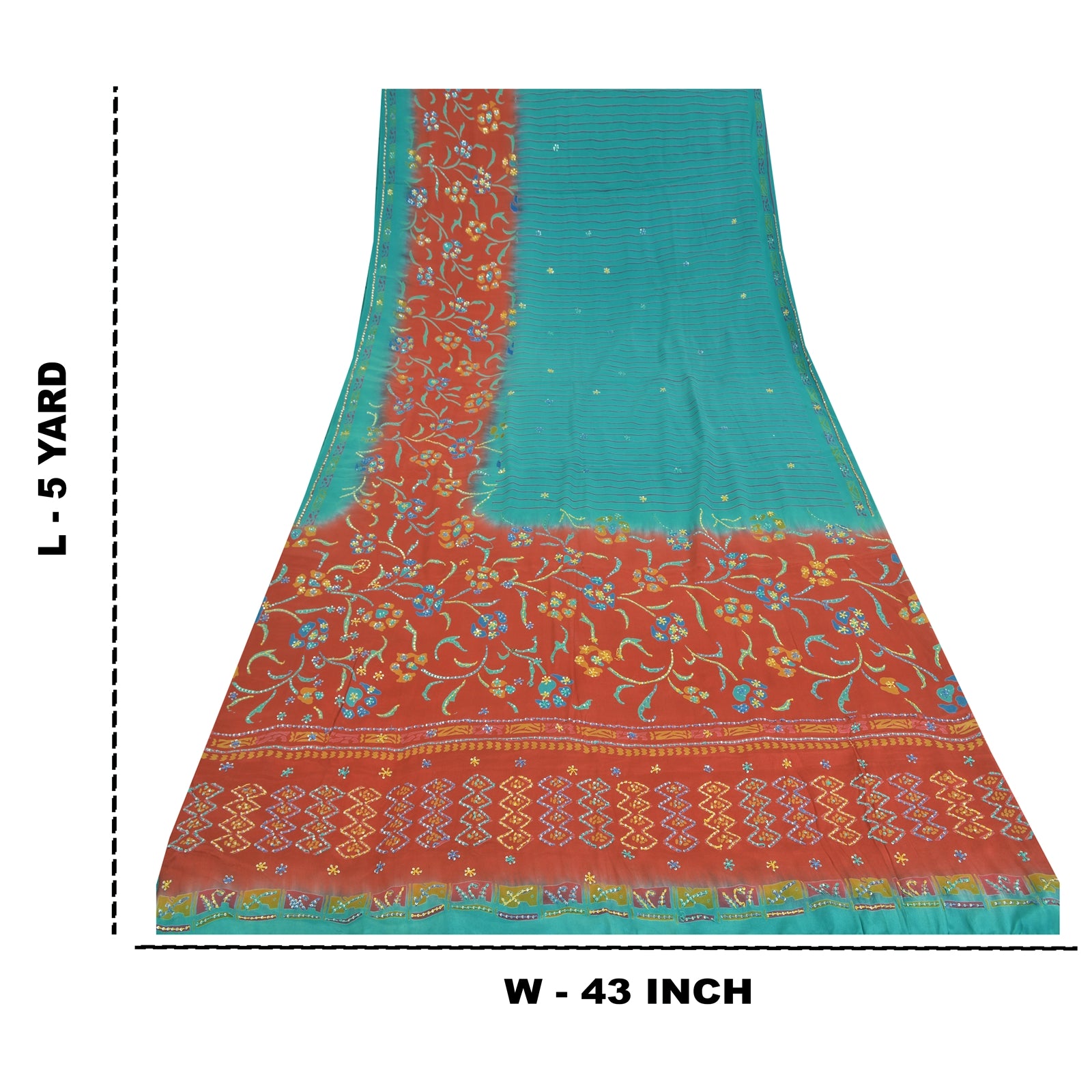 Sanskriti Vintage Sarees Blue Embordered Pure Crepe Print Sari 5yd Craft Sustainable Fabric