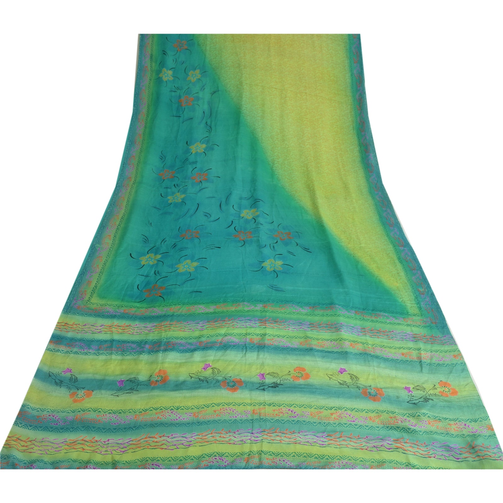 THE ITEM COLOR OR SHADE MAY BE DARKER OR LIGHTER THAN THE PICTURE.' Beautiful blue & green colored pure crepe silk printed saree. Pallu & border has printed floral design. Floral design in center part of saree. What is special about this saree? Fabulous design is really enhancing the beauty of the saree. This unique vintage saree can be used for various crafting ideas even if you don't want to use it as a sari. Design a dress, use it as window,dressing, upholstery, sarongs, throw, dress making and table linen much more. Let your creative juices flow and use this decorated Sustainable Fabric in multiple fashion. International buyers please note: Import duties, taxes, and charges are not included in the item price or postage cost. These charges are the buyer's responsibility. Please check with your country's customs office to determine what these additional costs will be prior to bidding or buying.Buyer will pay custom duty/tax. It is calculated and charged differently by every country. As a seller I do not have any control over it.VAT or sales tax is calculated by the platform at the time of checkout. Customs charge is payable at the time of delivery.